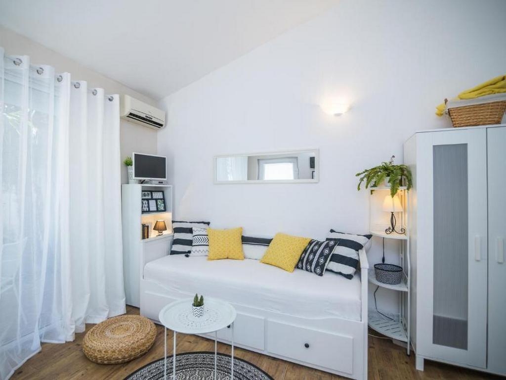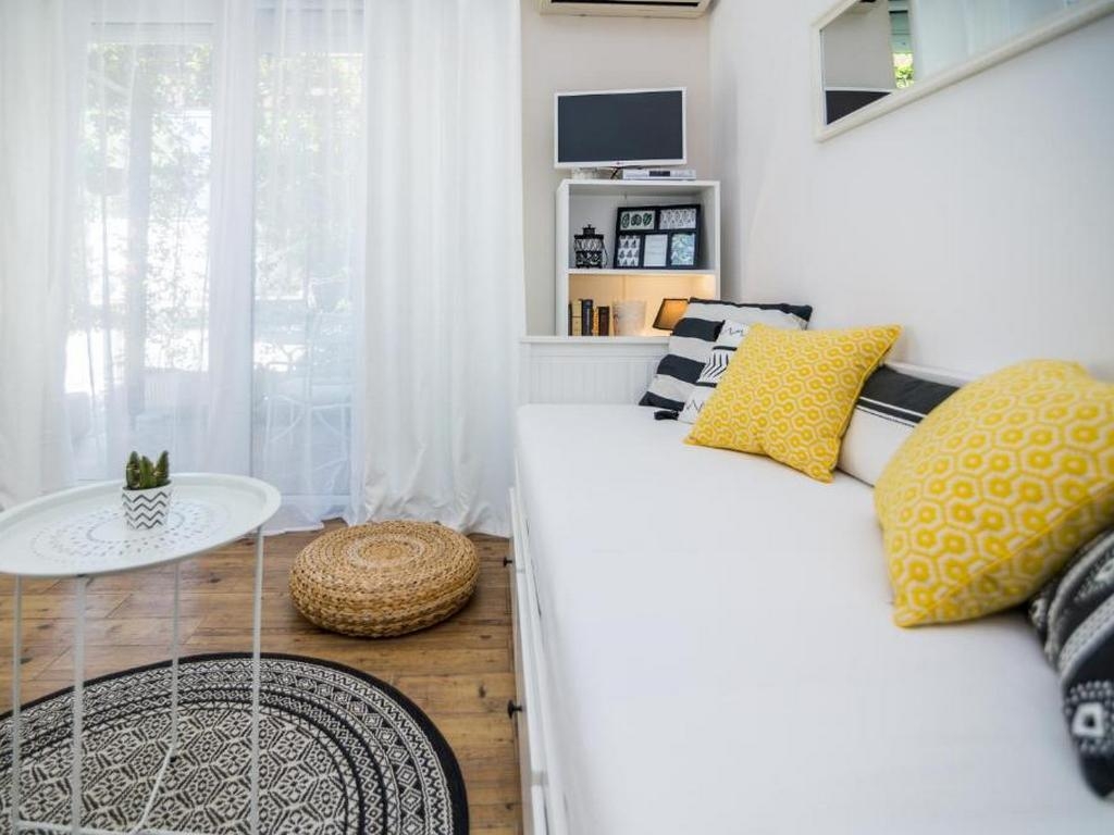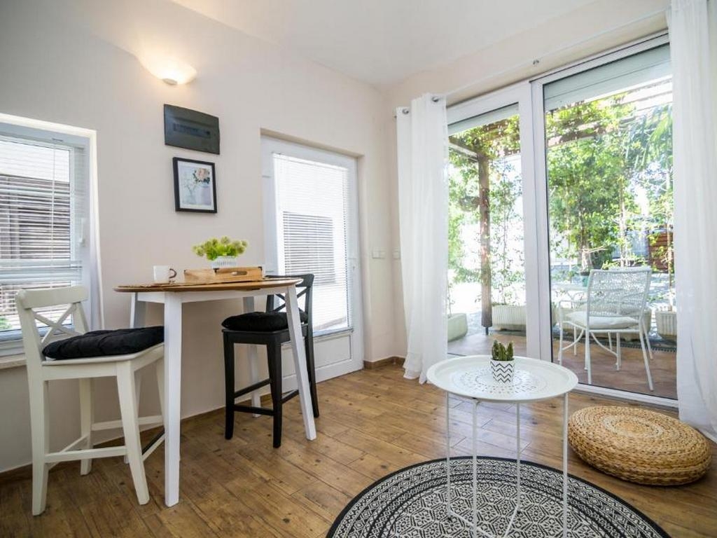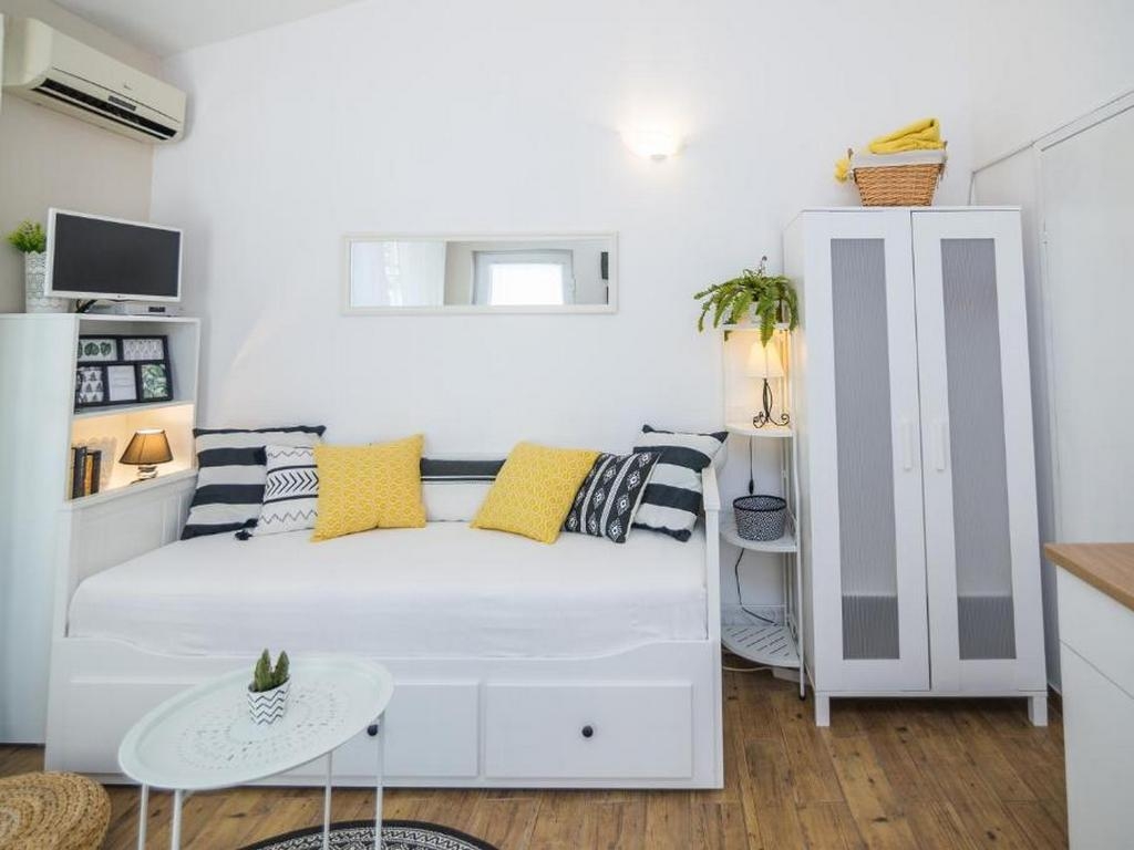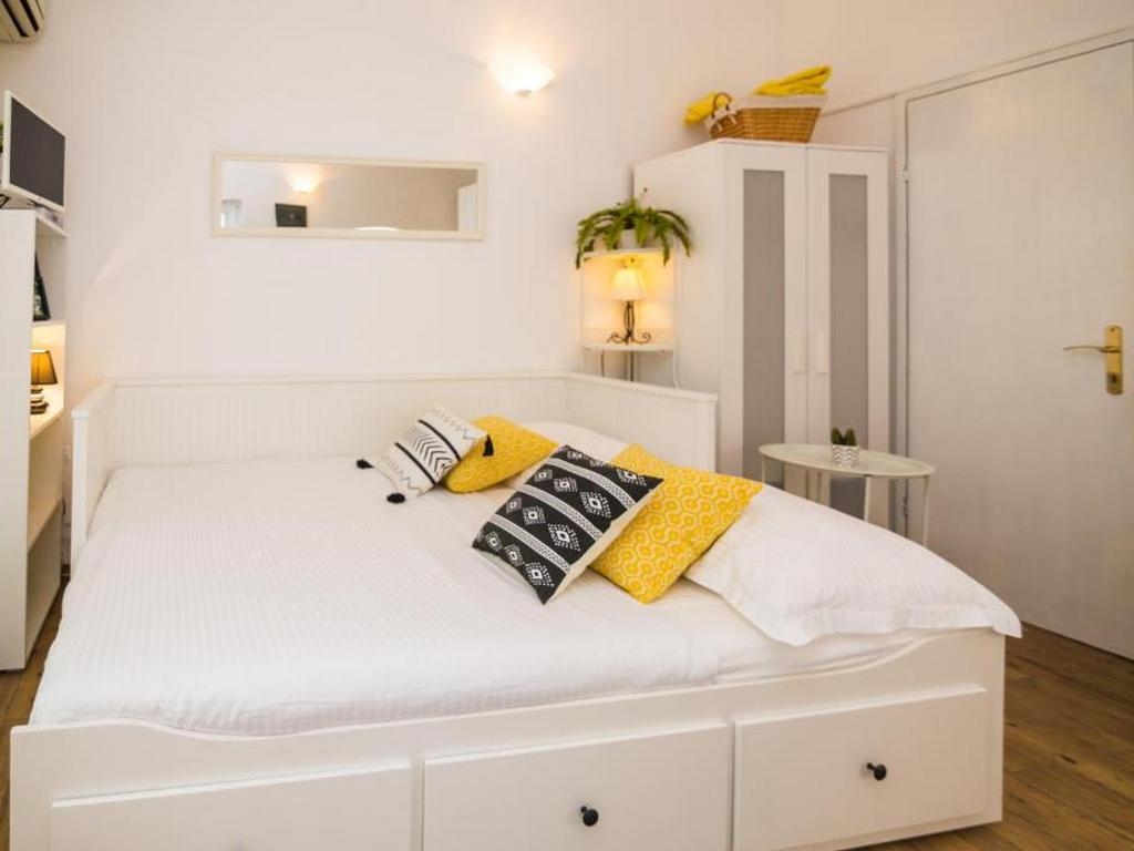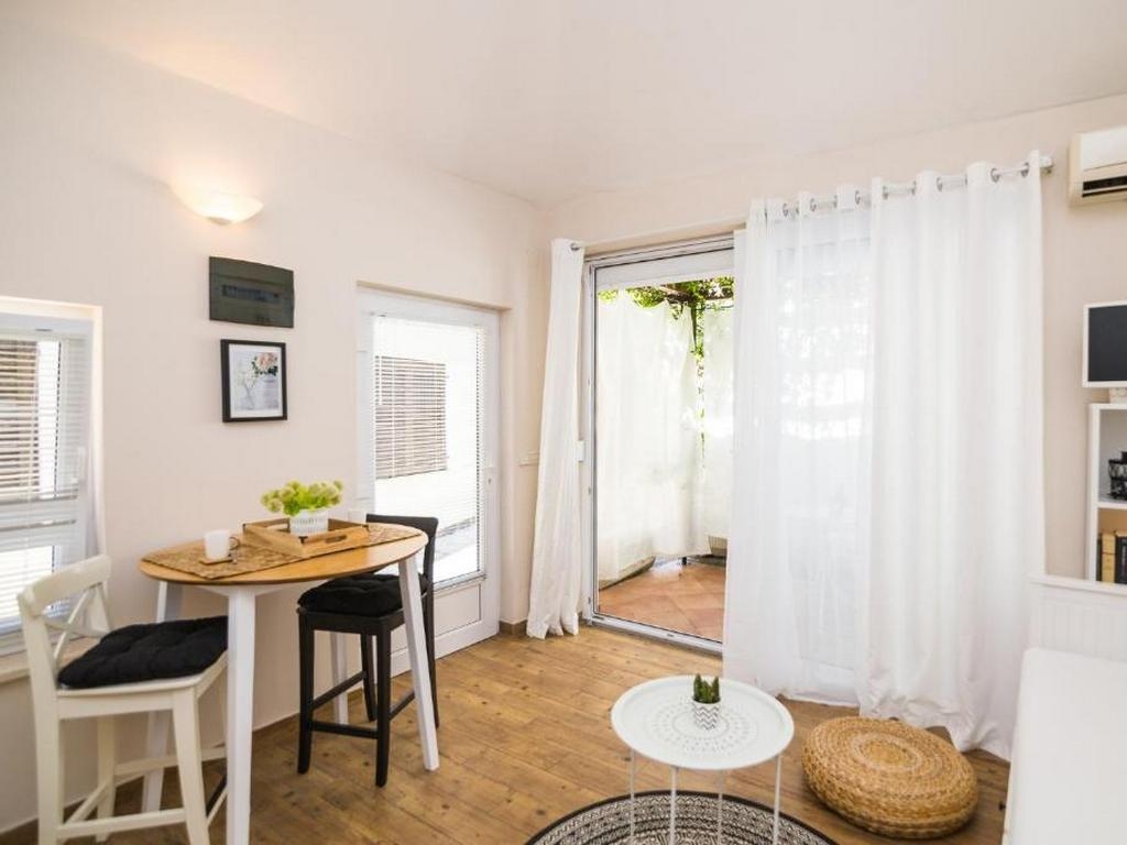 Studio flat can accommodate 2 guests. Beds are situated in living room, within 20m2. Guests can use a private terrace to enjoy the warm summer evenings. This accommodation unit welcomes pets at an additional charge. INCLUDED IN THE PRICE: tourist tax, final cleaning, air-conditioning, parking, internet, laundry, baby cot, iron, ironing board, hairdryer. OBLIGATORY ADDITIONAL COSTS: short stay fee (surcharge depending on a number of booked nights: 30% - 1, 20% - 2, 10% - 3). OPTIONAL ADDITIONAL COSTS: pets (€7.00 per night). The availability of additional services for your chosen dates of stay, as well as their prices (if none are listed) must be checked ahead of time. Any additional services not shown in the price calculation are payable directly to the property owner and only if used by the visitor.