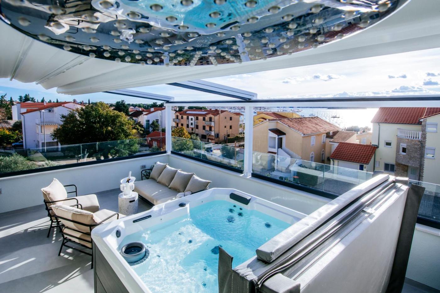 Located in Biograd na Moru, Villa FelicitĂ , Biograd na Moru, Zadar provides accommodation with a private pool and sea views. This beachfront property offers access to a terrace, free private parking and free WiFi. Guests have access to a sauna and hot tub.
