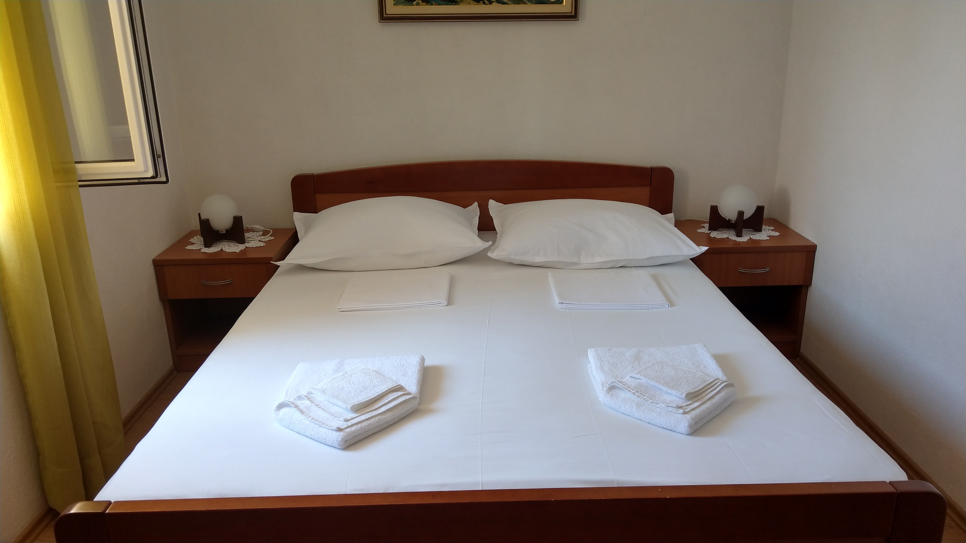 Apartment can accommodate 4 guests. Beds are situated in 2 sleeping rooms, within 43m2. Guests can use a private terrace to enjoy the warm summer evenings. INCLUDED IN THE PRICE: tourist tax, final cleaning, air-conditioning, parking, internet, baby cot, iron, ironing board, hairdryer. The availability of additional services for your chosen dates of stay, as well as their prices (if none are listed) must be checked ahead of time. Any additional services not shown in the price calculation are payable directly to the property owner and only if used by the visitor.