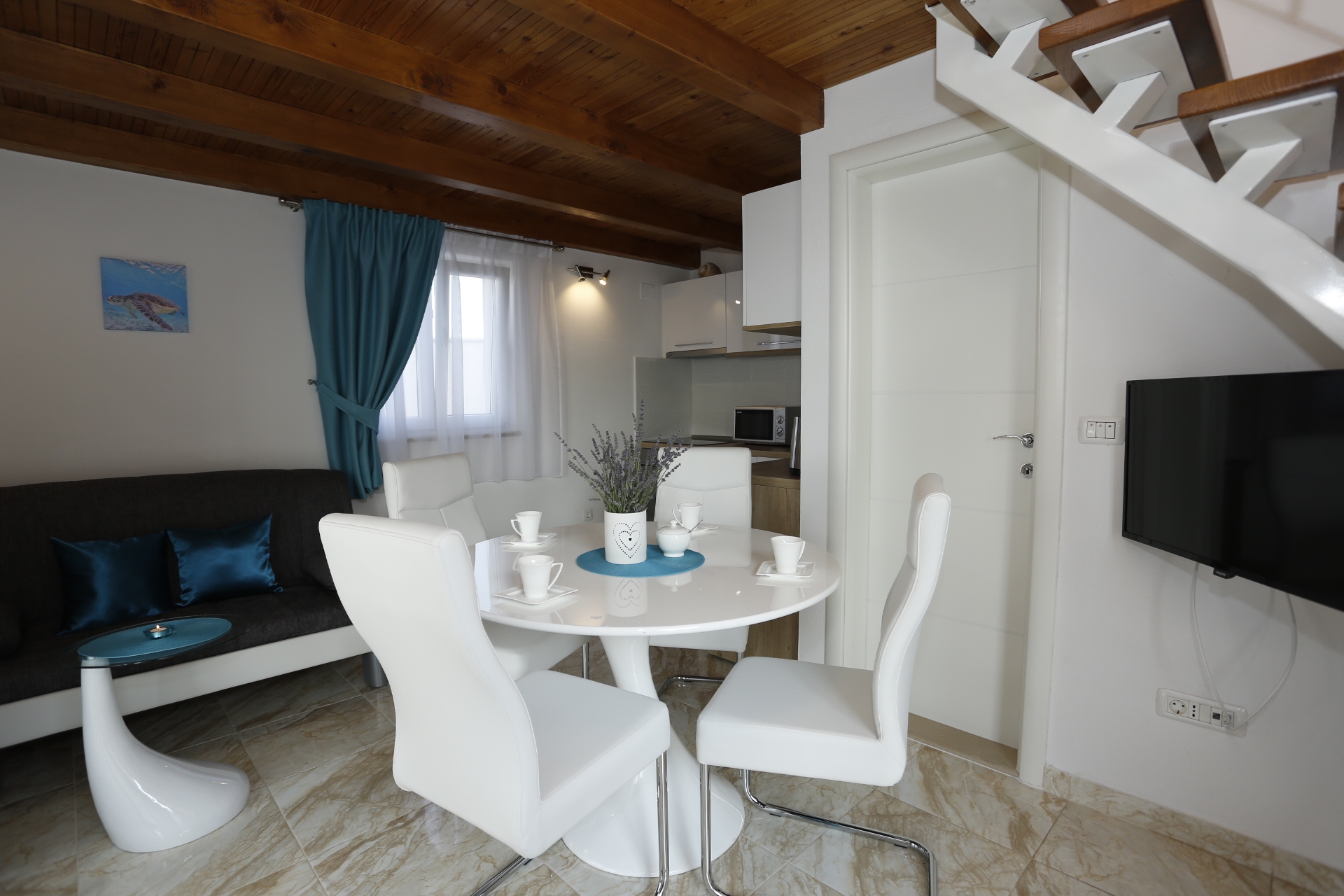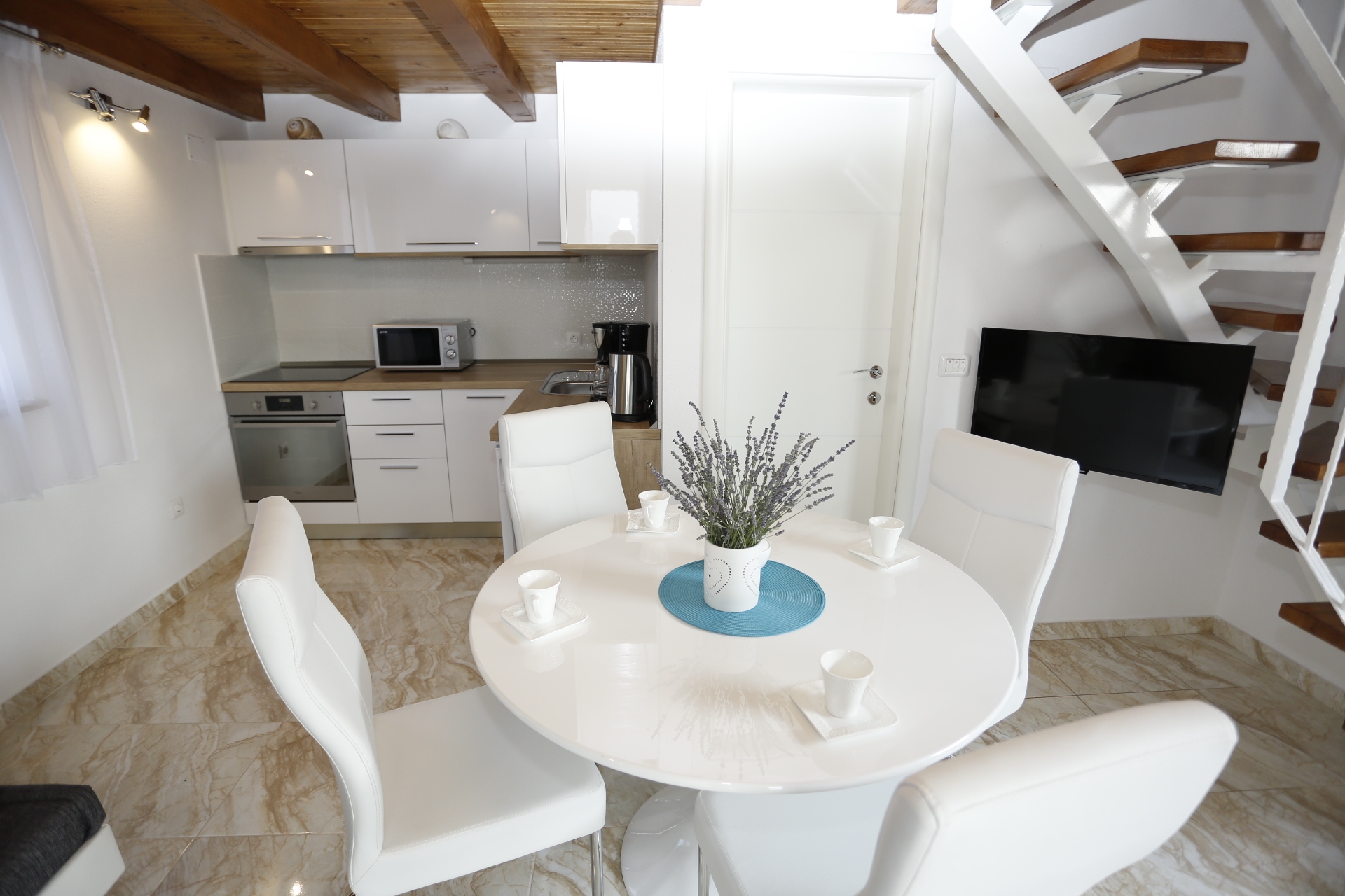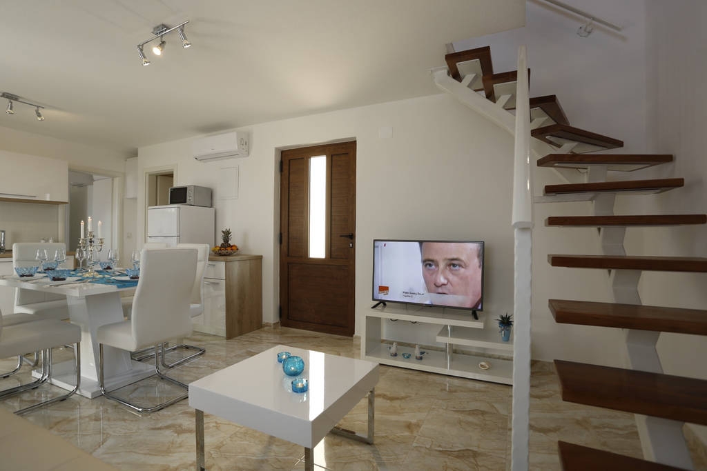 House can accommodate 10 guests. Beds are situated in 3 sleeping rooms, but also in the living room, within 102m2. Guests can use a private terrace to enjoy the warm summer evenings. The house offers the sea view. For full enjoyment and relaxation there is a private barbecue for this accommodation guests only. During stay, there is a private pool for relaxation and pleasure. This accommodation unit welcomes pets at an additional charge. Notthe rooms of the booked accommodation unit are connectedone whole. Some of the rooms of the accommodation unit are not connected with the rest of the unit. For the booked accommodation unit the deposit is paid directly to the owner upon check-in (deposit amount is displayed on the website) INCLUDED IN THE PRICE: tourist tax, final cleaning, air-conditioning, pool, parking, internet, bicycle, baby cot, iron, ironing board, hairdryer. OBLIGATORY ADDITIONAL COSTS: deposit (€500.00 one-time payment). OPTIONAL ADDITIONAL COSTS: pets (€20.00 per night). The availability of additional services for your chosen dates of stay, as well as their prices (if none are listed) must be checked ahead of time. Any additional services not shown in the price calculation are payable directly to the property owner and only if used by the visitor.