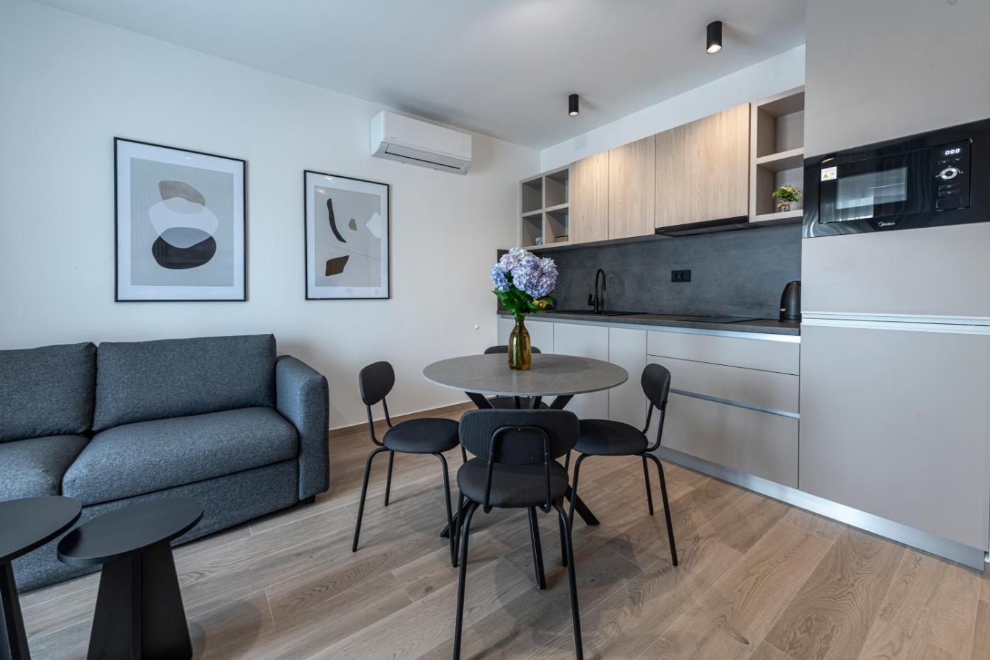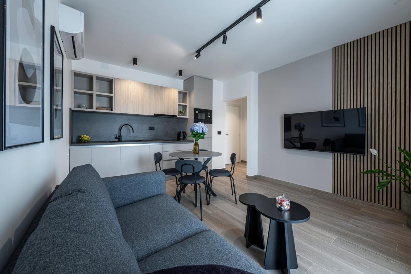 One-Bedroom Apartment. This air-conditioned apartment features 1 living room, 1 separate bedroom and 1 bathroom with a shower. Guests can make meals in the kitchen that has a stovetop, a refrigerator, a dishwasher and kitchenware. This apartment has soundproof walls, a tea and coffee maker, a flat-screen TV with cable channels and a terrace. The unit has 1 bed. ;