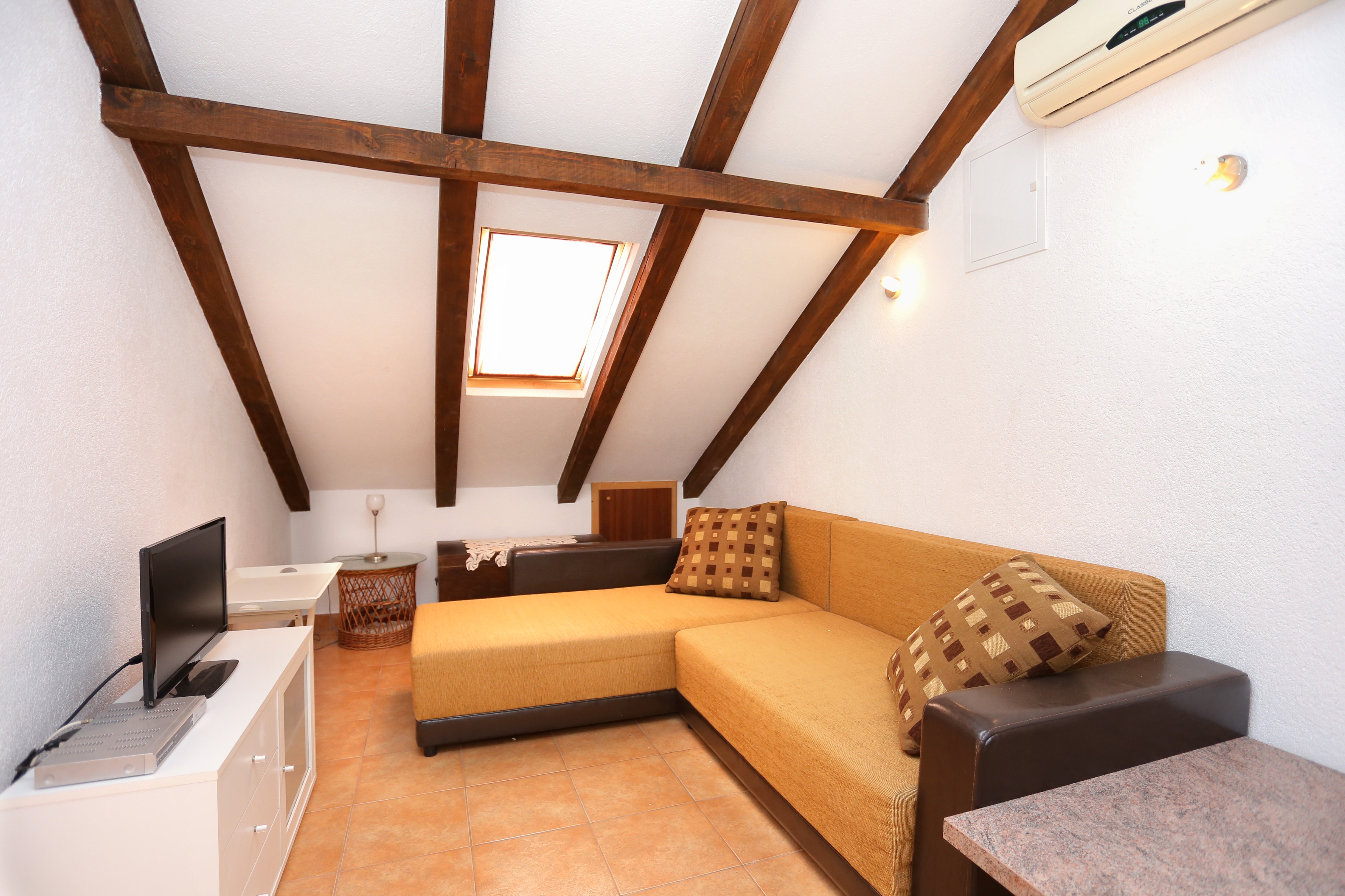Apartment can accommodate 3 guests. Beds are situated in 1 sleeping rooms, within 44m2. Guests can use a private terrace to enjoy the warm summer evenings. The apartment offers the sea view. INCLUDED IN THE PRICE: tourist tax, final cleaning, air-conditioning, internet, laundry, baby cot, iron, ironing board, hairdryer, sunchairs. OBLIGATORY ADDITIONAL COSTS: short stay fee (surcharge depending on a number of booked nights: 30% - 1, 20% - 2, 10% - 3). The availability of additional services for your chosen dates of stay, as well as their prices (if none are listed) must be checked ahead of time. Any additional services not shown in the price calculation are payable directly to the property owner and only if used by the visitor.