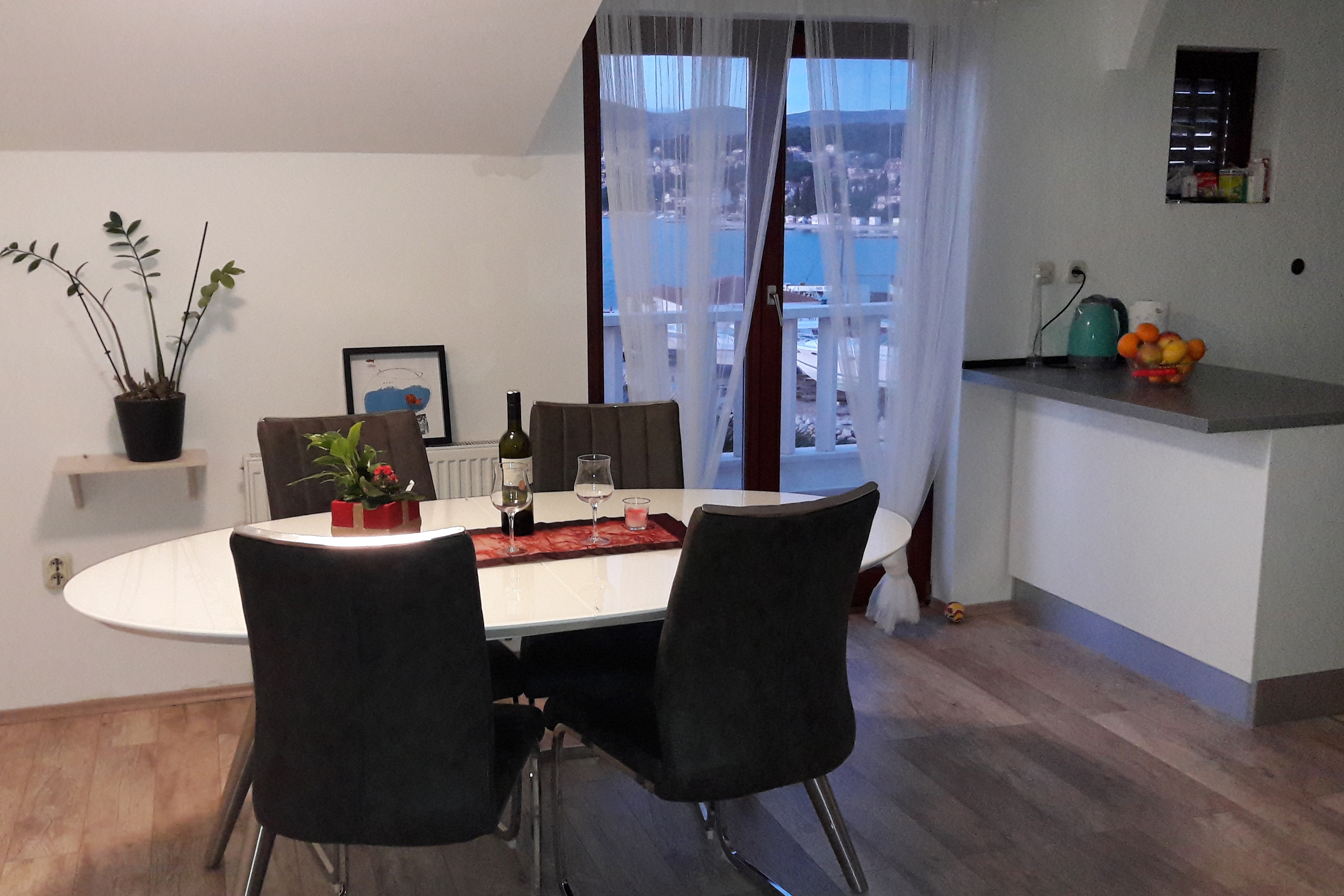Apartment can accommodate 4 guests. Beds are situated in 1 sleeping rooms, but also in the living room, within 41m2. Guests can use a private terrace to enjoy the warm summer evenings. The apartment offers the sea view. Food can be prepared using barbecue which is shared with other guests too. This accommodation unit welcomes pets at an additional charge. INCLUDED IN THE PRICE: tourist tax, final cleaning, air-conditioning, parking, internet, baby cot, hairdryer, sunchairs. OBLIGATORY ADDITIONAL COSTS: short stay fee (surcharge depending on a number of booked nights: 30% - 1, 20% - 2, 10% - 3). OPTIONAL ADDITIONAL COSTS: pets (€10.00 per night). The availability of additional services for your chosen dates of stay, as well as their prices (if none are listed) must be checked ahead of time. Any additional services not shown in the price calculation are payable directly to the property owner and only if used by the visitor. Discounts to the base price: free day 21=19 (for reservations of 21 or more days you get 2 free days for the stay until 31122026).