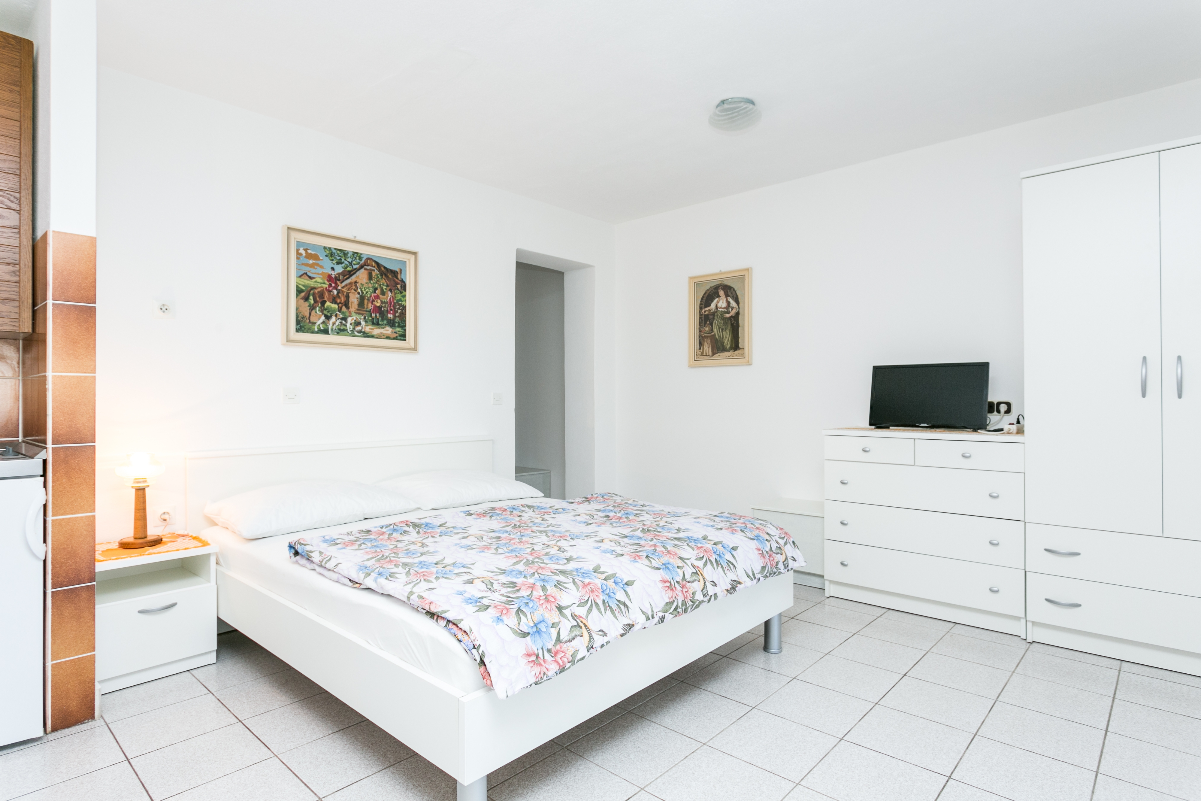 Studio flat can accommodate 3 guests. Beds are situated in 1 sleeping rooms, but also in the dining room, within 26m2. Guests can use a private terrace to enjoy the warm summer evenings. Food can be prepared using barbecue which is shared with other guests too. Shared pool is on disposal during stay. INCLUDED IN THE PRICE: tourist tax, final cleaning, air-conditioning, pool, parking, internet, iron, ironing board, hairdryer. OBLIGATORY ADDITIONAL COSTS: short stay fee (surcharge depending on a number of booked nights: 30% - 1, 20% - 2, 10% - 3). OPTIONAL ADDITIONAL COSTS: laundry (€3.00 washing). The availability of additional services for your chosen dates of stay, as well as their prices (if none are listed) must be checked ahead of time. Any additional services not shown in the price calculation are payable directly to the property owner and only if used by the visitor.