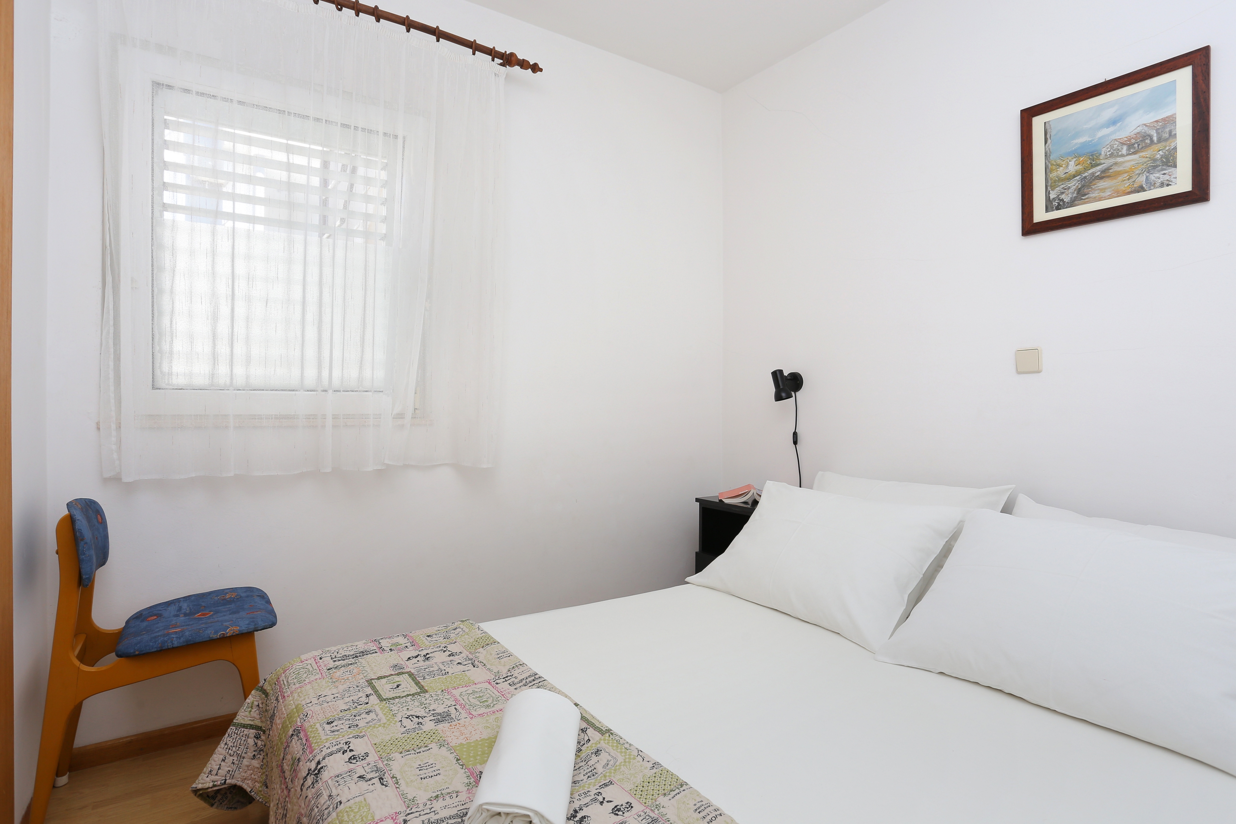 House 11723 in the town of Rastići, Čiovo - Central Dalmatia has accommodation units of type Apartment (4) and is 110 m away from the sea. The nearest beach to this accommodation is a concrete slabs beach. Other guests may be found in this houses other apartments during your stay. The owners will be in residence during your stay. The house owner is under no obligation to accept additional persons and pets that were not stated in the reservation request and it is necessary to report them in advance.AMENITIES Infield (Well-kept), Courtyard (20m2, Sitting area), Parking lot (Number of parking spaces: 4, Distance from the house: 10 m), Barbecue: shared, WiFi Internet, Sunshade LOCATION AND ACCESS Facility is situated near a local road Local road between the property and the beach Number of stairs from the property to the beach: 80 Car access possible: No, Distance to which you can approach with a vehicle: 10 m The facility is situated in relatively quiet surroundings The facility is partly surrounded by vegetation DISTANCES Sea: 110 m Beach: 110 m Center: 6 km Shop: 500 m Urgent medical care: 7.5 km Pharmacy: 1.5 km Exchange office: 1.5 km ATMBank machine: 1.5 km Tourist info: 1.2 km Airport: 10 km Bus station: 7 km Gas station: 4.5 km Farmers market: 1.3 km