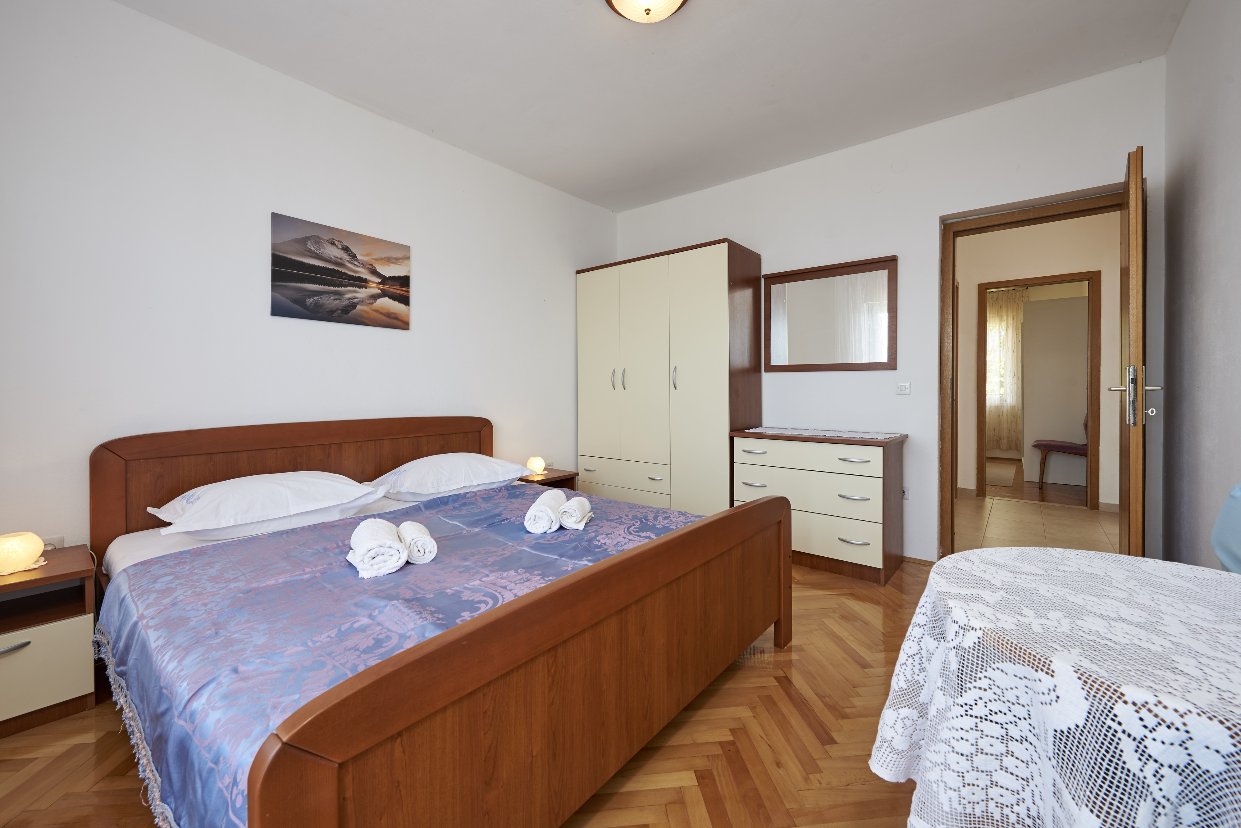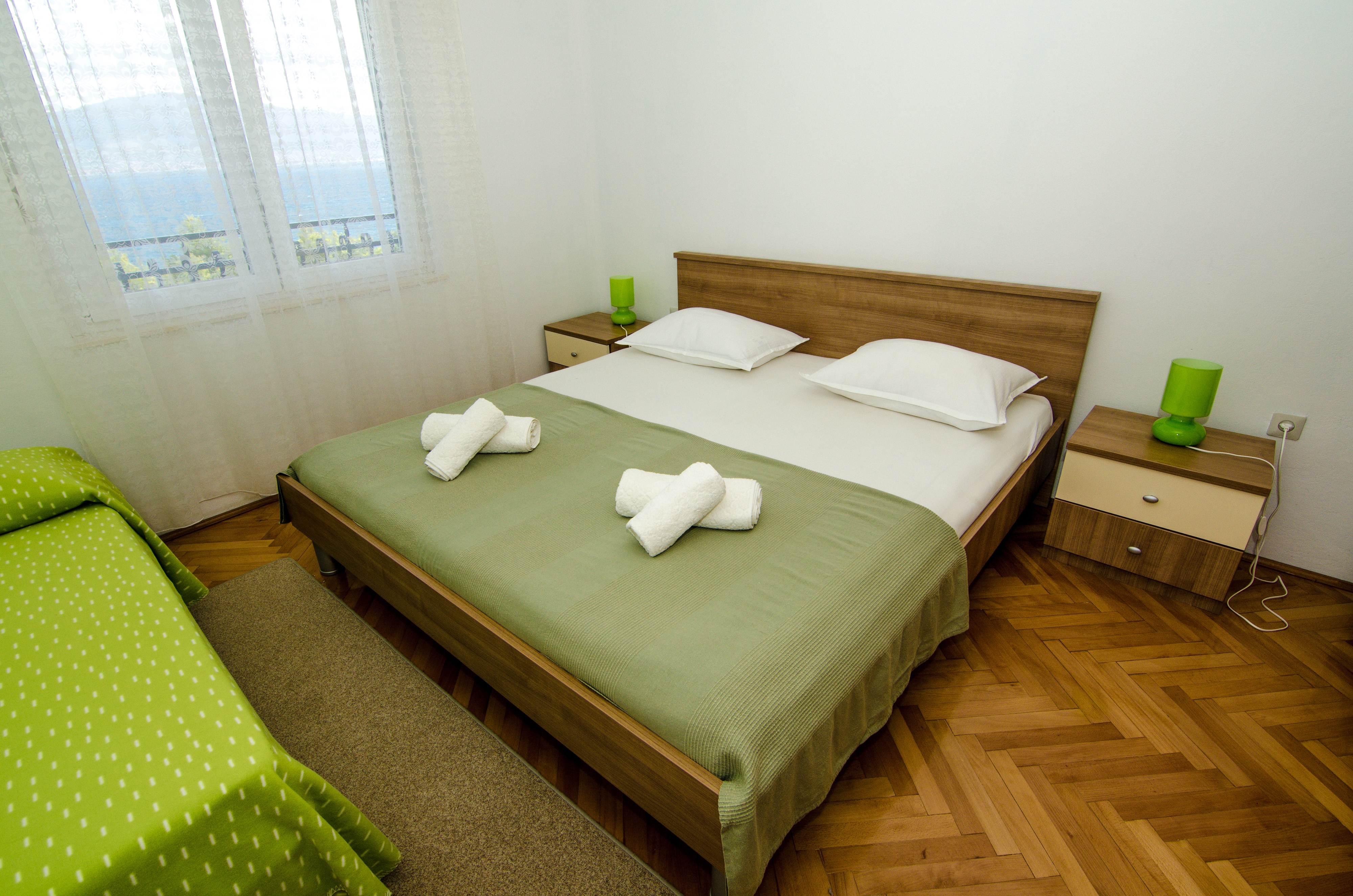Apartment can accommodate 8 guests. Beds are situated in 4 sleeping rooms, within 101m2. Guests can use a private balcony to enjoy the warm summer evenings. The apartment offers the sea view. Food can be prepared using barbecue which is shared with other guests too. INCLUDED IN THE PRICE: tourist tax, final cleaning, air-conditioning, parking, internet, additional bed. The availability of additional services for your chosen dates of stay, as well as their prices (if none are listed) must be checked ahead of time. Any additional services not shown in the price calculation are payable directly to the property owner and only if used by the visitor.