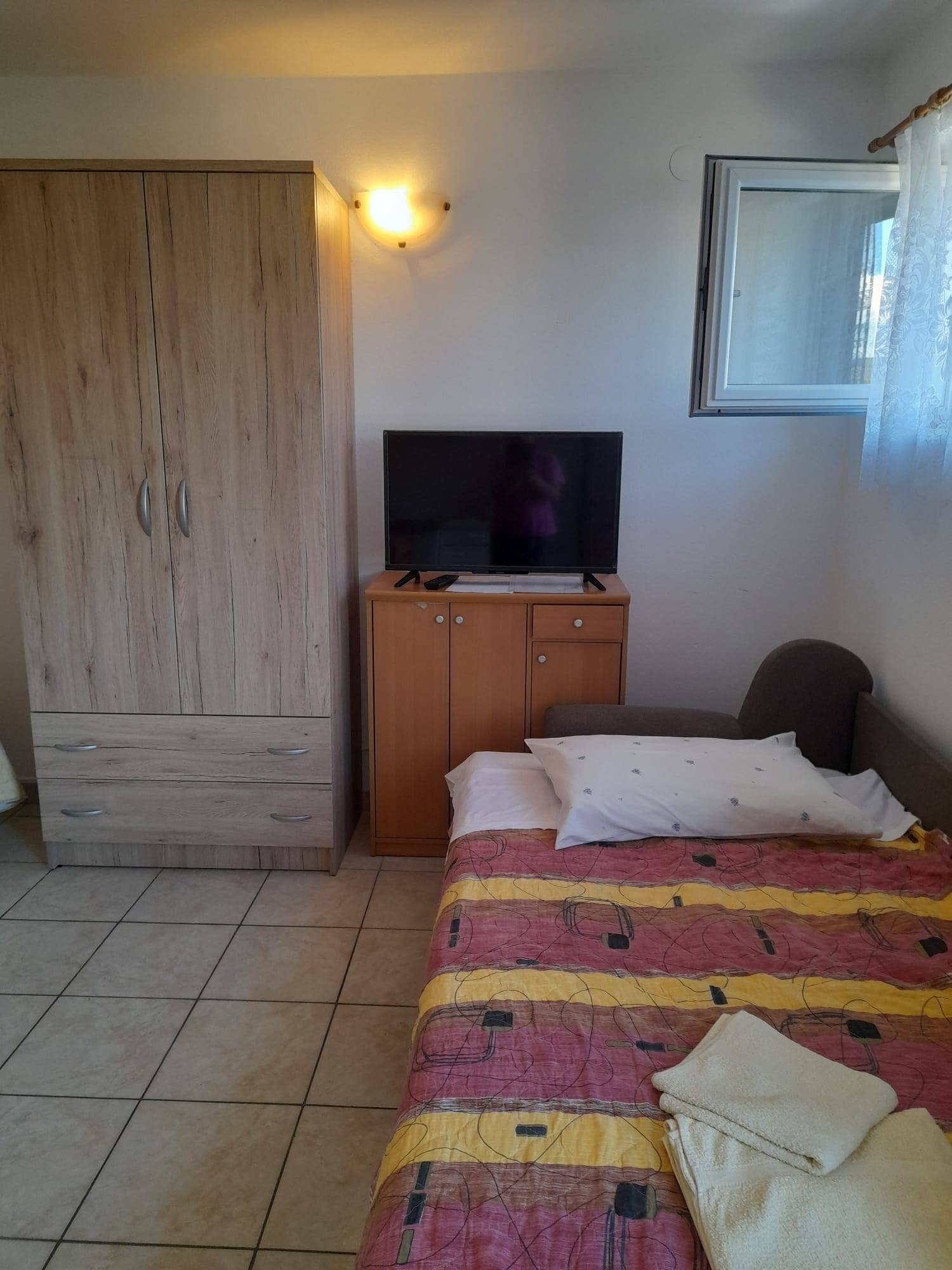 Studio flat can accommodate 3 guests. Beds are situated in 1 sleeping rooms, but also in the dining room, within 21m2. Guests can use a private terrace to enjoy the warm summer evenings. The studio offers the sea view. Food can be prepared using barbecue which is shared with other guests too. INCLUDED IN THE PRICE: tourist tax, final cleaning, air-conditioning, parking, internet, laundry, iron, ironing board, hairdryer, portable barbecue. OBLIGATORY ADDITIONAL COSTS: short stay fee (surcharge depending on a number of booked nights: 30% - 1, 20% - 2, 10% - 3). The availability of additional services for your chosen dates of stay, as well as their prices (if none are listed) must be checked ahead of time. Any additional services not shown in the price calculation are payable directly to the property owner and only if used by the visitor. Discounts to the base price: free day 14=13 (for reservations of 14 or more days you get one free day for the stay until 31122026).