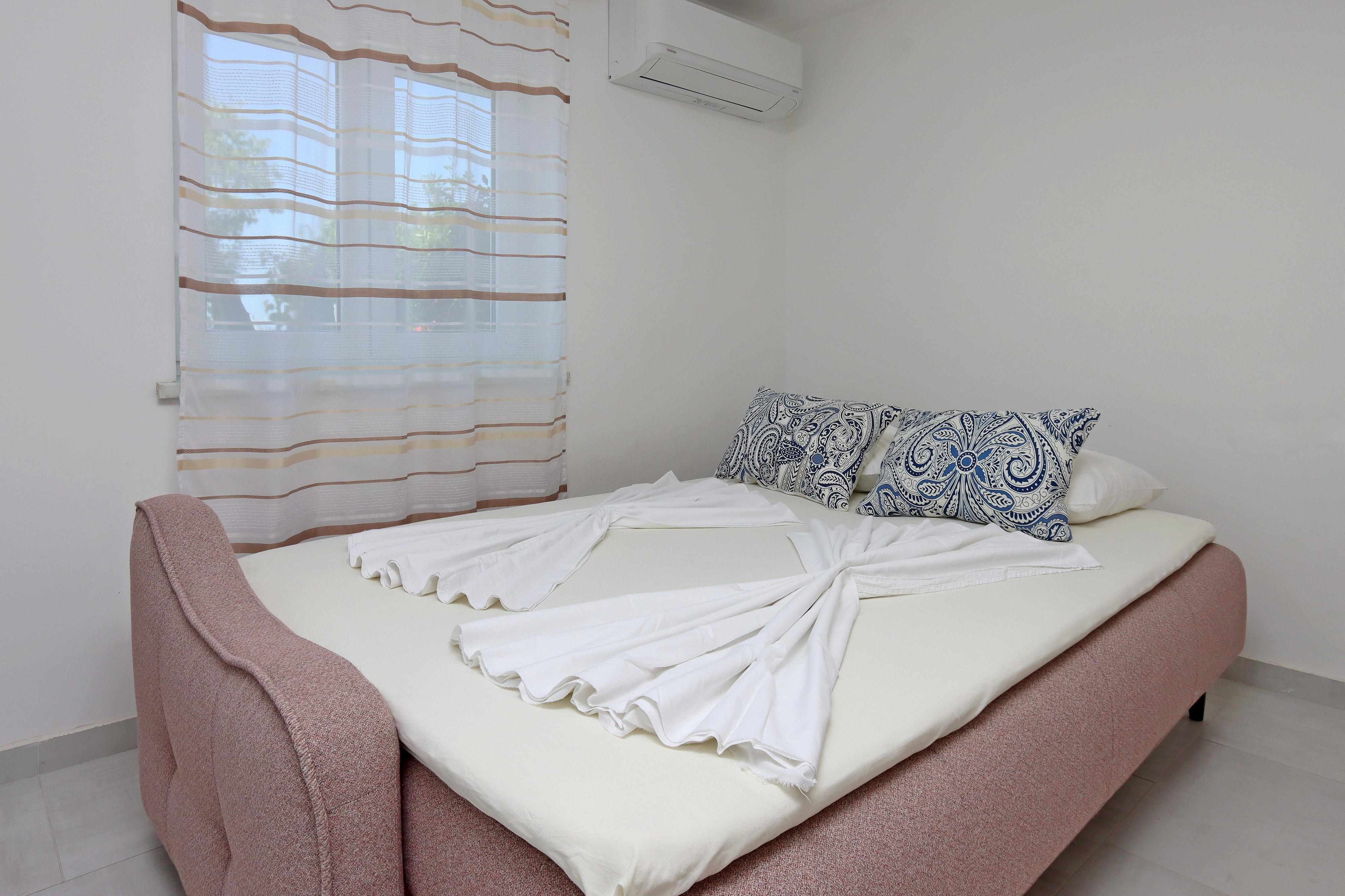 Apartment can accommodate 4 guests. Beds are situated in 1 sleeping rooms, but also in the living room, within 43m2. Guests can use a private terrace to enjoy the warm summer evenings. The apartment offers the sea view. Food can be prepared using barbecue which is shared with other guests too. Some of the rooms of the accommodation unit are not connected with the rest of the unit. INCLUDED IN THE PRICE: tourist tax, final cleaning, air-conditioning, parking, internet, baby cot, iron, ironing board, hairdryer. OBLIGATORY ADDITIONAL COSTS: short stay fee (surcharge depending on a number of booked nights: 30% - 1, 20% - 2, 10% - 3). OPTIONAL ADDITIONAL COSTS: laundry (€5.00 washing). The availability of additional services for your chosen dates of stay, as well as their prices (if none are listed) must be checked ahead of time. Any additional services not shown in the price calculation are payable directly to the property owner and only if used by the visitor. Discounts to the base price: free day 14=13 (for reservations of 14 or more days you get one free day for the stay until 31122026).