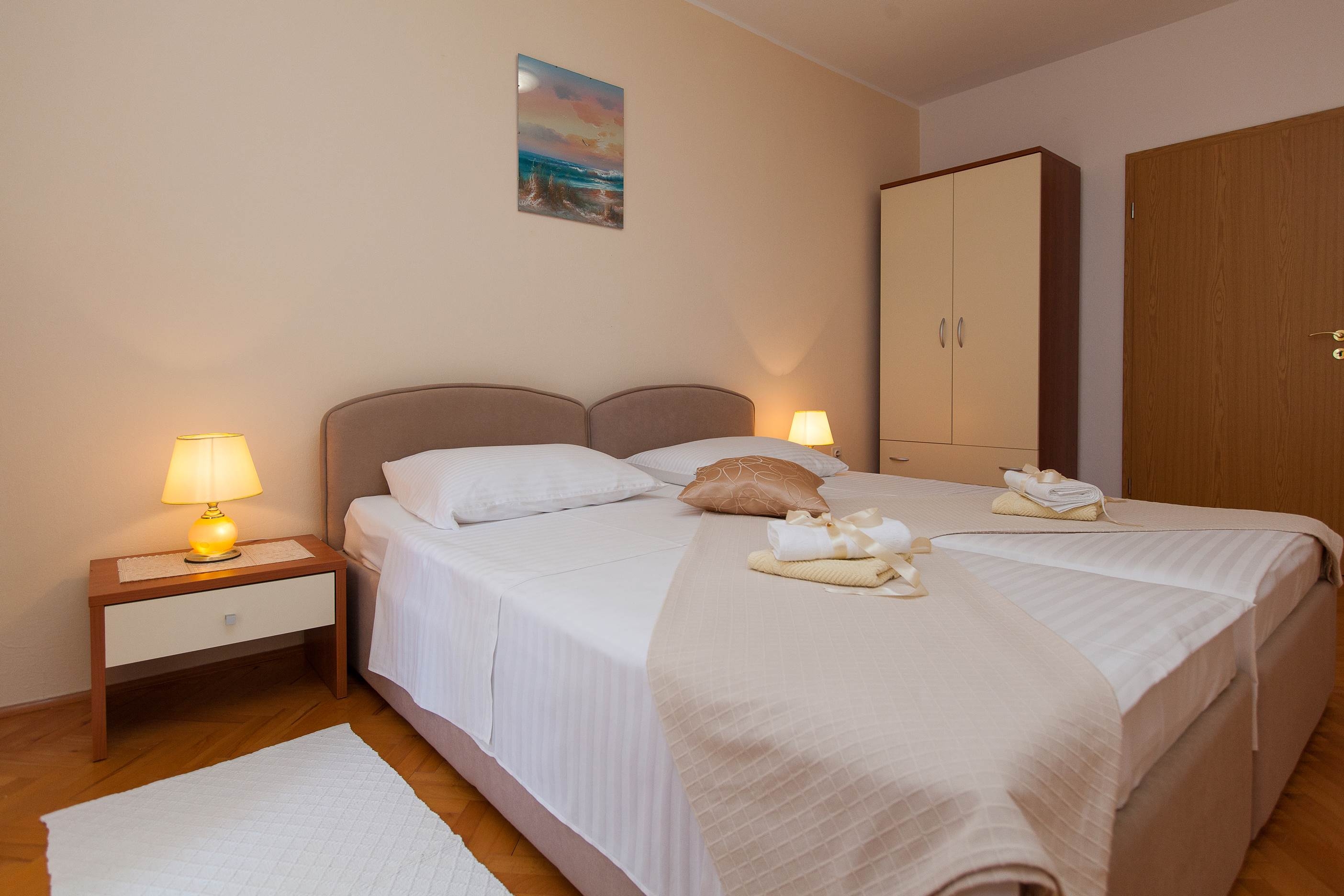 Apartment can accommodate 6 guests. Beds are situated in 2 sleeping rooms, but also in the living room, within 60m2. Guests can use a private terrace to enjoy the warm summer evenings. The apartment offers the sea view. Food can be prepared using barbecue which is shared with other guests too. This accommodation unit welcomes pets at an additional charge. INCLUDED IN THE PRICE: tourist tax, final cleaning, parking, internet, bicycle, baby cot, iron, ironing board, hairdryer. OBLIGATORY ADDITIONAL COSTS: short stay fee (surcharge depending on a number of booked nights: 30% - 1, 20% - 2, 10% - 3). OPTIONAL ADDITIONAL COSTS: air-conditioning (€7.00 per night), pets (€10.00 per night). The availability of additional services for your chosen dates of stay, as well as their prices (if none are listed) must be checked ahead of time. Any additional services not shown in the price calculation are payable directly to the property owner and only if used by the visitor.