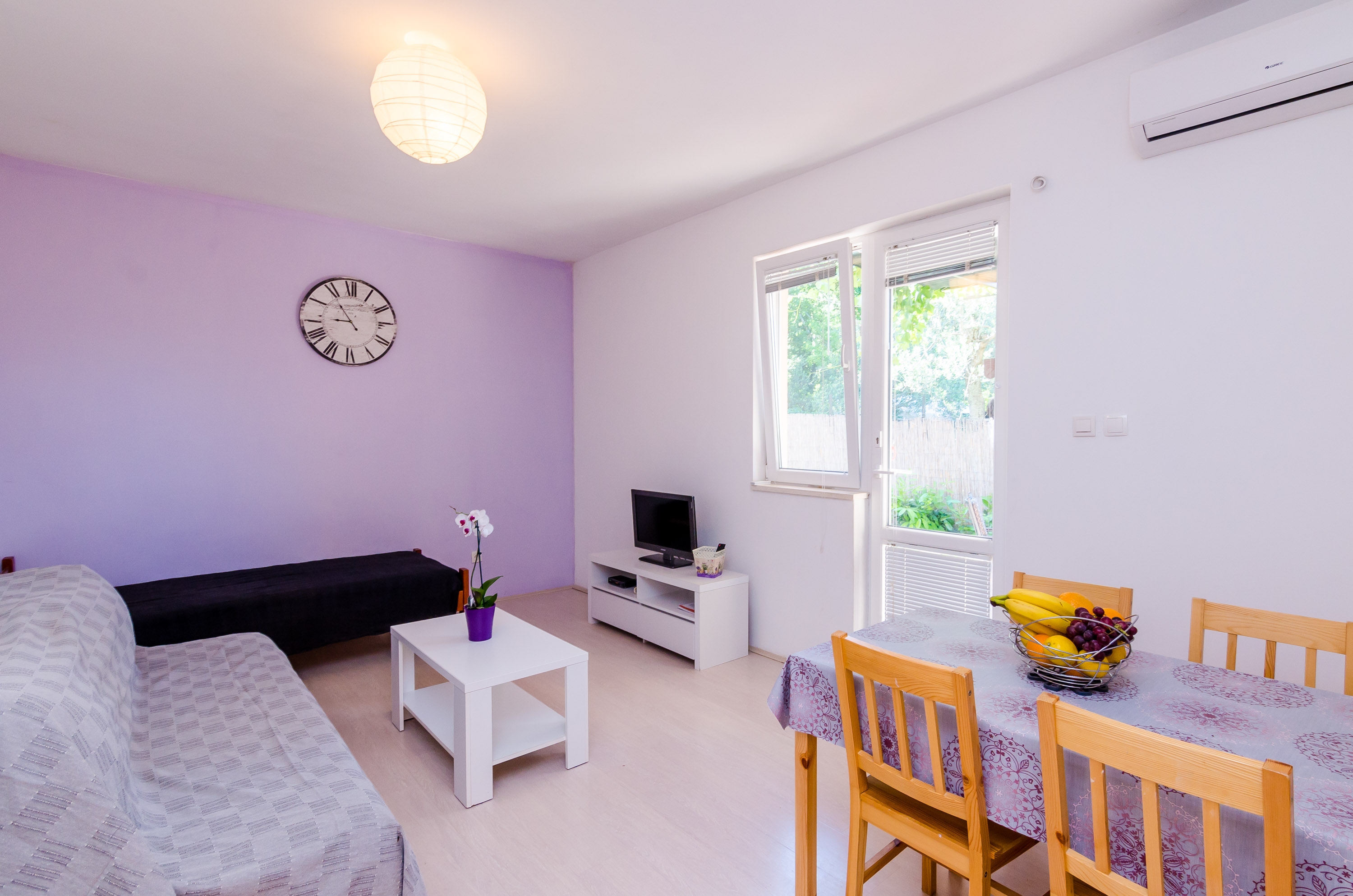 Apartment can accommodate 4 guests. Beds are situated in 1 sleeping rooms, but also in the living room, within 38m2. Guests can use a private terrace to enjoy the warm summer evenings. The apartment offers the sea view. Food can be prepared using barbecue which is shared with other guests too. INCLUDED IN THE PRICE: tourist tax, final cleaning, air-conditioning, parking, internet, boat mooring, baby cot, additional bed, iron, ironing board, hairdryer, sunshade, sunchairs. The availability of additional services for your chosen dates of stay, as well as their prices (if none are listed) must be checked ahead of time. Any additional services not shown in the price calculation are payable directly to the property owner and only if used by the visitor. Discounts to the base price: free day 14=13 (for reservations of 14 or more days you get one free day for the stay until 31122026).