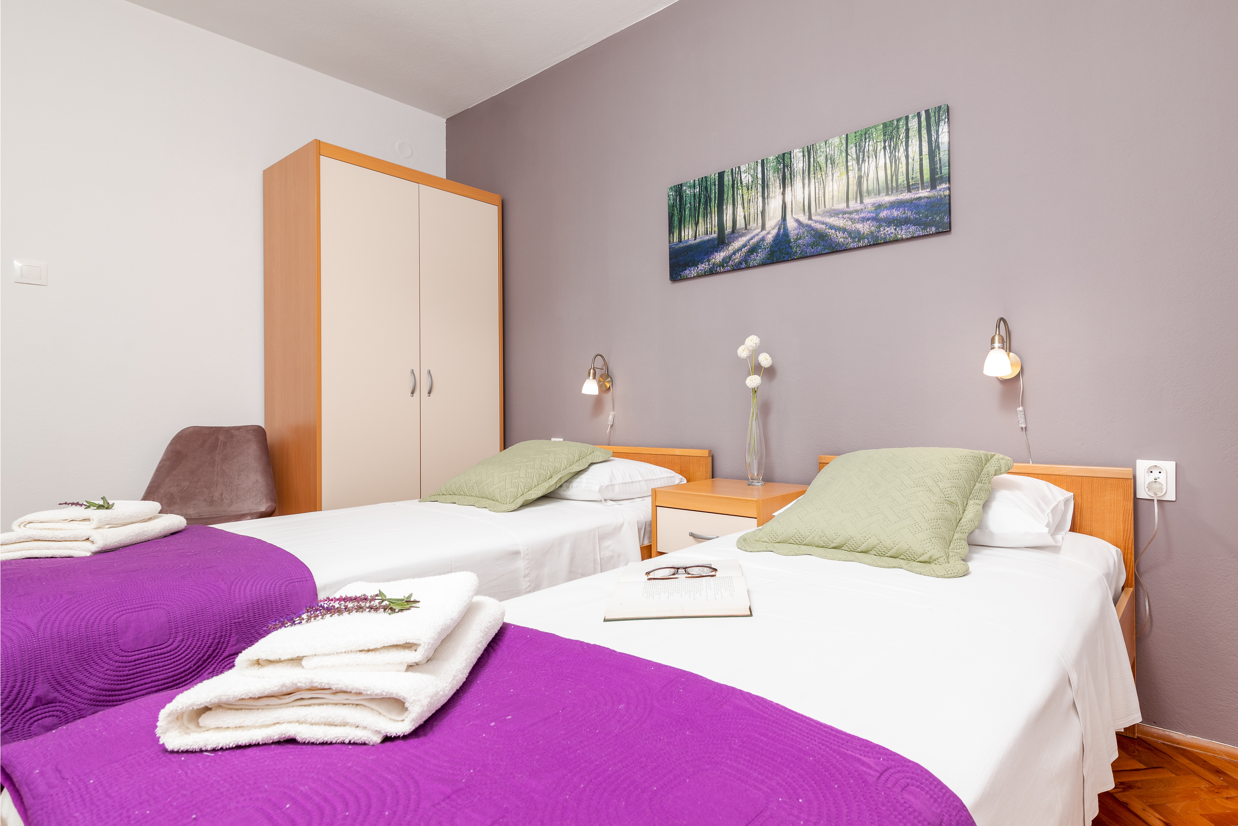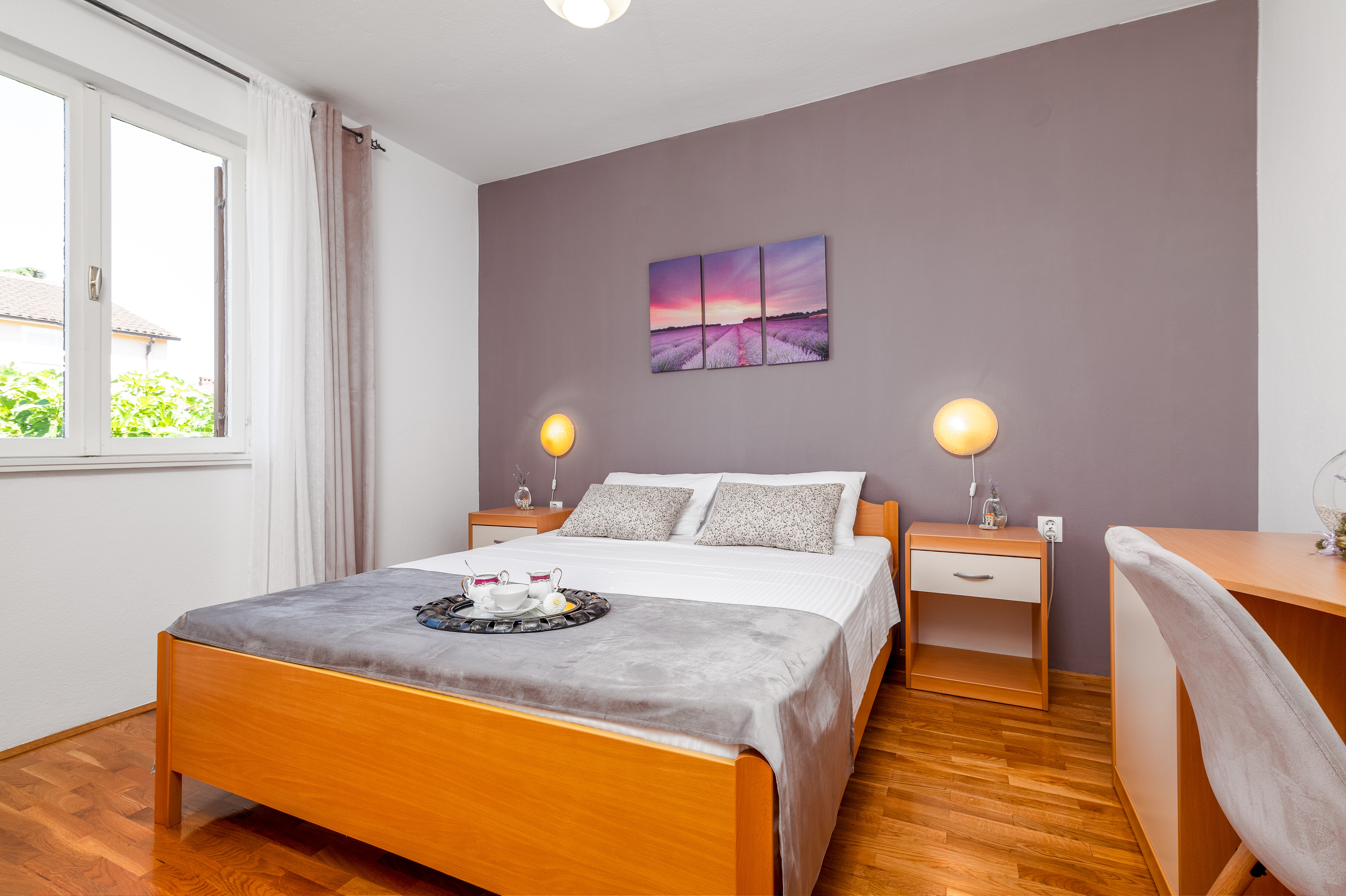 Apartment can accommodate 4 guests. Beds are situated in 2 sleeping rooms, within 56m2. Guests can use a private balcony to enjoy the warm summer evenings. Food can be prepared using barbecue which is shared with other guests too. This accommodation unit welcomes pets at an additional charge. INCLUDED IN THE PRICE: tourist tax, final cleaning, air-conditioning, parking, internet, bicycle, baby cot, iron, ironing board, hairdryer, portable barbecue, sunchairs. OBLIGATORY ADDITIONAL COSTS: short stay fee (surcharge depending on a number of booked nights: 30% - 1, 20% - 2, 10% - 3). OPTIONAL ADDITIONAL COSTS: pets (€5.00 per night). The availability of additional services for your chosen dates of stay, as well as their prices (if none are listed) must be checked ahead of time. Any additional services not shown in the price calculation are payable directly to the property owner and only if used by the visitor.