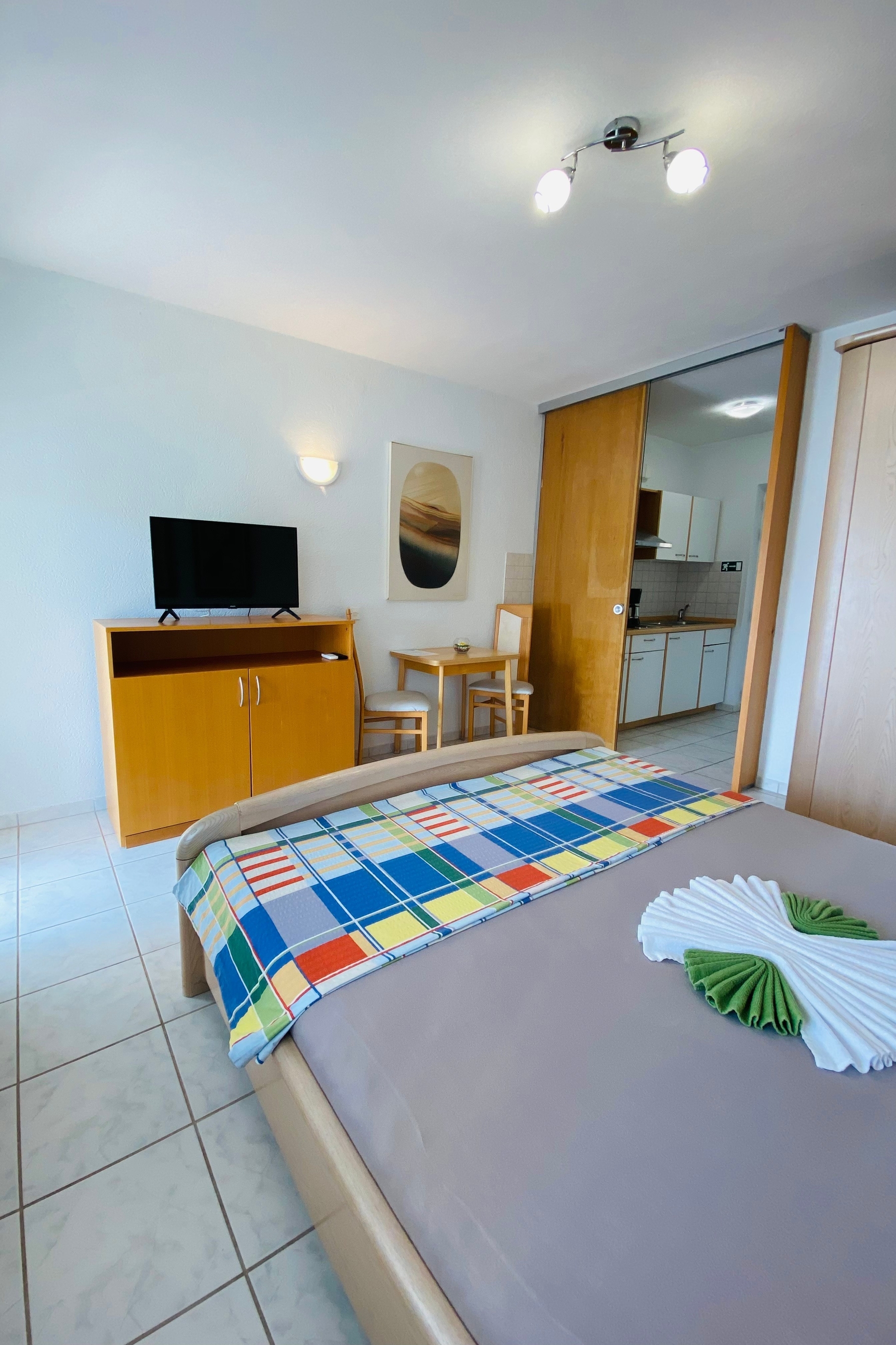 Apartment can accommodate 2 guests. Beds are situated in 1 sleeping rooms, within 26m2. Guests can use a private terrace to enjoy the warm summer evenings. The apartment offers the sea view. Food can be prepared using barbecue which is shared with other guests too. Shared pool is on disposal during stay. This accommodation unit welcomes pets at no additional costs. INCLUDED IN THE PRICE: tourist tax, final cleaning, air-conditioning, pool, parking, internet, laundry, pets, sunchairs, 1 bed for children (included in the price). The availability of additional services for your chosen dates of stay, as well as their prices (if none are listed) must be checked ahead of time. Any additional services not shown in the price calculation are payable directly to the property owner and only if used by the visitor. Discounts to the base price: free day 14=13 (for reservations of 14 or more days you get one free day for the stay until 31122026).