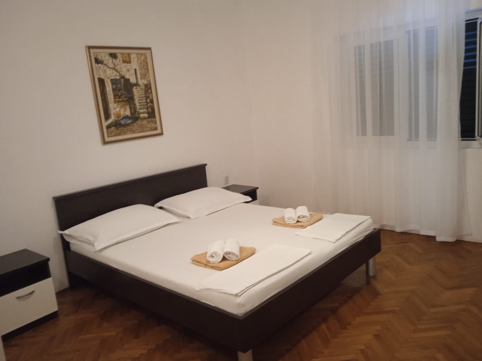 Apartment can accommodate 8 guests. Beds are situated in 4 sleeping rooms, within 97m2. Guests can use a private terrace to enjoy the warm summer evenings. The apartment offers the sea view. Food can be prepared using barbecue which is shared with other guests too. INCLUDED IN THE PRICE: tourist tax, final cleaning, air-conditioning, parking, internet, baby cot, iron, ironing board. OBLIGATORY ADDITIONAL COSTS: short stay fee (surcharge depending on a number of booked nights: 30% - 1, 20% - 2, 10% - 3). OPTIONAL ADDITIONAL COSTS: breakfast (€10.00, a 50% discount for children aged 4 to 12 years, Children up to age 4 free of charge), half-board (€25.00, a 50% discount for children aged 4 to 12 years, Children up to age 4 free of charge), laundry (€7.00 washing). The availability of additional services for your chosen dates of stay, as well as their prices (if none are listed) must be checked ahead of time. Any additional services not shown in the price calculation are payable directly to the property owner and only if used by the visitor.
