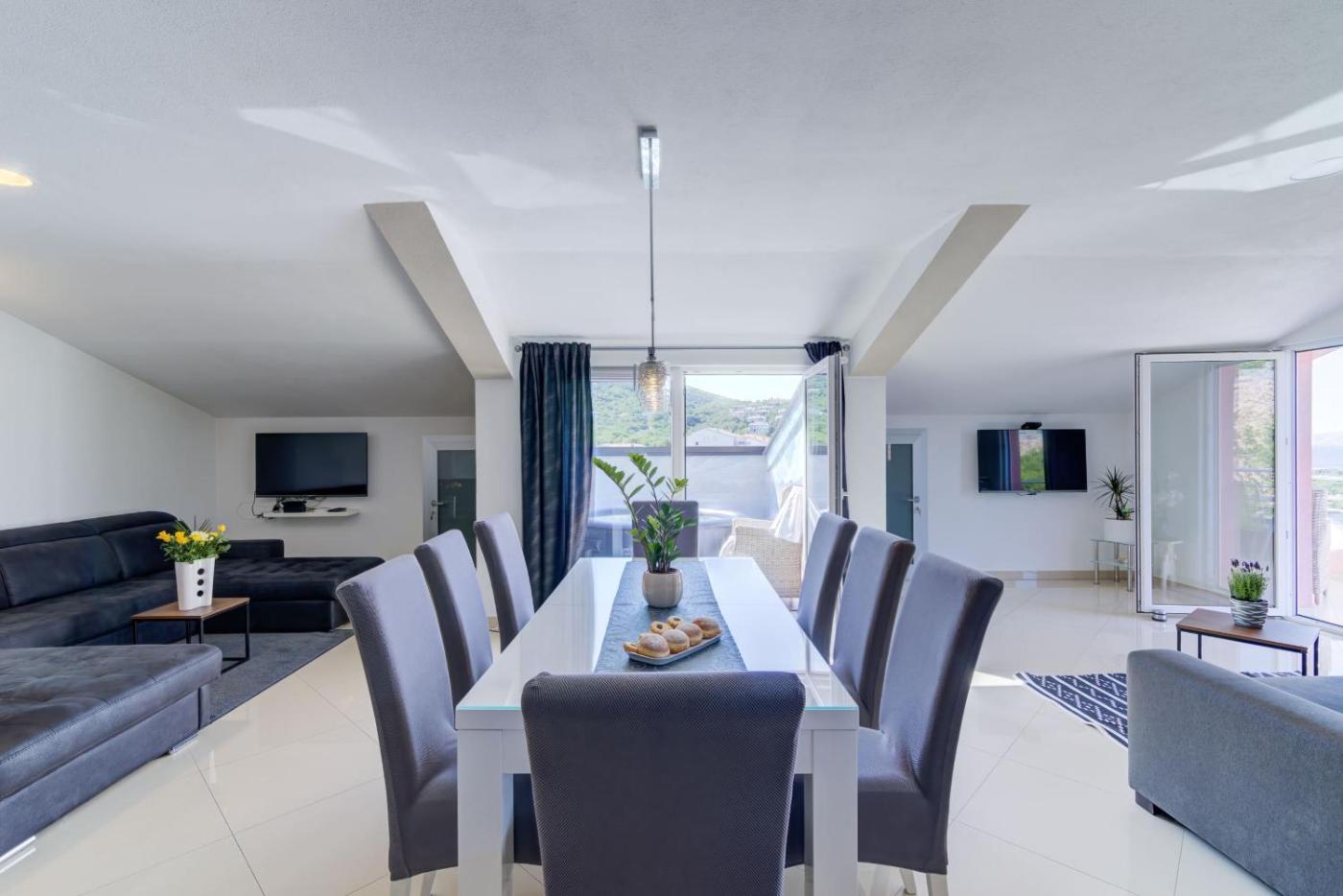 Two-Bedroom Apartment. Guests will have a special experience as this apartment provides a private pool. The apartments kitchen is available for cooking and storing food. The spacious air-conditioned apartment offers a flat-screen TV, a washing machine, a private entrance, tumble dryer as well as sea views. The unit has 3 beds.