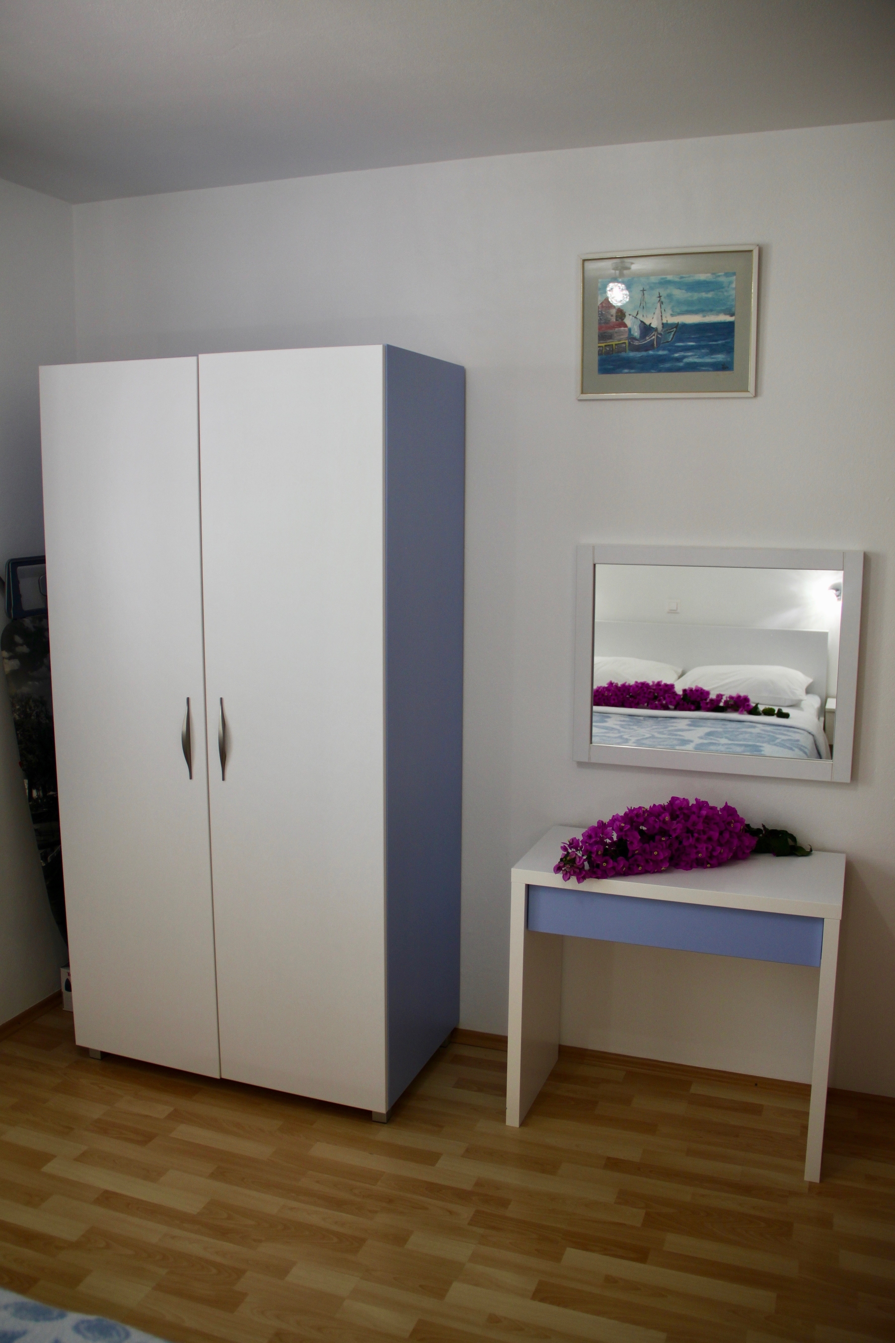 Apartment can accommodate 4 guests. Beds are situated in 2 sleeping rooms, within 51m2. Guests can use a private terrace to enjoy the warm summer evenings. The apartment offers the sea view. Food can be prepared using barbecue which is shared with other guests too. INCLUDED IN THE PRICE: tourist tax, final cleaning, air-conditioning, parking, internet, baby cot, iron, ironing board, hairdryer, sunchairs. OPTIONAL ADDITIONAL COSTS: 2 beds for children (€5.00 personnight). The availability of additional services for your chosen dates of stay, as well as their prices (if none are listed) must be checked ahead of time. Any additional services not shown in the price calculation are payable directly to the property owner and only if used by the visitor.