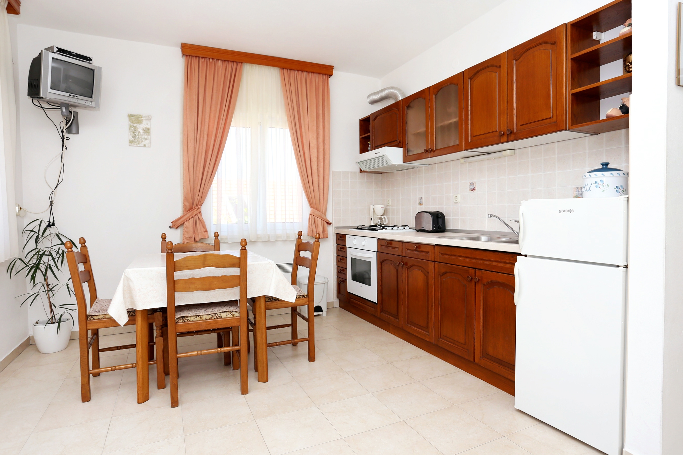 Apartment can accommodate 3 guests. Beds are situated in 1 sleeping rooms, but also in the living room, within 26m2. Guests can use a private terrace to enjoy the warm summer evenings. The apartment offers the sea view. Food can be prepared using barbecue which is shared with other guests too. This accommodation unit welcomes pets at no additional costs. Other guests or hosts pass through the terrace of the booked accommodation unit. INCLUDED IN THE PRICE: tourist tax, final cleaning, air-conditioning, parking, internet, laundry, pets, baby cot, iron, ironing board, hairdryer. OBLIGATORY ADDITIONAL COSTS: short stay fee (surcharge depending on a number of booked nights: 30% - 1, 20% - 2, 10% - 3). The availability of additional services for your chosen dates of stay, as well as their prices (if none are listed) must be checked ahead of time. Any additional services not shown in the price calculation are payable directly to the property owner and only if used by the visitor.