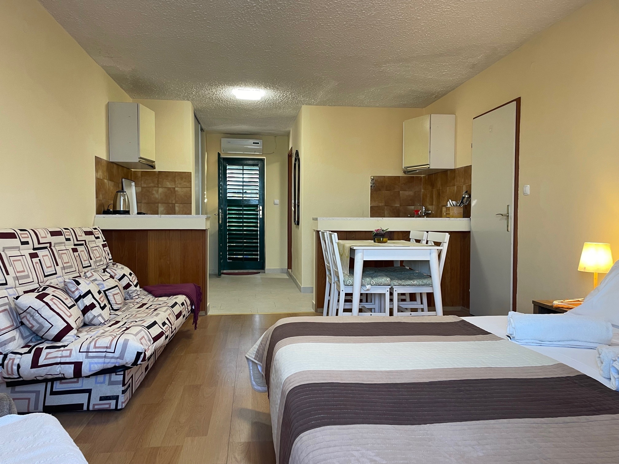 Studio flat can accommodate 2 guests. Beds are situated in 1 sleeping rooms, within 32m2. Guests can use a private terrace to enjoy the warm summer evenings. The studio offers the sea view. Food can be prepared using barbecue which is shared with other guests too. INCLUDED IN THE PRICE: tourist tax, final cleaning, air-conditioning, parking, internet, baby cot, hairdryer. OPTIONAL ADDITIONAL COSTS: boat mooring (€15.00 per night). The availability of additional services for your chosen dates of stay, as well as their prices (if none are listed) must be checked ahead of time. Any additional services not shown in the price calculation are payable directly to the property owner and only if used by the visitor. Discounts to the base price: free day 14=13 (for reservations of 14 or more days you get one free day for the stay until 31122026).