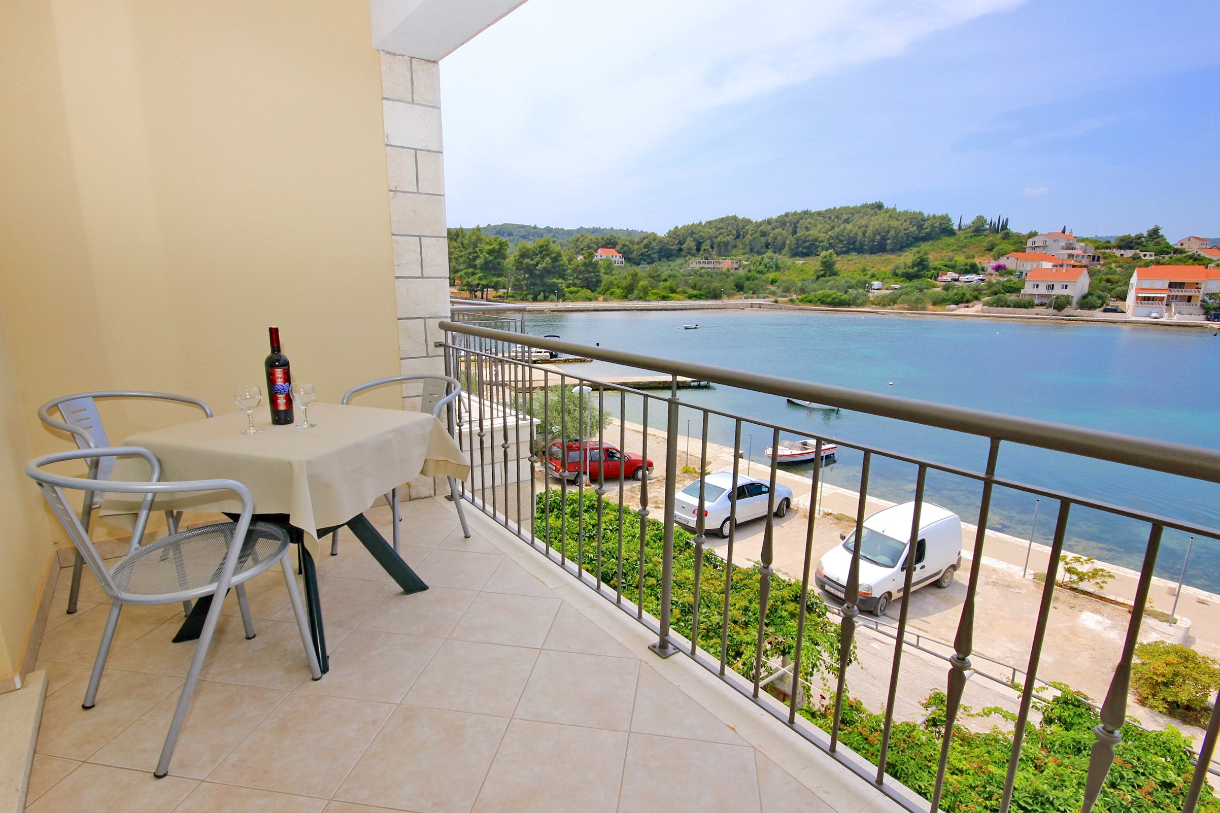 House 9303 in the town of Lumbarda, Korčula - South Dalmatia contains accommodation units of type Studio flat (3), Apartment (1) and is 10 m away from the sea. The nearest beach to this accommodation is a concrete slabs beach. The house is categorized as "Facilities with a swimming pool". Other guests will most likely be present in the house during your holiday, as it contains several apartments. Your hosts will be staying in the house for the duration of your stay. The house owner is under no obligation to accept additional persons and pets that were not stated in the reservation request and it is necessary to report them in advance.AMENITIES Infield (Well-kept), Courtyard (100m2, Area suitable for children, Sitting area), Parking lot (Number of parking spaces: 5, Distance from the house: 5 m), Pool: shared, Dimensions: 6m x 6m x 1.2m, Type of water: Freshwater, Barbecue: shared, WiFi Internet, Boat mooring (Distance from the house: 10 m, Type of boat berth: shore), Hairdryer, Iron, Ironing board, Sunshade, Sunchairs, Baby cot LOCATION AND ACCESS Facility is situated near a local road Local road between the property and the beach The property is located by the beach Car access possible: Yes The facility is situated in relatively quiet surroundings The facility is partly surrounded by vegetation DISTANCES Sea: 10 m Beach: 10 m Center: 5 km Shop: 1.1 km Urgent medical care: 3.5 km Pharmacy: 5 km Exchange office: 1.3 km ATMBank machine: 1.2 km Tourist info: 1.2 km Ferry port: 4.5 km Gas station: 4.5 km Farmers market: 3 km