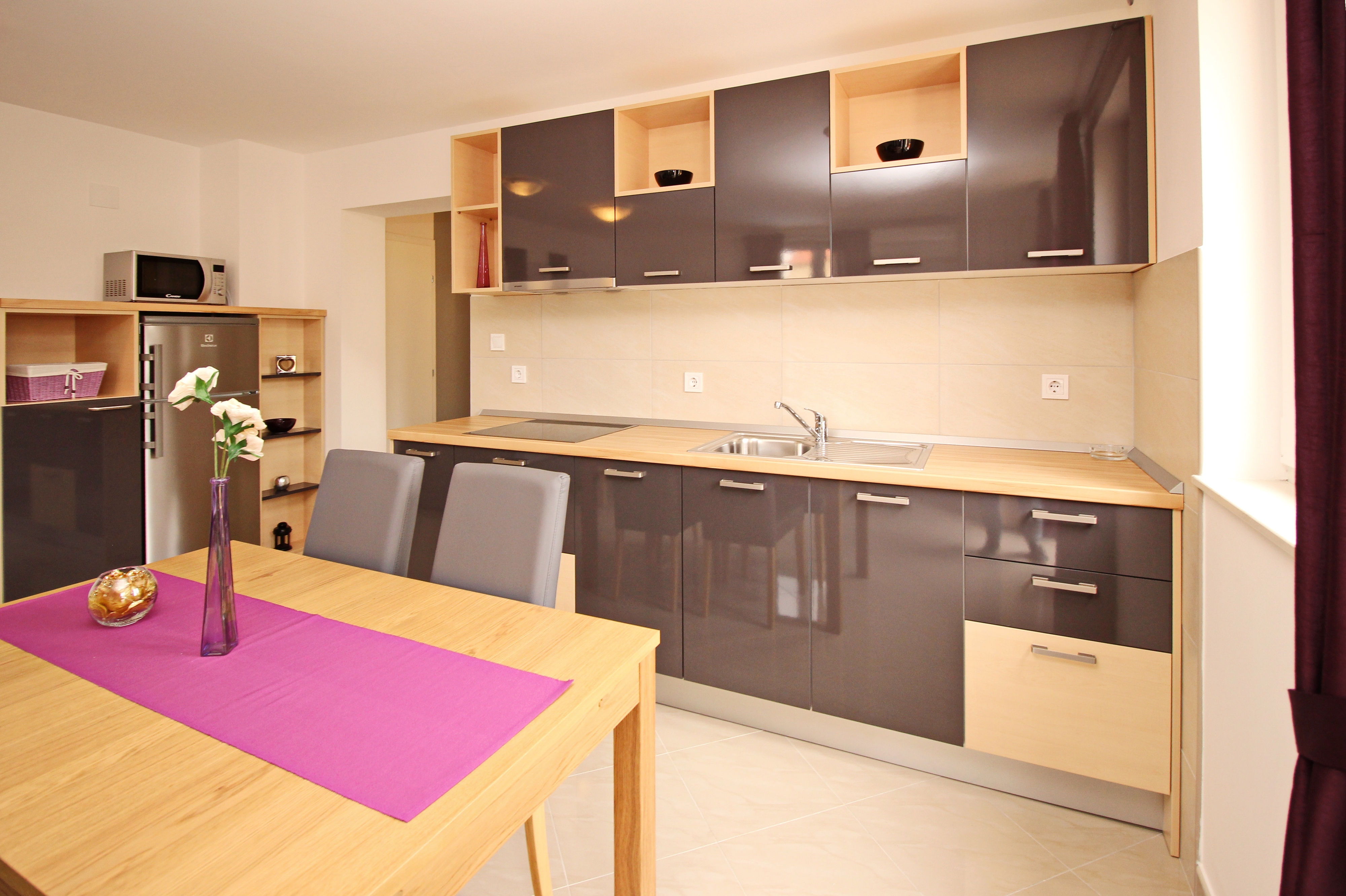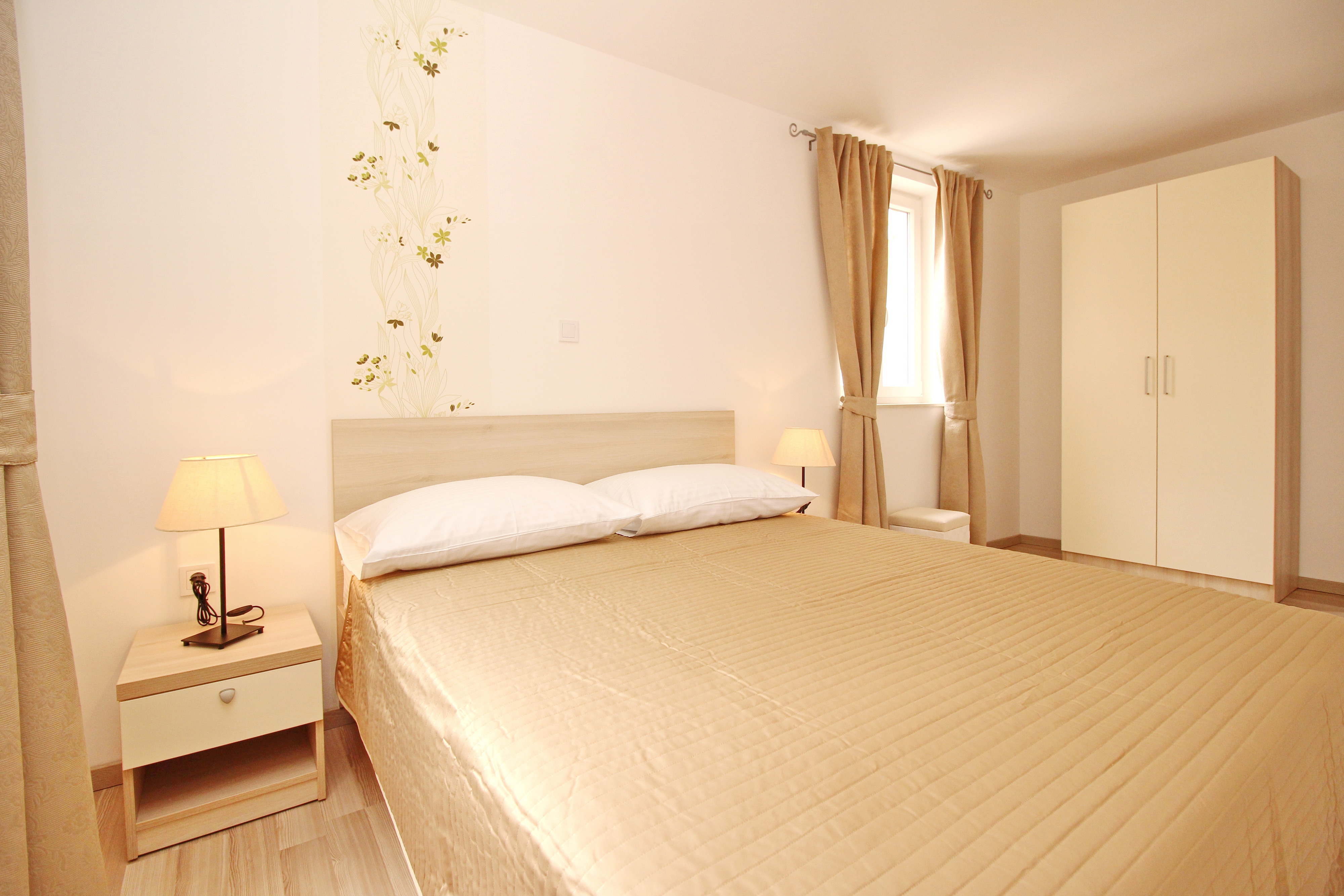 Apartment can accommodate 4 guests. Beds are situated in 1 sleeping rooms, but also in the living room, within 50m2. Guests can use a private terrace to enjoy the warm summer evenings. Food can be prepared using barbecue which is shared with other guests too. Shared pool is on disposal during stay. INCLUDED IN THE PRICE: final cleaning, air-conditioning, pool, parking, internet. OBLIGATORY ADDITIONAL COSTS: tourist tax (adults €0.93 - €2.20 nightperson, discount for children aged 12 - 17), short stay fee (surcharge depending on a number of booked nights: 30% - 1, 20% - 2, 10% - 3). The availability of additional services for your chosen dates of stay, as well as their prices (if none are listed) must be checked ahead of time. Any additional services not shown in the price calculation are payable directly to the property owner and only if used by the visitor.