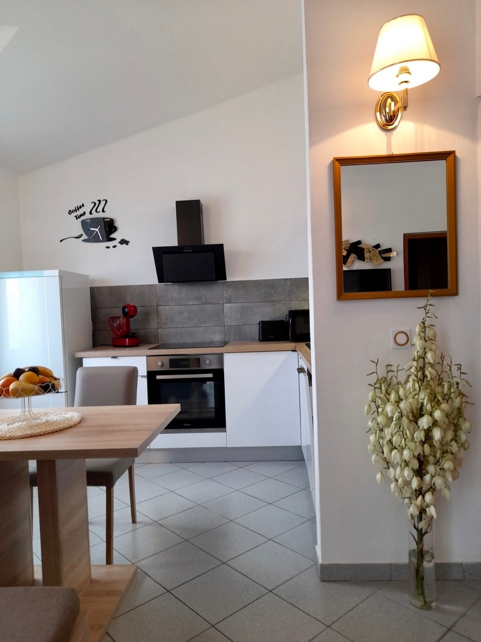 Apartment can accommodate 4 guests. Beds are situated in 2 sleeping rooms, within 49m2. Guests can use a private terrace to enjoy the warm summer evenings. Food can be prepared using barbecue which is shared with other guests too. INCLUDED IN THE PRICE: tourist tax, final cleaning, air-conditioning, parking, internet. OBLIGATORY ADDITIONAL COSTS: short stay fee (surcharge depending on a number of booked nights: 30% - 1, 20% - 2, 10% - 3). The availability of additional services for your chosen dates of stay, as well as their prices (if none are listed) must be checked ahead of time. Any additional services not shown in the price calculation are payable directly to the property owner and only if used by the visitor.
