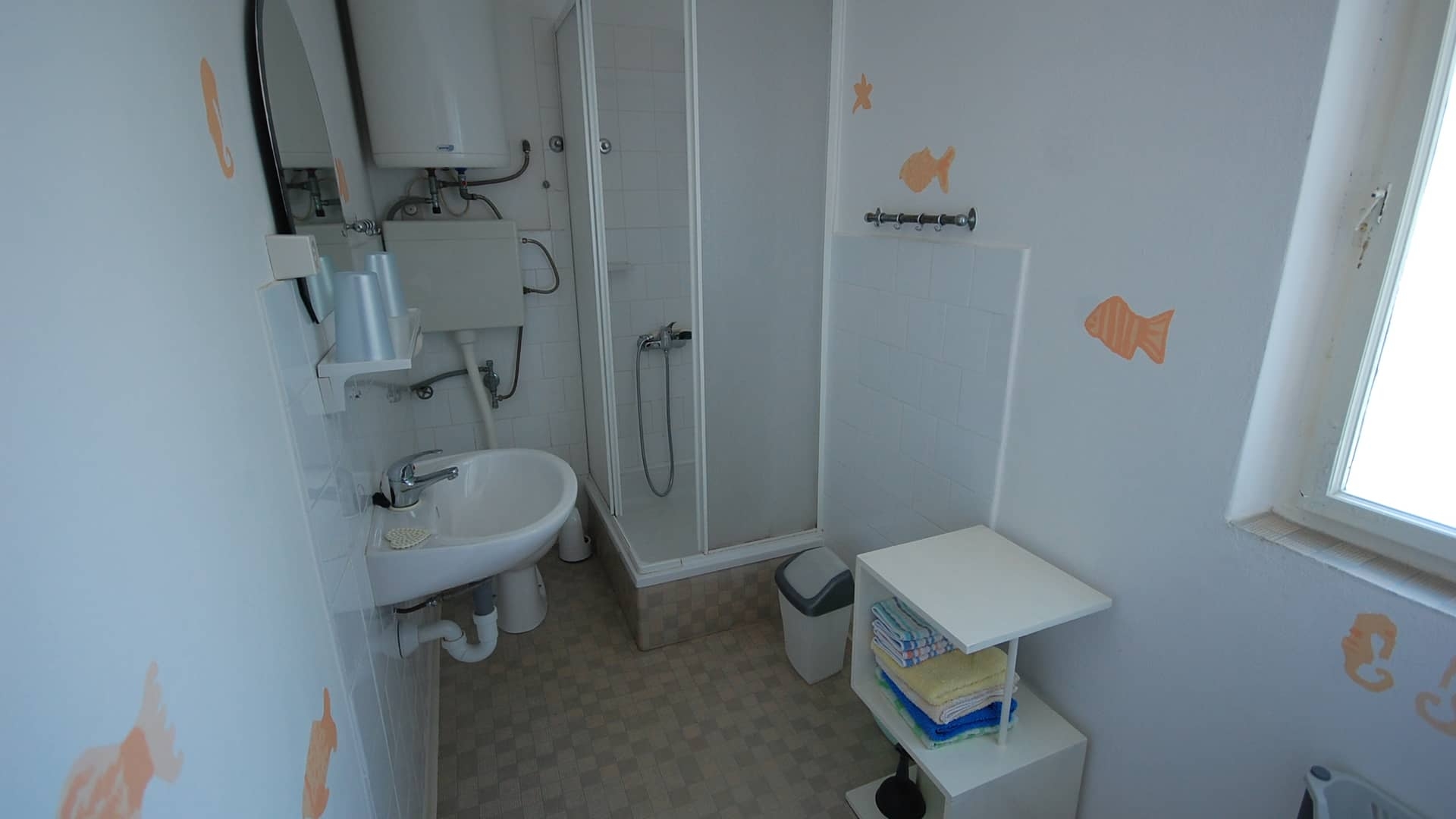 Apartment can accommodate 4 guests. Beds are situated in 1 sleeping rooms, but also in the living room, within 36m2. Guests can use a private terrace to enjoy the warm summer evenings. Food can be prepared using barbecue which is shared with other guests too. INCLUDED IN THE PRICE: tourist tax, final cleaning, air-conditioning, parking, internet. The availability of additional services for your chosen dates of stay, as well as their prices (if none are listed) must be checked ahead of time. Any additional services not shown in the price calculation are payable directly to the property owner and only if used by the visitor.