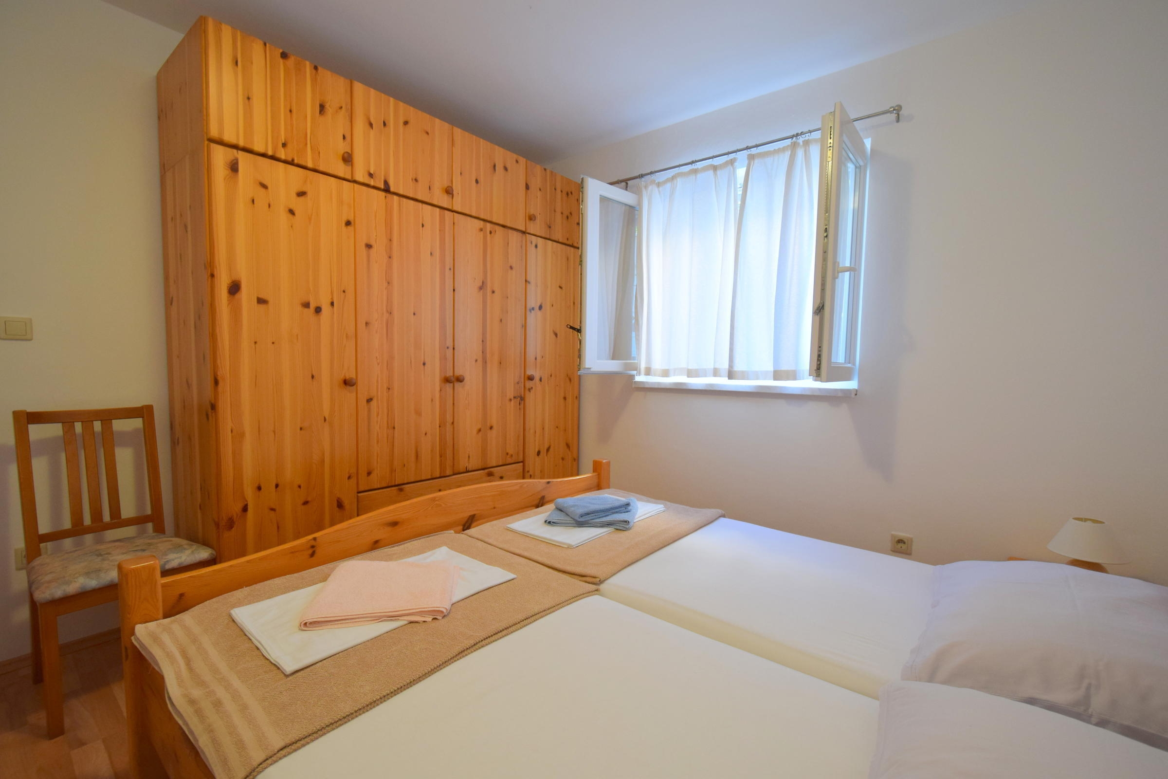 Apartment can accommodate 4 guests. Beds are situated in 1 sleeping rooms, but also in the living room, within 36m2. Guests can use a private terrace to enjoy the warm summer evenings. Food can be prepared using barbecue which is shared with other guests too. INCLUDED IN THE PRICE: tourist tax, final cleaning, air-conditioning, parking, internet. The availability of additional services for your chosen dates of stay, as well as their prices (if none are listed) must be checked ahead of time. Any additional services not shown in the price calculation are payable directly to the property owner and only if used by the visitor.