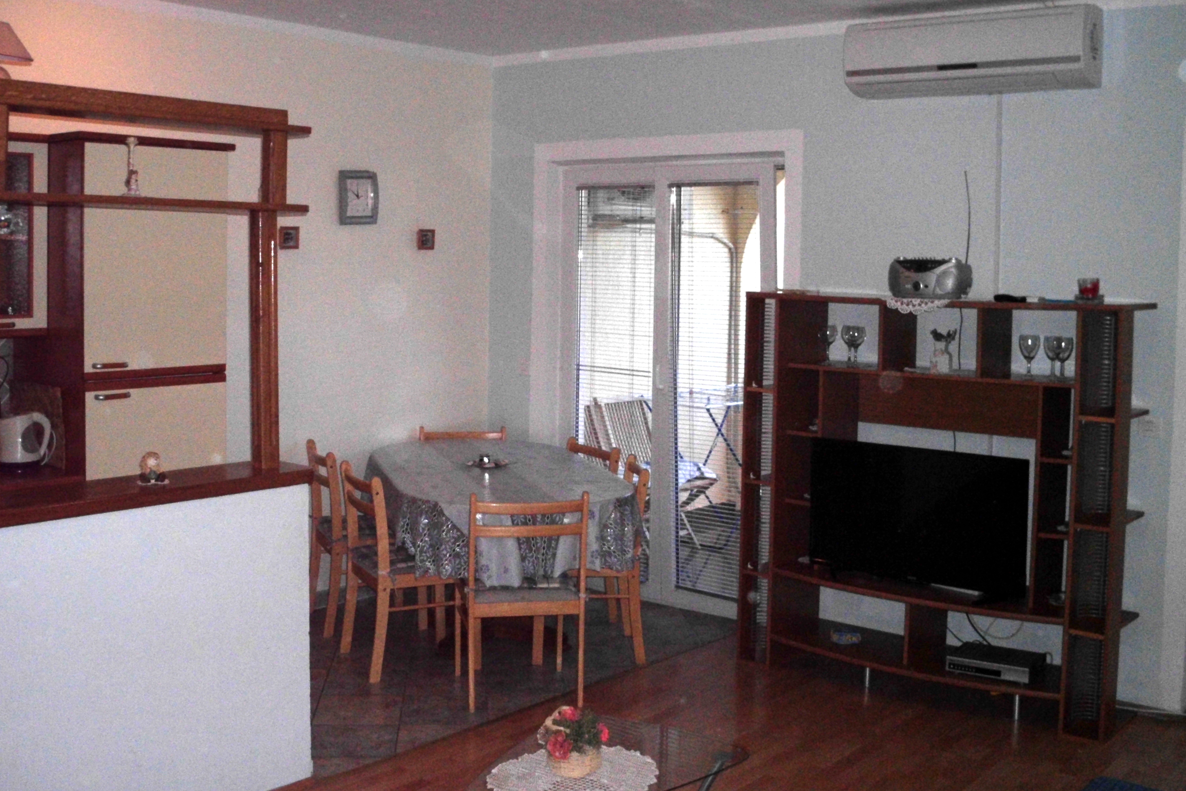 Apartment can accommodate 6 guests. Beds are situated in 2 sleeping rooms, but also in the living room, within 59m2. Guests can use a private terrace to enjoy the warm summer evenings. Food can be prepared using barbecue which is shared with other guests too. INCLUDED IN THE PRICE: tourist tax, final cleaning, parking, internet, laundry, baby cot, iron, ironing board, hairdryer. OPTIONAL ADDITIONAL COSTS: air-conditioning (€5.00 per night). The availability of additional services for your chosen dates of stay, as well as their prices (if none are listed) must be checked ahead of time. Any additional services not shown in the price calculation are payable directly to the property owner and only if used by the visitor.