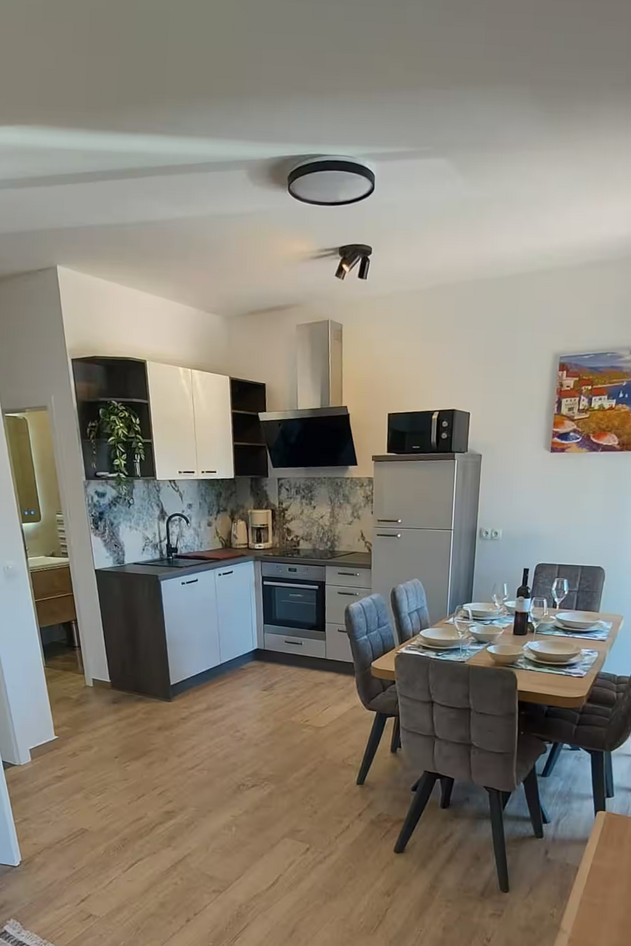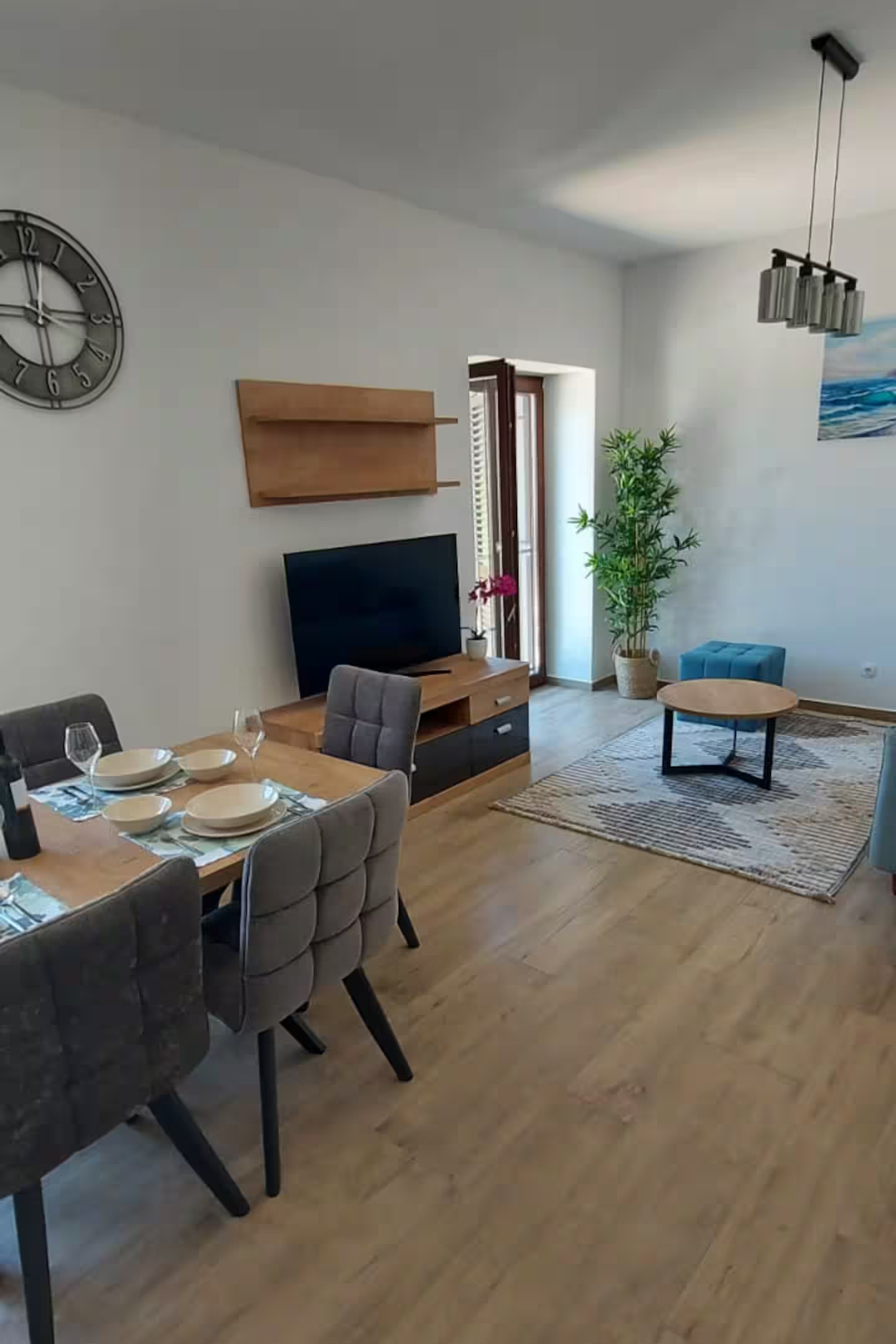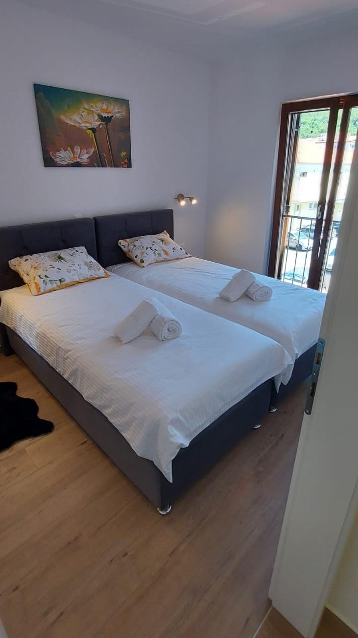 Apartment can accommodate 6 guests. Beds are situated in 2 sleeping rooms, but also in the living room, within 67m2. Food can be prepared using barbecue which is shared with other guests too. There is no balcony or terrace in the reserved accommodation unit. INCLUDED IN THE PRICE: tourist tax, final cleaning, air-conditioning, parking, internet, baby cot, iron, ironing board, hairdryer. OBLIGATORY ADDITIONAL COSTS: short stay fee (surcharge depending on a number of booked nights: 30% - 1, 20% - 2, 10% - 3). OPTIONAL ADDITIONAL COSTS: additional bed (€30.00 per night). The availability of additional services for your chosen dates of stay, as well as their prices (if none are listed) must be checked ahead of time. Any additional services not shown in the price calculation are payable directly to the property owner and only if used by the visitor.