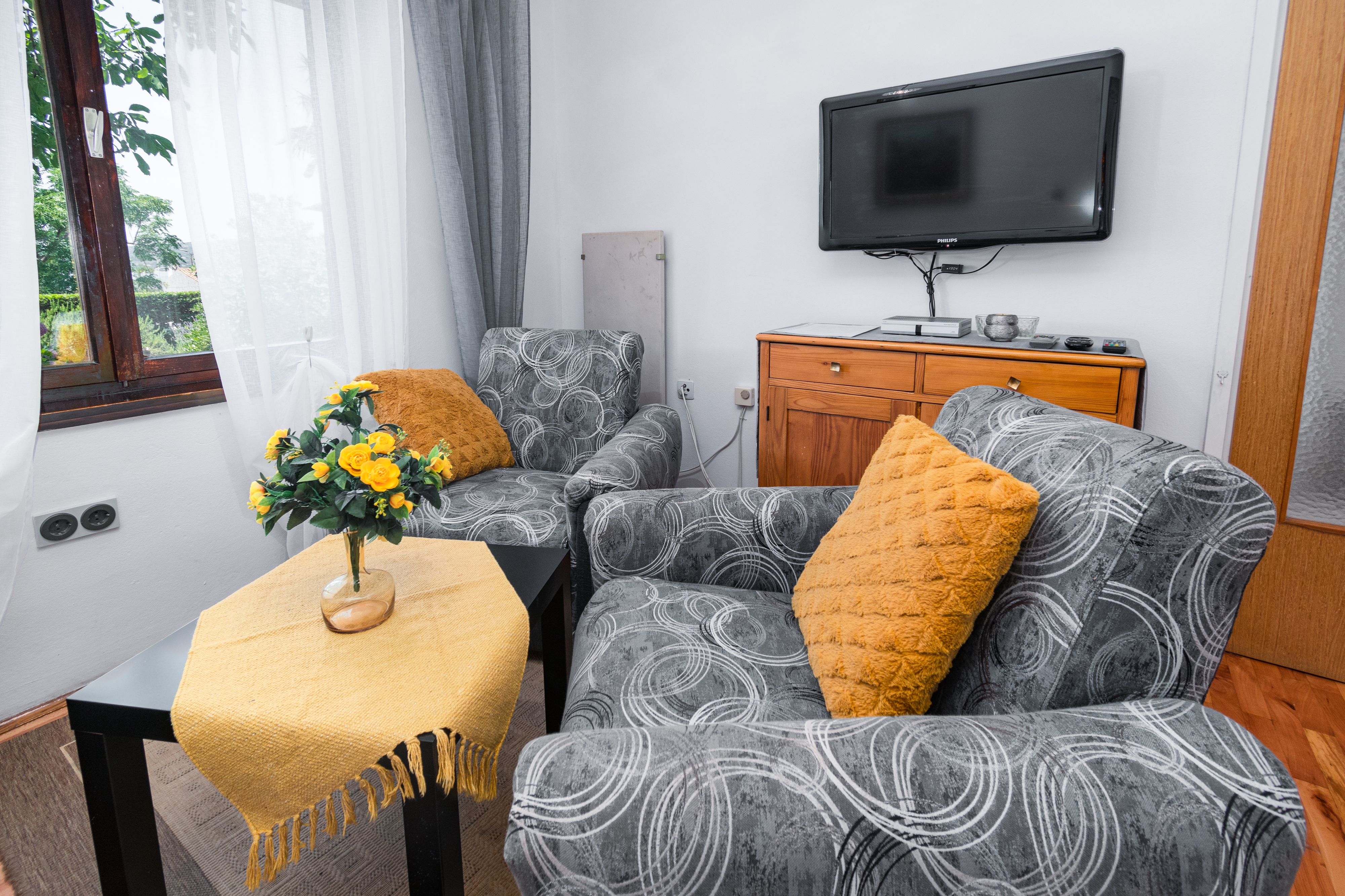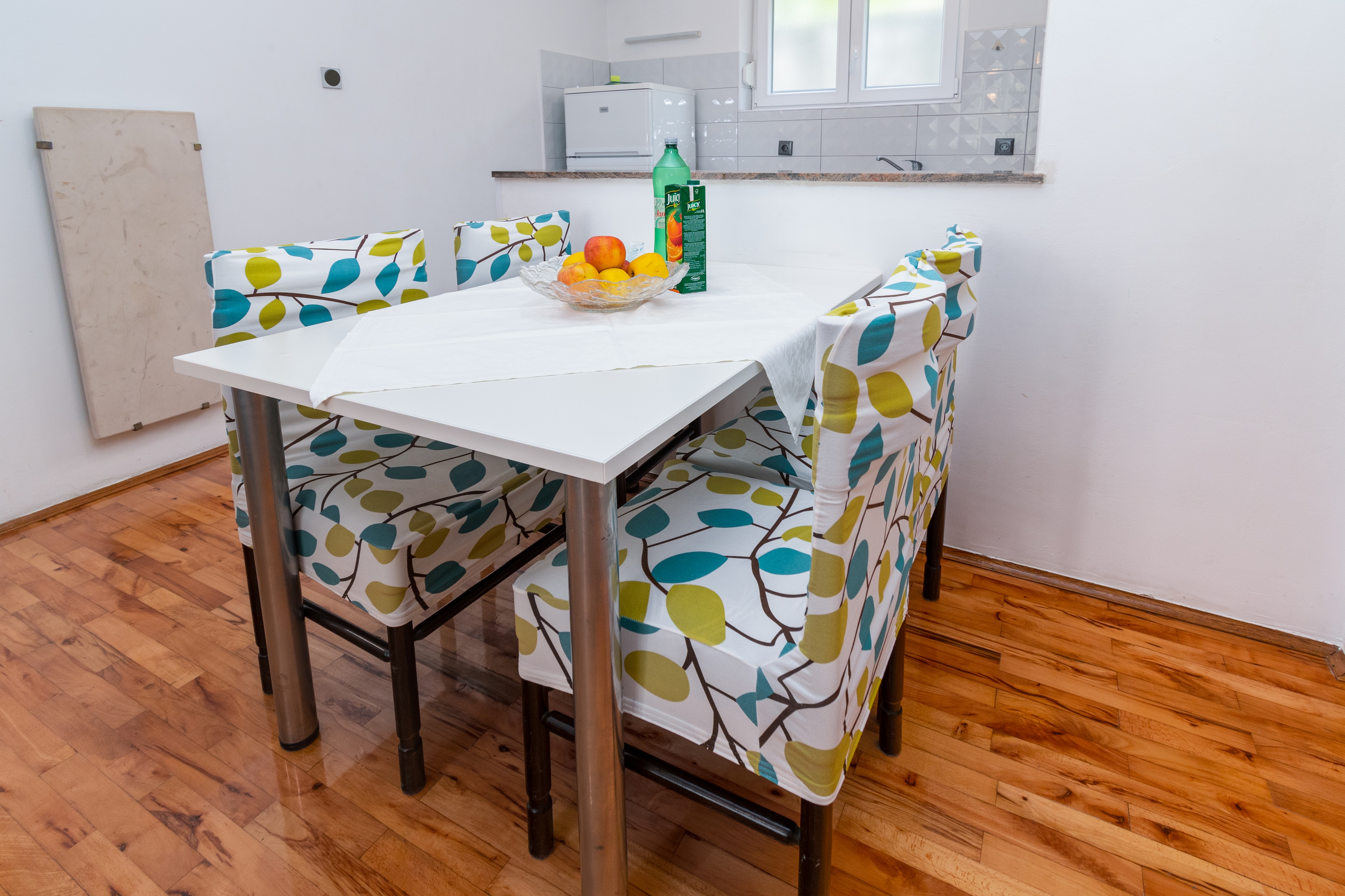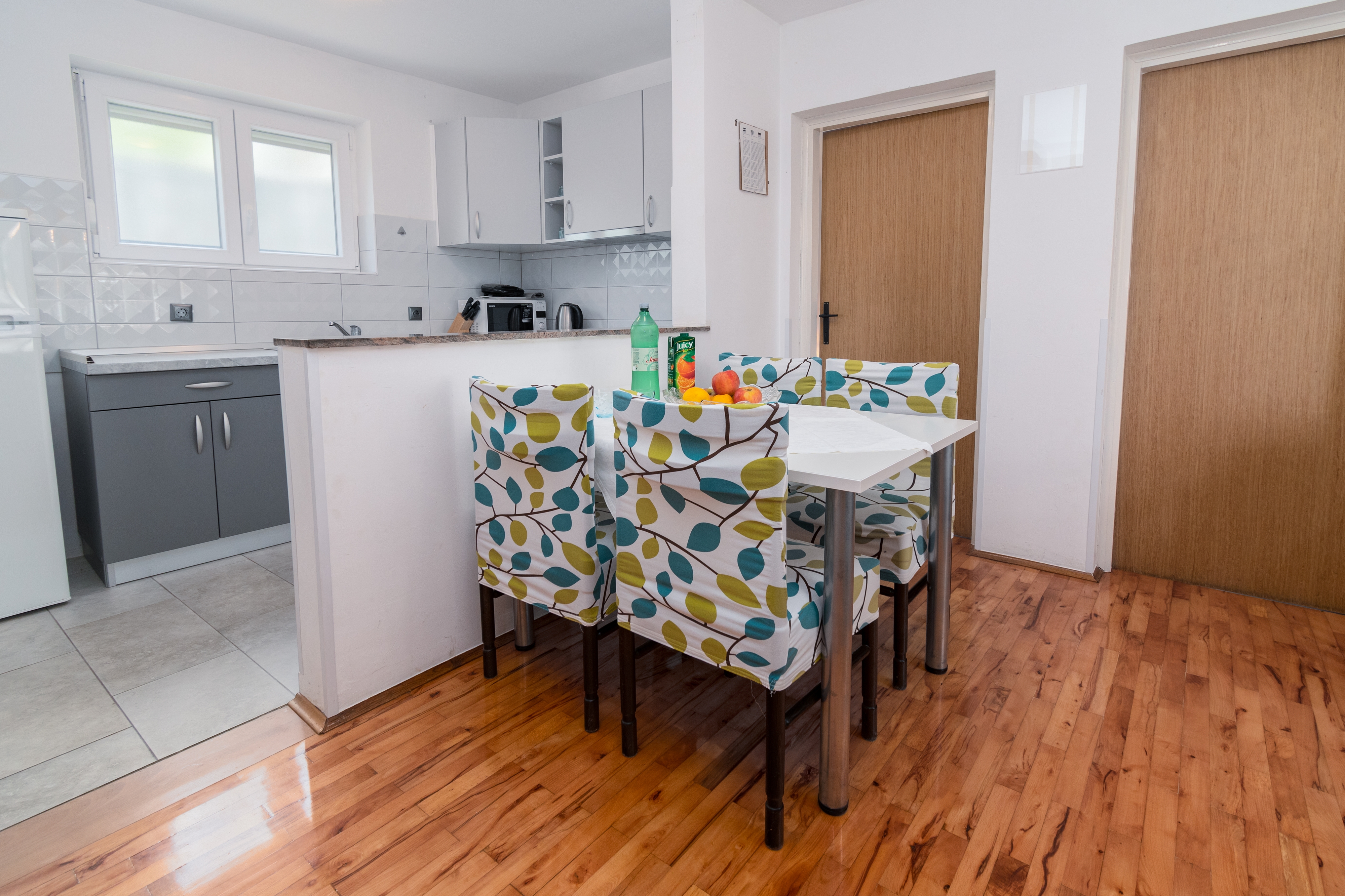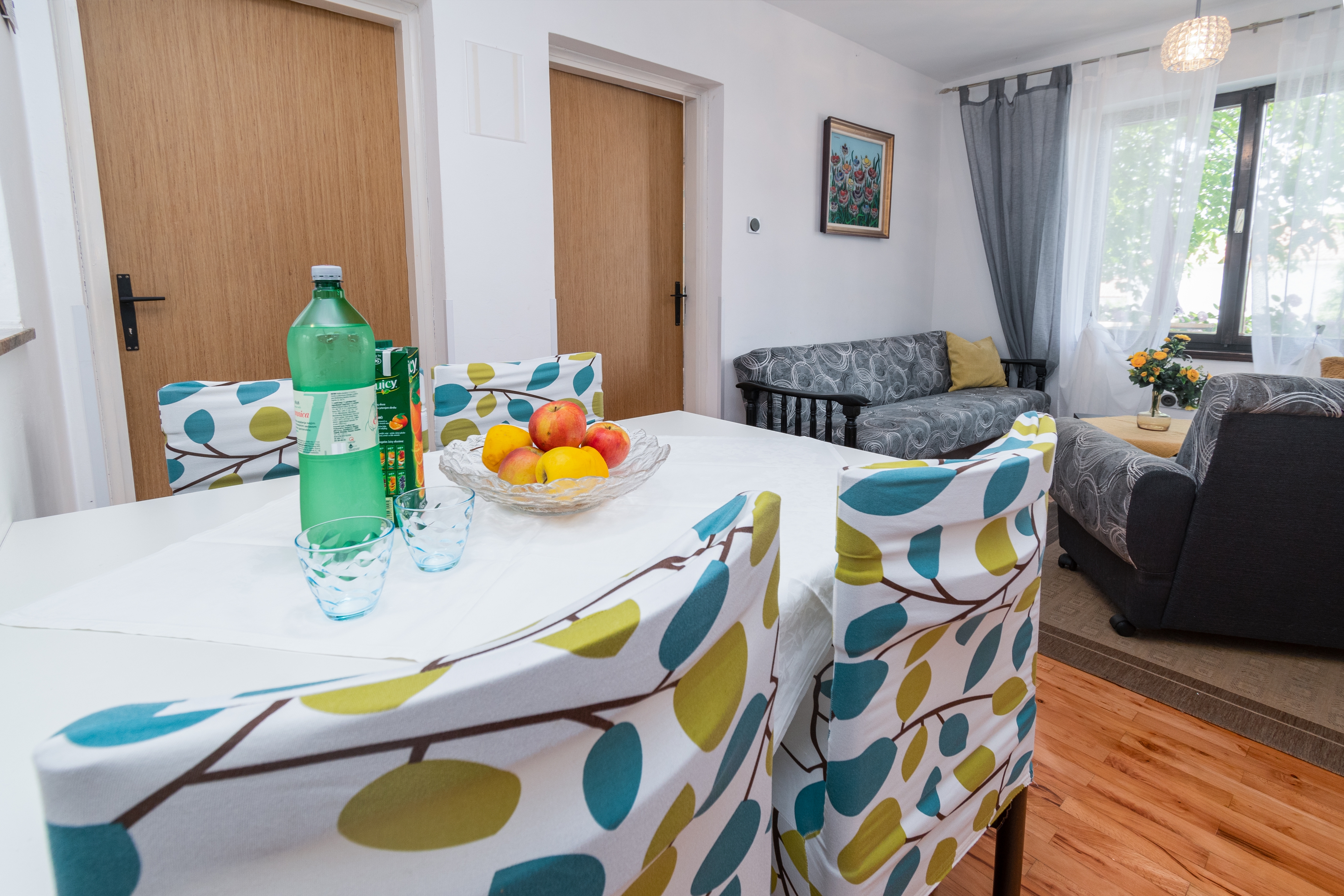 Apartment can accommodate 5 guests. Beds are situated in 2 sleeping rooms, but also in the living room, within 51m2. Guests can use a private terrace to enjoy the warm summer evenings. The apartment offers the sea view. Food can be prepared using barbecue which is shared with other guests too. This accommodation unit welcomes pets at an additional charge. INCLUDED IN THE PRICE: tourist tax, final cleaning, parking, internet, iron, ironing board, hairdryer, portable barbecue. OPTIONAL ADDITIONAL COSTS: air-conditioning (€7.00 per night), pets (€7.00 per night). The availability of additional services for your chosen dates of stay, as well as their prices (if none are listed) must be checked ahead of time. Any additional services not shown in the price calculation are payable directly to the property owner and only if used by the visitor. Discounts to the base price: free day 14=13 (for reservations of 14 or more days you get one free day for the stay until 31122026).
