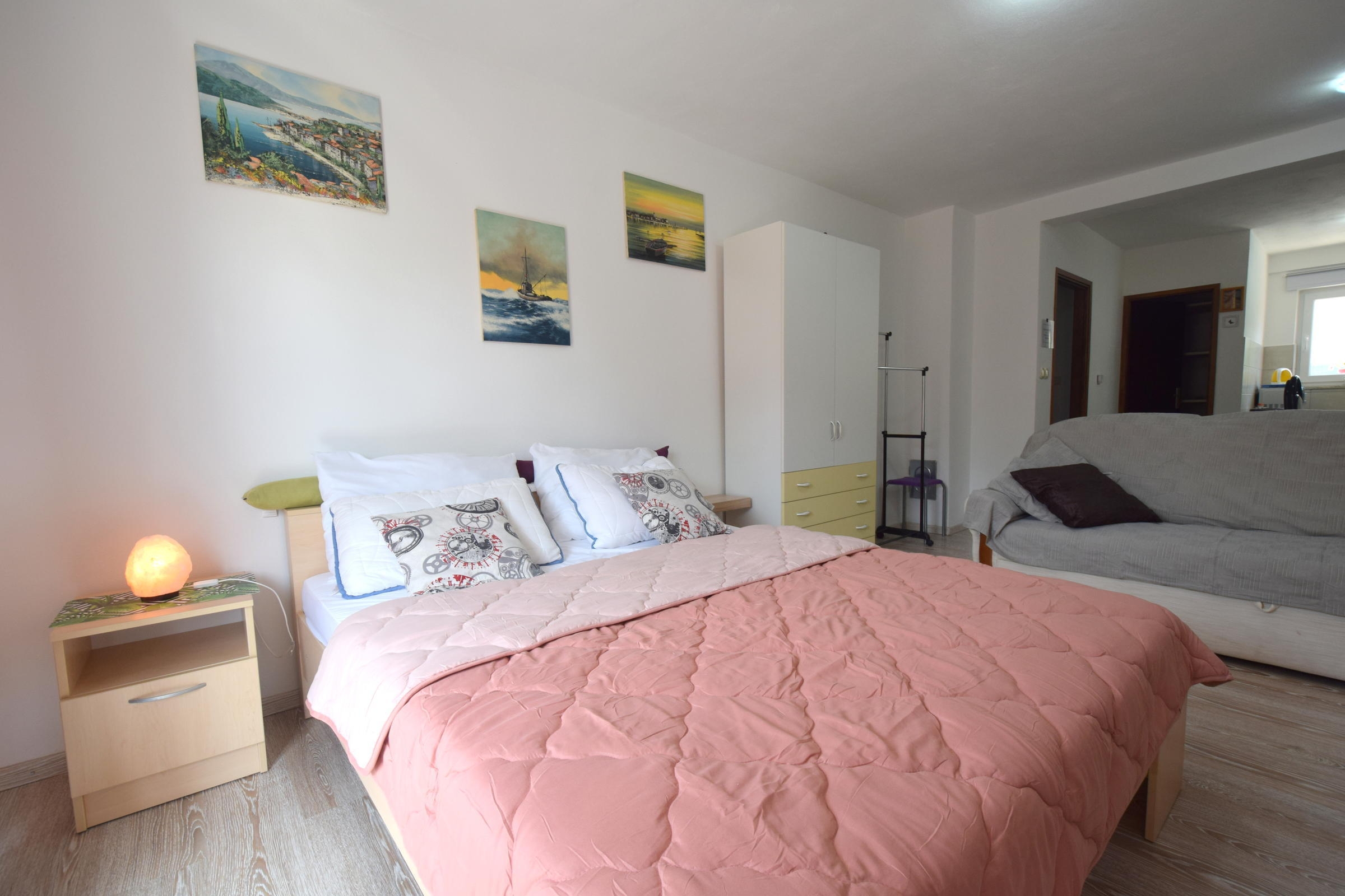Studio flat can accommodate 2 guests. Beds are situated in 1 sleeping rooms, within 29m2. Guests can use a private balcony to enjoy the warm summer evenings. Food can be prepared using barbecue which is shared with other guests too. INCLUDED IN THE PRICE: tourist tax, final cleaning, air-conditioning, parking, internet. OBLIGATORY ADDITIONAL COSTS: short stay fee (surcharge depending on a number of booked nights: 30% - 1, 20% - 2, 10% - 3). The availability of additional services for your chosen dates of stay, as well as their prices (if none are listed) must be checked ahead of time. Any additional services not shown in the price calculation are payable directly to the property owner and only if used by the visitor.