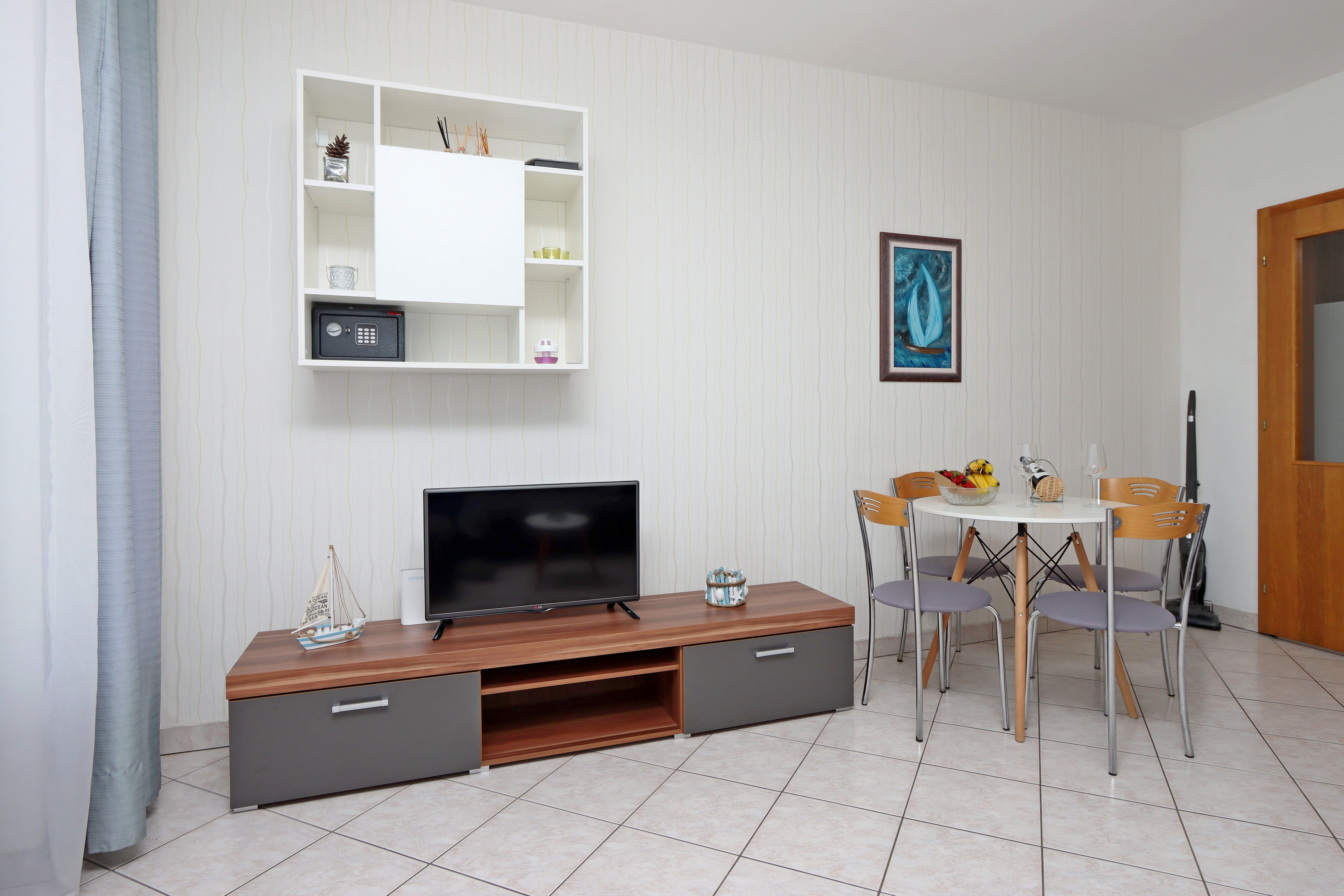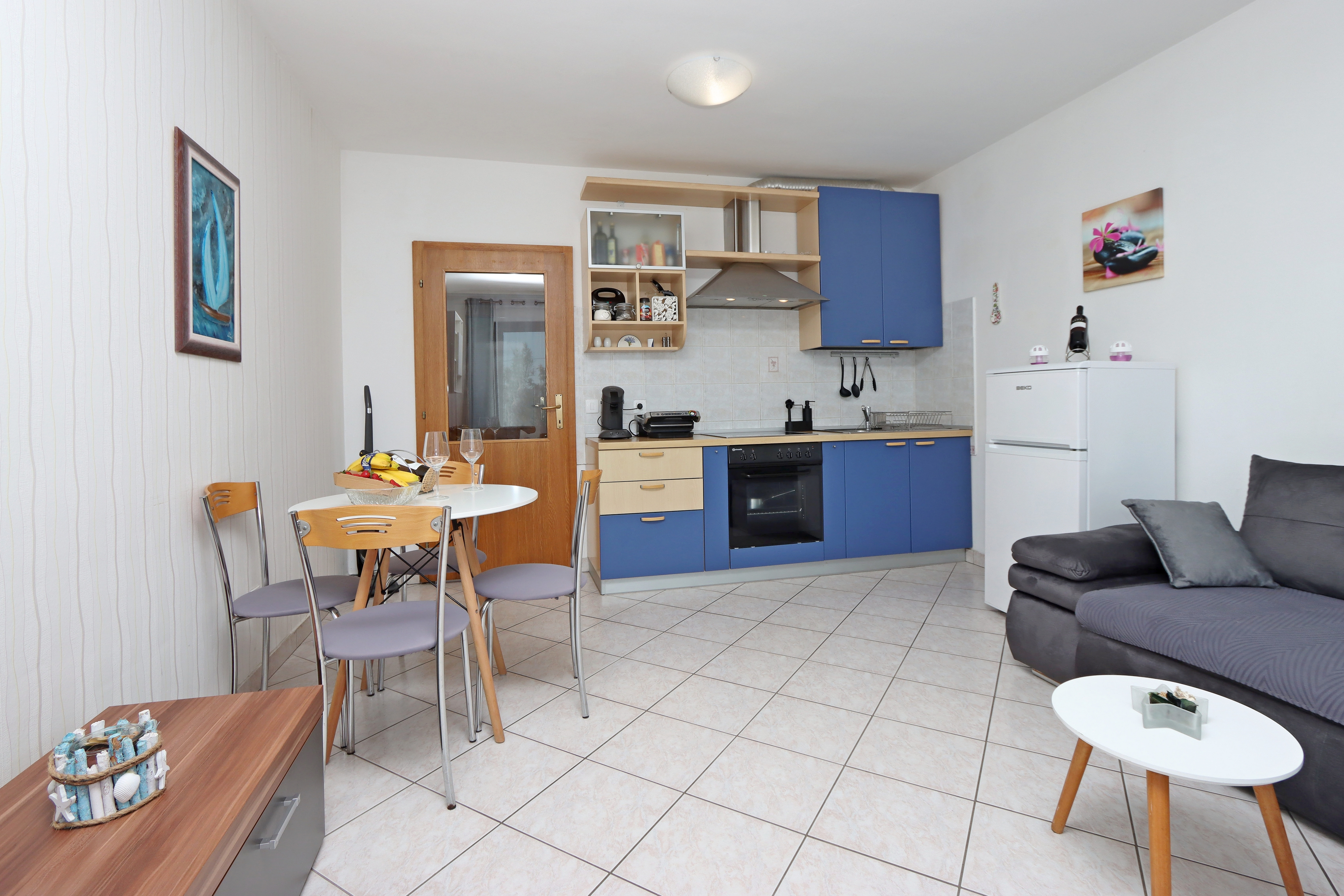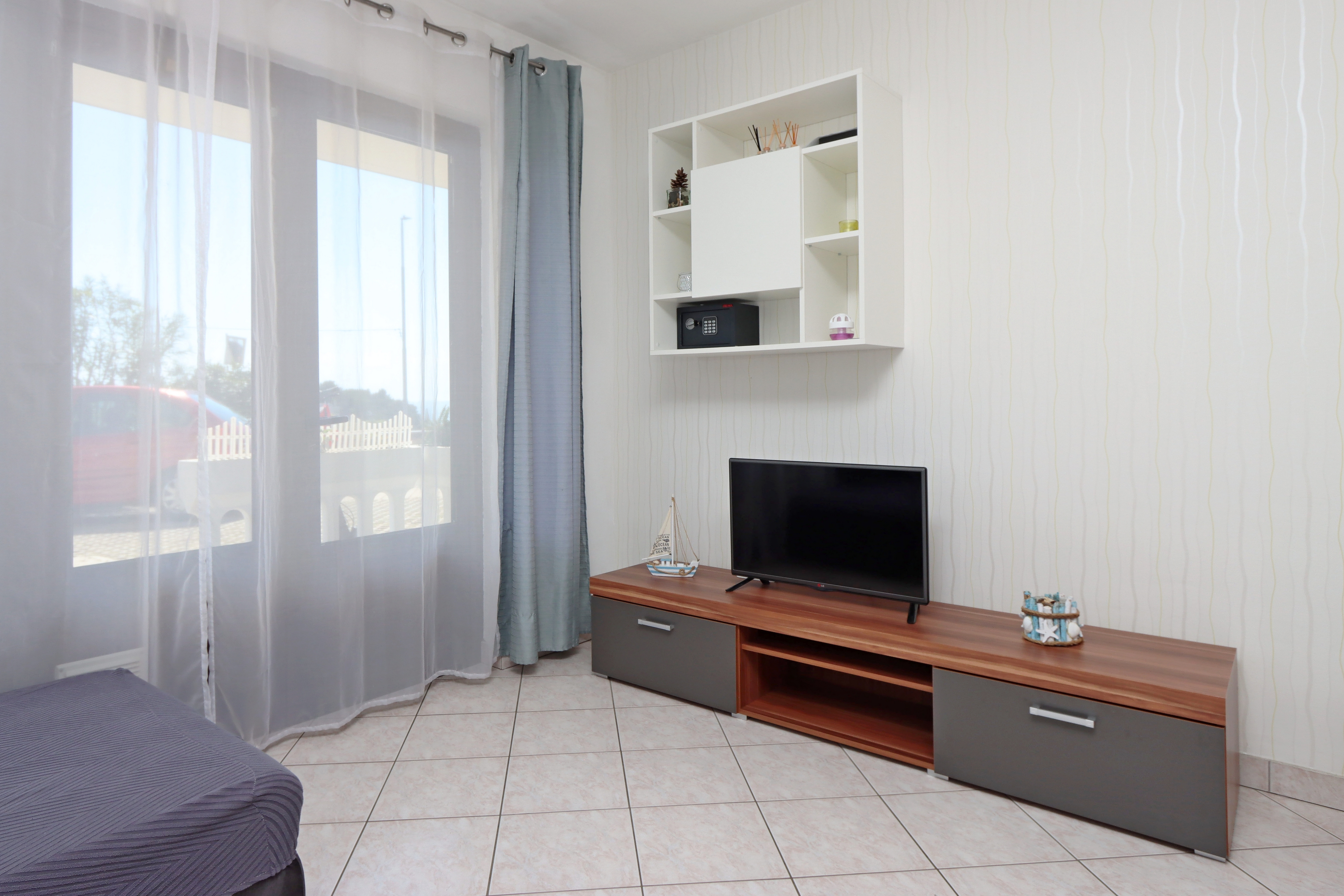 Apartment can accommodate 5 guests. Beds are situated in 1 sleeping rooms, but also in the living room, within 39m2. Guests can use a private terrace to enjoy the warm summer evenings. The apartment offers the sea view. Food can be prepared using barbecue which is shared with other guests too. INCLUDED IN THE PRICE: tourist tax, final cleaning, air-conditioning, parking, internet, iron, ironing board, hairdryer, portable barbecue, sunchairs. OBLIGATORY ADDITIONAL COSTS: short stay fee (surcharge depending on a number of booked nights: 30% - 1, 20% - 2, 10% - 3). The availability of additional services for your chosen dates of stay, as well as their prices (if none are listed) must be checked ahead of time. Any additional services not shown in the price calculation are payable directly to the property owner and only if used by the visitor.