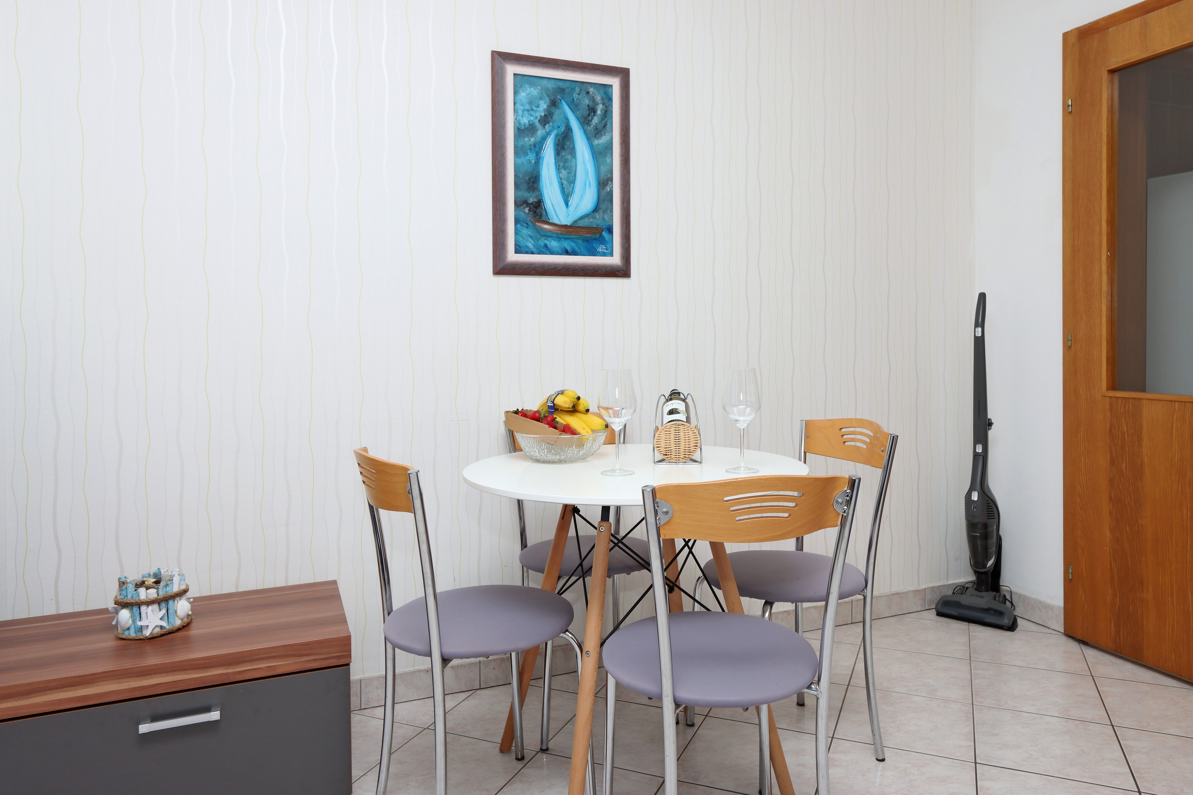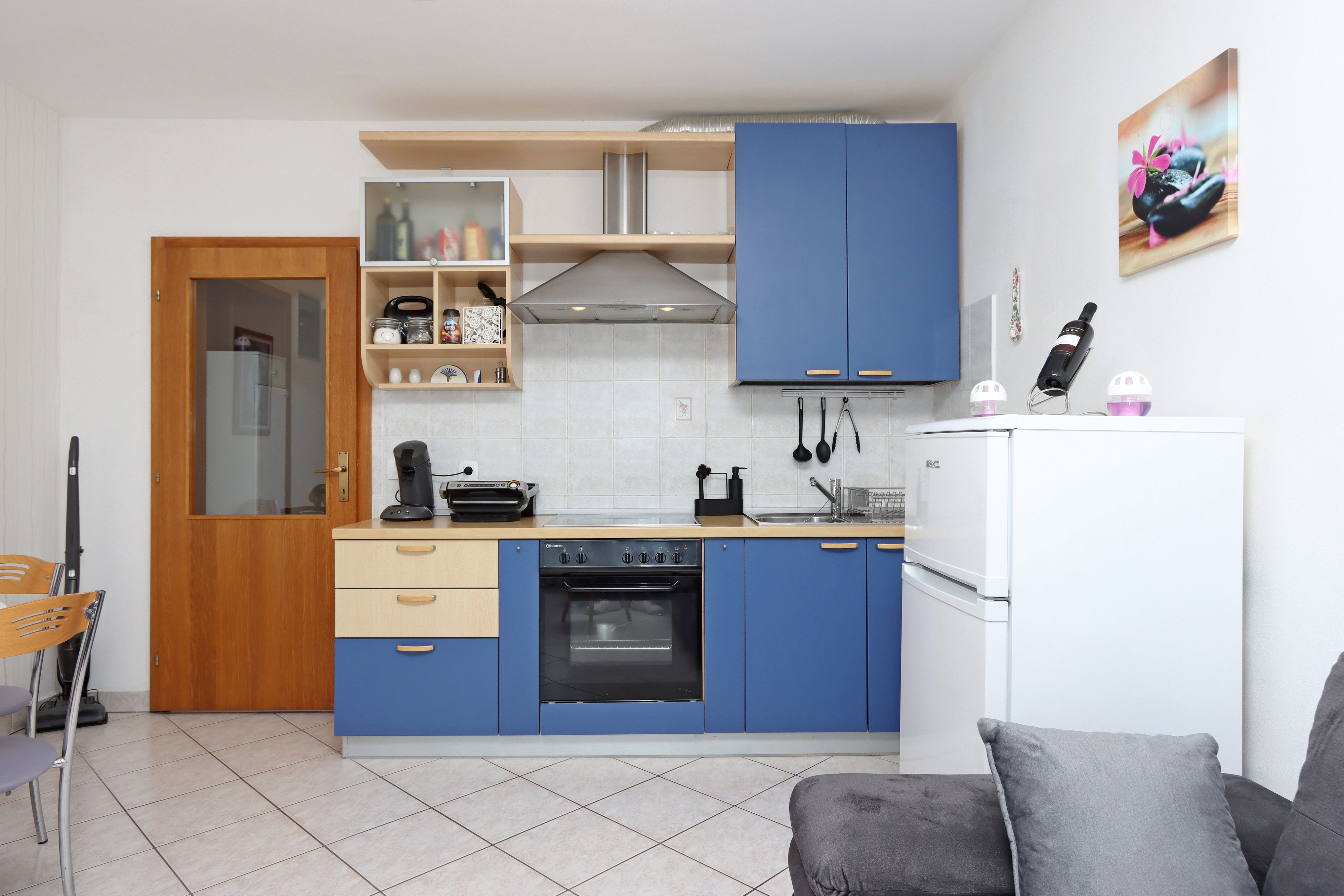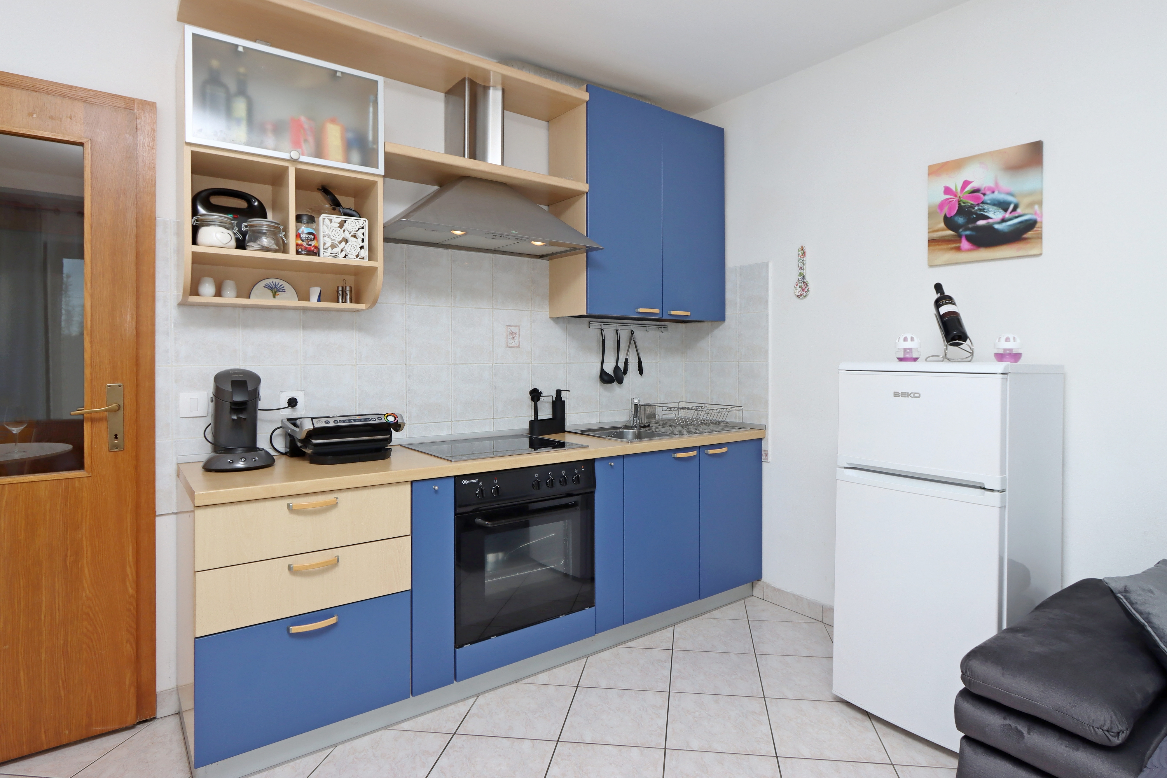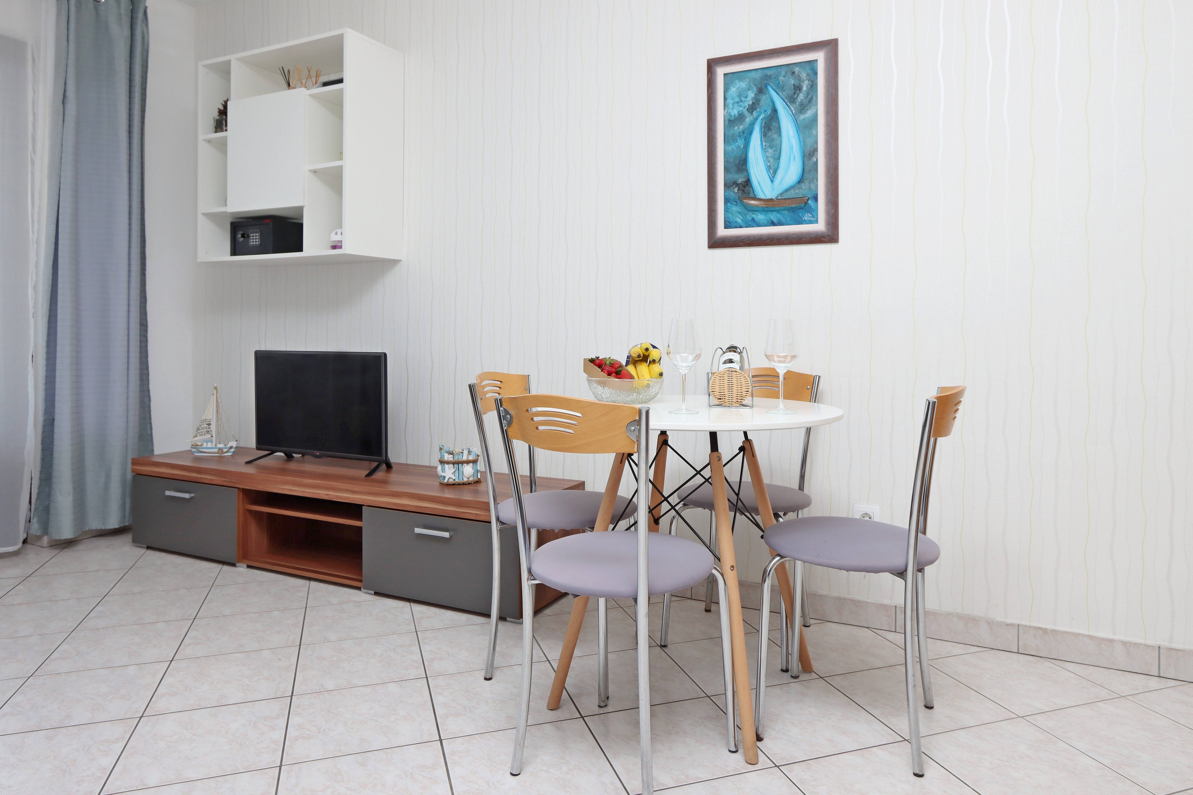 Apartment can accommodate 5 guests. Beds are situated in 1 sleeping rooms, but also in the living room, within 39m2. Guests can use a private terrace to enjoy the warm summer evenings. The apartment offers the sea view. Food can be prepared using barbecue which is shared with other guests too. INCLUDED IN THE PRICE: tourist tax, final cleaning, air-conditioning, parking, internet, iron, ironing board, hairdryer, portable barbecue, sunchairs. OBLIGATORY ADDITIONAL COSTS: short stay fee (surcharge depending on a number of booked nights: 30% - 1, 20% - 2, 10% - 3). The availability of additional services for your chosen dates of stay, as well as their prices (if none are listed) must be checked ahead of time. Any additional services not shown in the price calculation are payable directly to the property owner and only if used by the visitor.