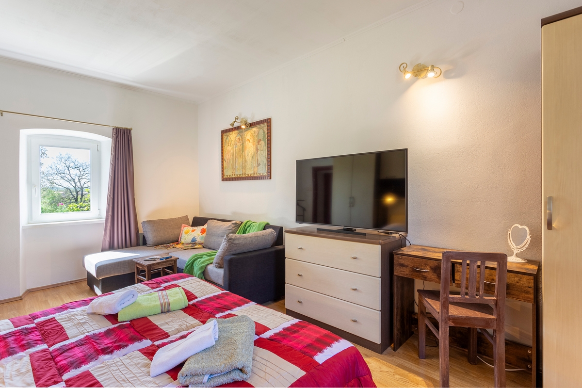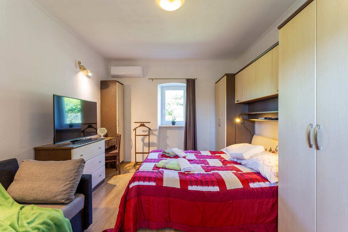 House can accommodate 4 guests. Beds are situated in 1 sleeping rooms, within 32m2. Guests can use a private terrace to enjoy the warm summer evenings. For full enjoyment and relaxation there is a private barbecue for this accommodation guests only. During stay, there is a private pool for relaxation and pleasure. This accommodation unit welcomes pets at an additional charge. Notthe rooms of the booked accommodation unit are connectedone whole. INCLUDED IN THE PRICE: tourist tax, final cleaning, air-conditioning, central heating, pool, parking, internet, iron, ironing board, hairdryer. OPTIONAL ADDITIONAL COSTS: pets (€7.00 per night). The availability of additional services for your chosen dates of stay, as well as their prices (if none are listed) must be checked ahead of time. Any additional services not shown in the price calculation are payable directly to the property owner and only if used by the visitor.