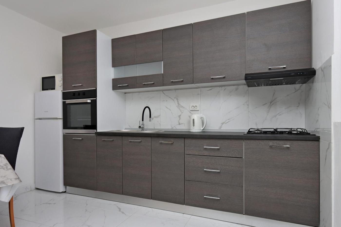 Two-Bedroom Apartment with Terrace. Featuring 2 bedrooms, this apartment offers 1 bathroom with a shower, a seating area and terraceyou can relax. A kitchen equipped with a stovetop, a refrigerator and kitchenware is available for cooking and storing food. This air-conditioned apartment consists of a dining area and a TV with satellite channels. The unit has 2 beds.