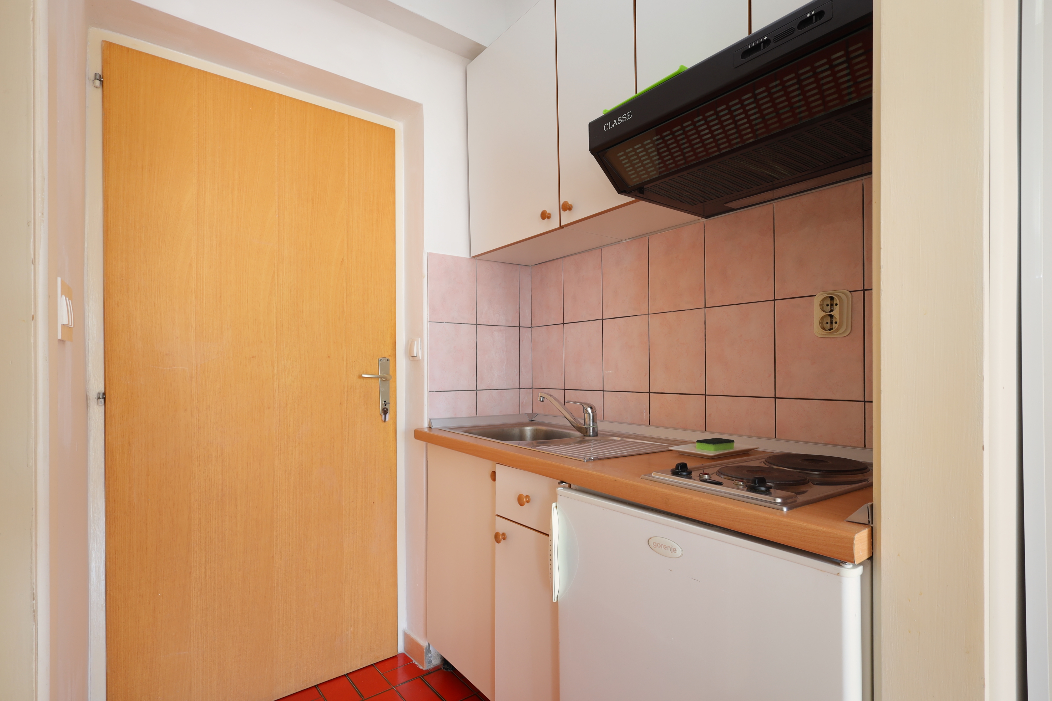 Studio flat can accommodate 2 guests. Beds are situated in 1 sleeping rooms, within 16m2. Guests can use a private terrace to enjoy the warm summer evenings. This accommodation unit welcomes pets at an additional charge. INCLUDED IN THE PRICE: tourist tax, final cleaning, parking, internet, iron, ironing board. OBLIGATORY ADDITIONAL COSTS: short stay fee (surcharge depending on a number of booked nights: 30% - 1, 20% - 2, 10% - 3). OPTIONAL ADDITIONAL COSTS: air-conditioning (€5.00 per night), laundry (€5.00 washing), pets (€5.00 per night), bicycle (€10.00 daily (per piece)). The availability of additional services for your chosen dates of stay, as well as their prices (if none are listed) must be checked ahead of time. Any additional services not shown in the price calculation are payable directly to the property owner and only if used by the visitor. Discounts to the base price: free day 14=13 (for reservations of 14 or more days you get one free day for the stay until 31122026).