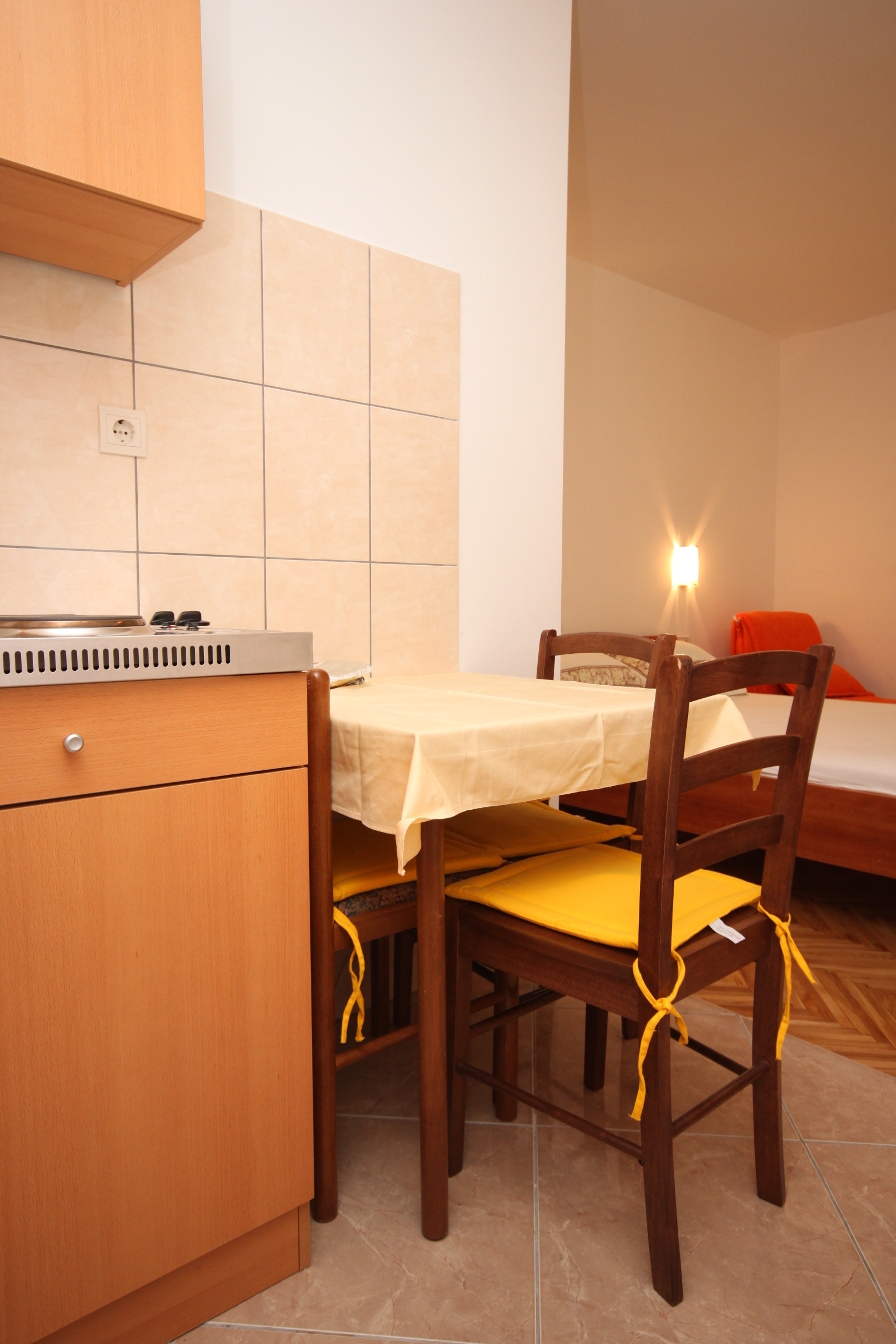 Studio flat can accommodate 2 guests. Beds are situated in 1 sleeping rooms, within 17m2. Guests can use a private balcony to enjoy the warm summer evenings. Food can be prepared using barbecue which is shared with other guests too. This accommodation unit welcomes pets at an additional charge. INCLUDED IN THE PRICE: tourist tax, final cleaning, air-conditioning, parking, internet, baby cot, iron, ironing board, hairdryer, portable barbecue, 1 bed for children (included in the price). OPTIONAL ADDITIONAL COSTS: pets (€5.00 per night). The availability of additional services for your chosen dates of stay, as well as their prices (if none are listed) must be checked ahead of time. Any additional services not shown in the price calculation are payable directly to the property owner and only if used by the visitor. Discounts to the base price: free day 14=13 (for reservations of 14 or more days you get one free day for the stay until 31122026).