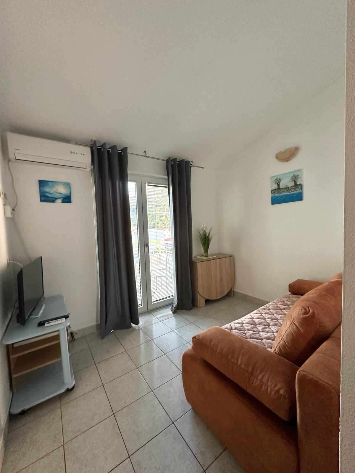 Apartment can accommodate 3 guests. Beds are situated in 1 sleeping rooms, but also in the living room, within 25m2. Guests can use a private balcony to enjoy the warm summer evenings. The apartment offers the sea view. Food can be prepared using barbecue which is shared with other guests too. INCLUDED IN THE PRICE: tourist tax, final cleaning, parking, internet, laundry. OPTIONAL ADDITIONAL COSTS: air-conditioning (€0.60 per hour). The availability of additional services for your chosen dates of stay, as well as their prices (if none are listed) must be checked ahead of time. Any additional services not shown in the price calculation are payable directly to the property owner and only if used by the visitor.