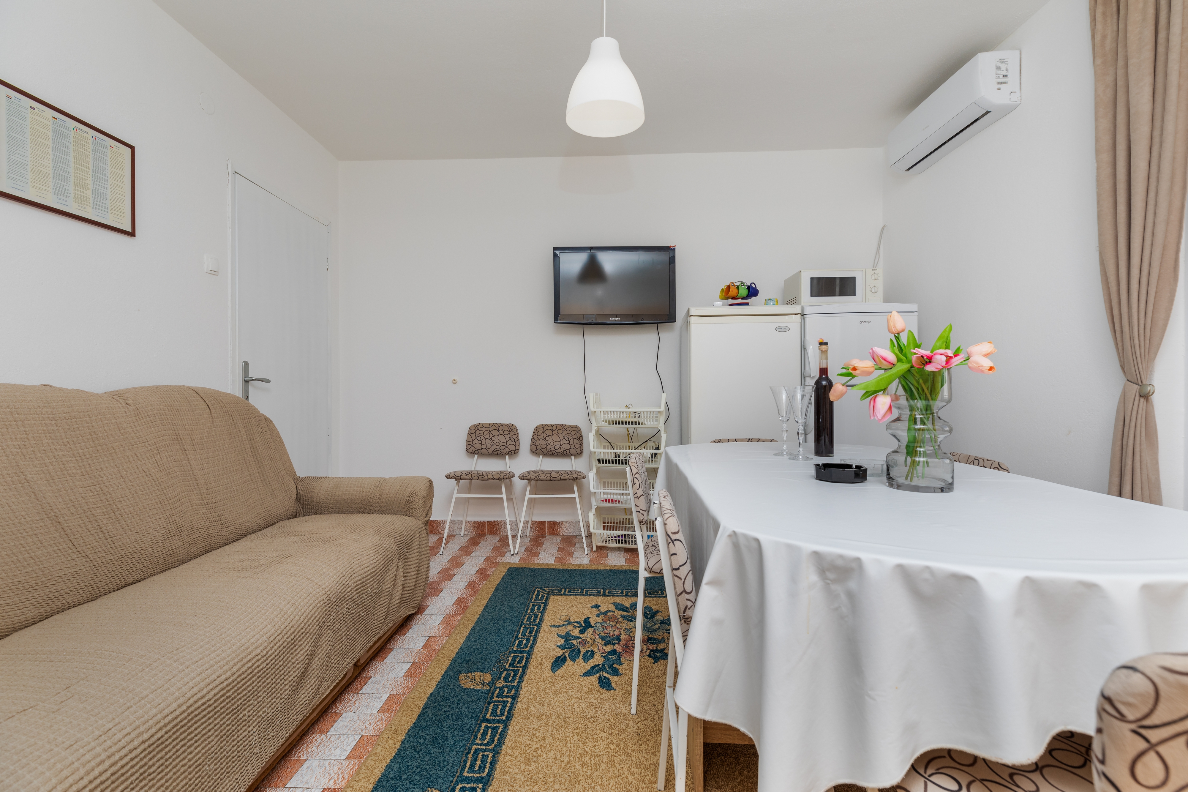 Apartment can accommodate 8 guests. Beds are situated in 3 sleeping rooms, within 67m2. Guests can use a private balcony to enjoy the warm summer evenings. The apartment offers the sea view. Food can be prepared using barbecue which is shared with other guests too. INCLUDED IN THE PRICE: tourist tax, final cleaning, air-conditioning, parking, internet, iron, ironing board, hairdryer. OBLIGATORY ADDITIONAL COSTS: short stay fee (surcharge depending on a number of booked nights: 30% - 1, 20% - 2, 10% - 3). The availability of additional services for your chosen dates of stay, as well as their prices (if none are listed) must be checked ahead of time. Any additional services not shown in the price calculation are payable directly to the property owner and only if used by the visitor.