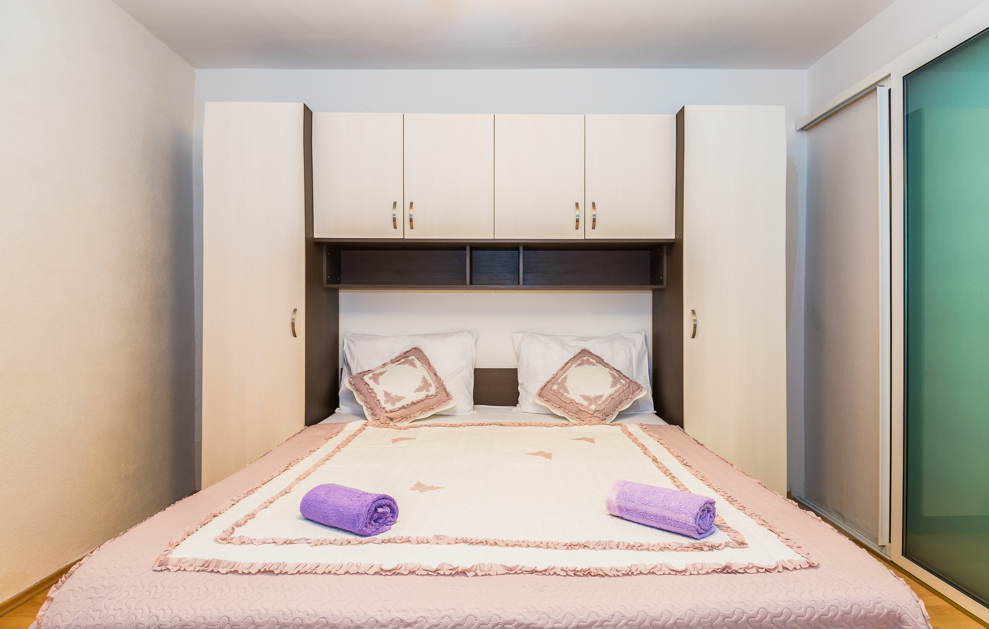 Apartment can accommodate 5 guests. Beds are situated in 1 sleeping rooms, but also in the living room and dining room, within 41m2. Guests can use a private terrace to enjoy the warm summer evenings. Food can be prepared using barbecue which is shared with other guests too. INCLUDED IN THE PRICE: tourist tax, final cleaning, air-conditioning, parking, internet, laundry, iron, ironing board, hairdryer, portable barbecue. The availability of additional services for your chosen dates of stay, as well as their prices (if none are listed) must be checked ahead of time. Any additional services not shown in the price calculation are payable directly to the property owner and only if used by the visitor.
