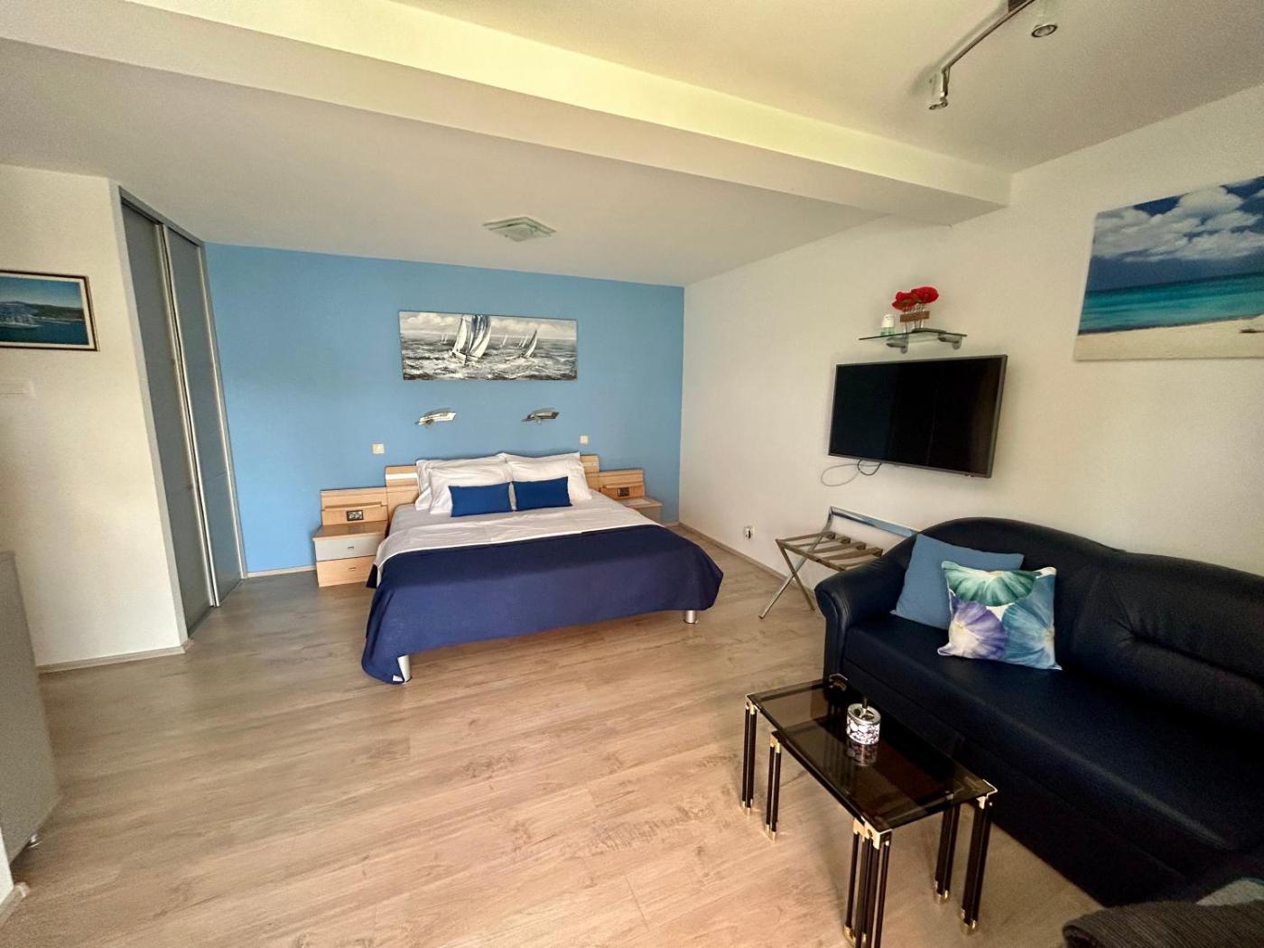 Studio Apartment. Featuring a private entrance, this air-conditioned apartment consists of 1 living room, 1 separate bedroom and 1 bathroom with a walk-in shower and a hairdryer. The well-equipped kitchen features a stovetop, a refrigerator, a dishwasher and kitchenware. Boasting a terrace with sea views, this apartment also provides a tea and coffee maker and a flat-screen TV with cable channels. The unit offers 2 beds.
