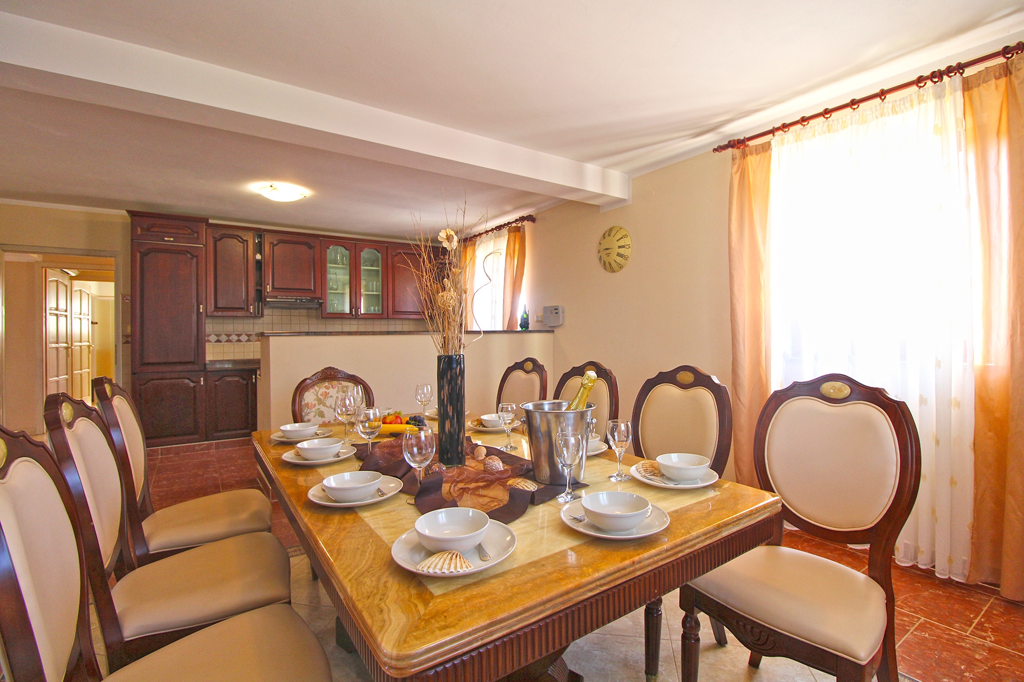 House can accommodate 10 guests. Beds are situated in 5 sleeping rooms, within 173m2. Guests can use a private terrace to enjoy the warm summer evenings. For full enjoyment and relaxation there is a private barbecue for this accommodation guests only. During stay, there is a private pool for relaxation and pleasure. For the booked accommodation unit the deposit is paid directly to the owner upon check-in (deposit amount is displayed on the website) INCLUDED IN THE PRICE: tourist tax, final cleaning, air-conditioning, pool, parking, internet, baby cot, iron. OBLIGATORY ADDITIONAL COSTS: deposit (€500.00 one-time payment). The availability of additional services for your chosen dates of stay, as well as their prices (if none are listed) must be checked ahead of time. Any additional services not shown in the price calculation are payable directly to the property owner and only if used by the visitor.