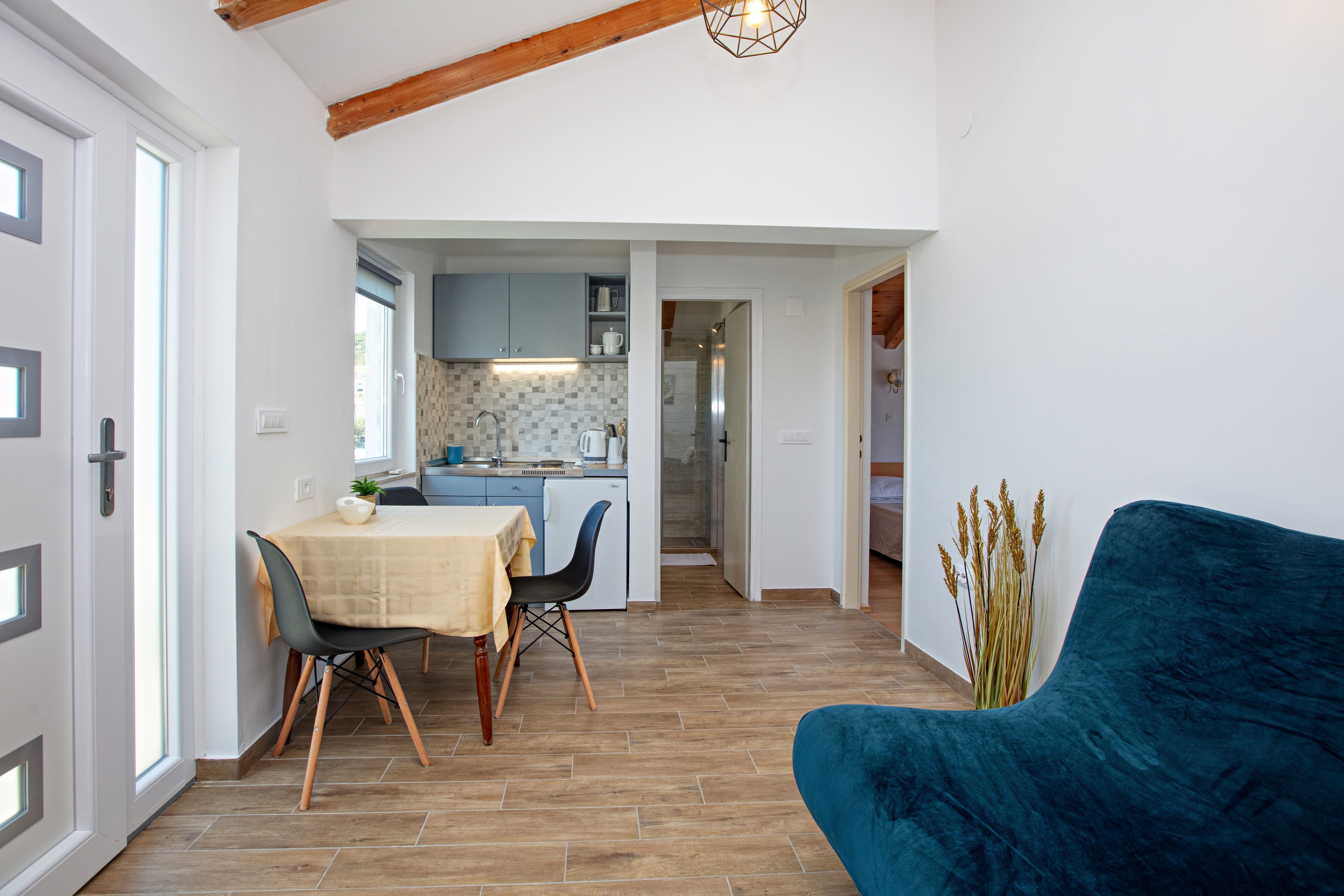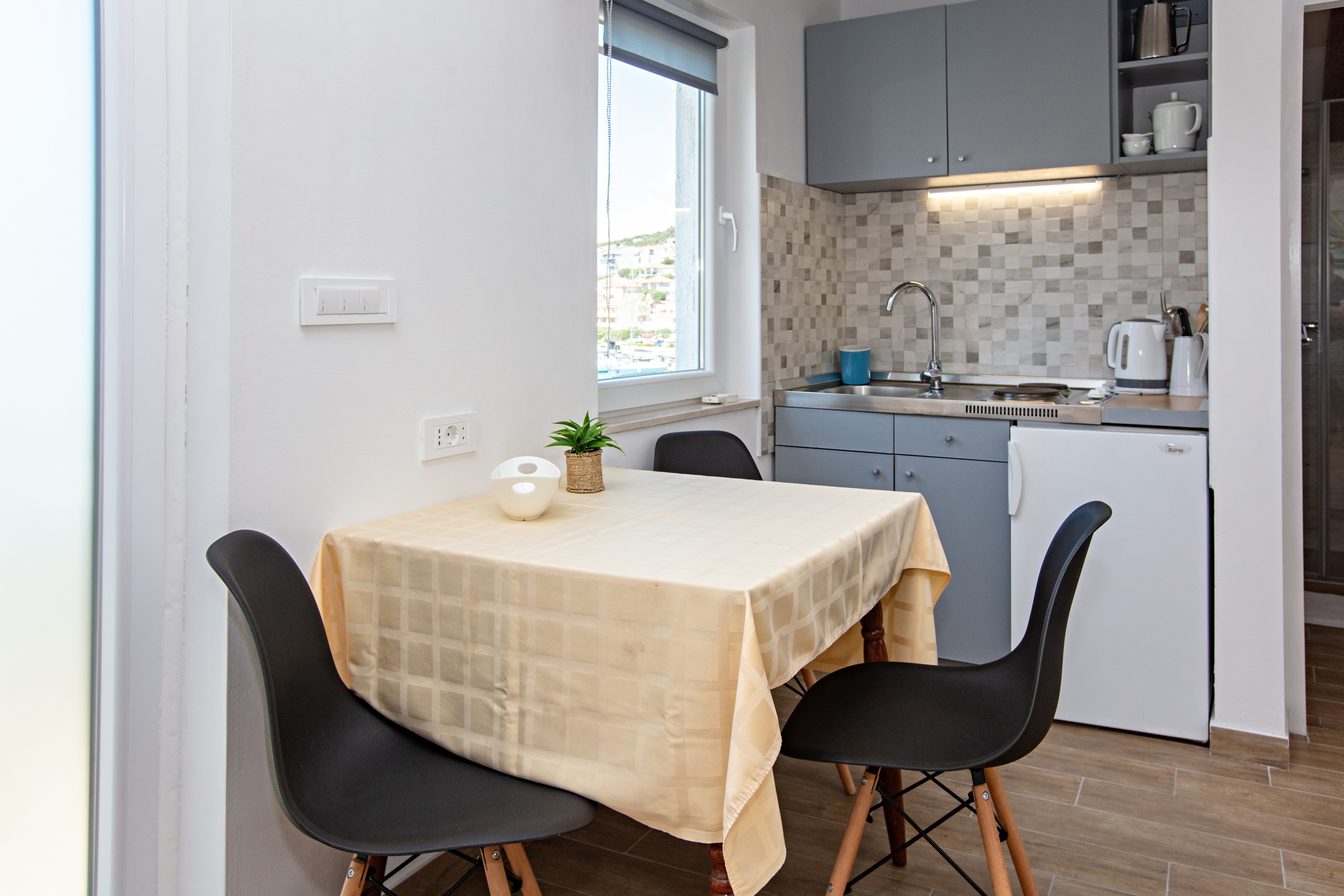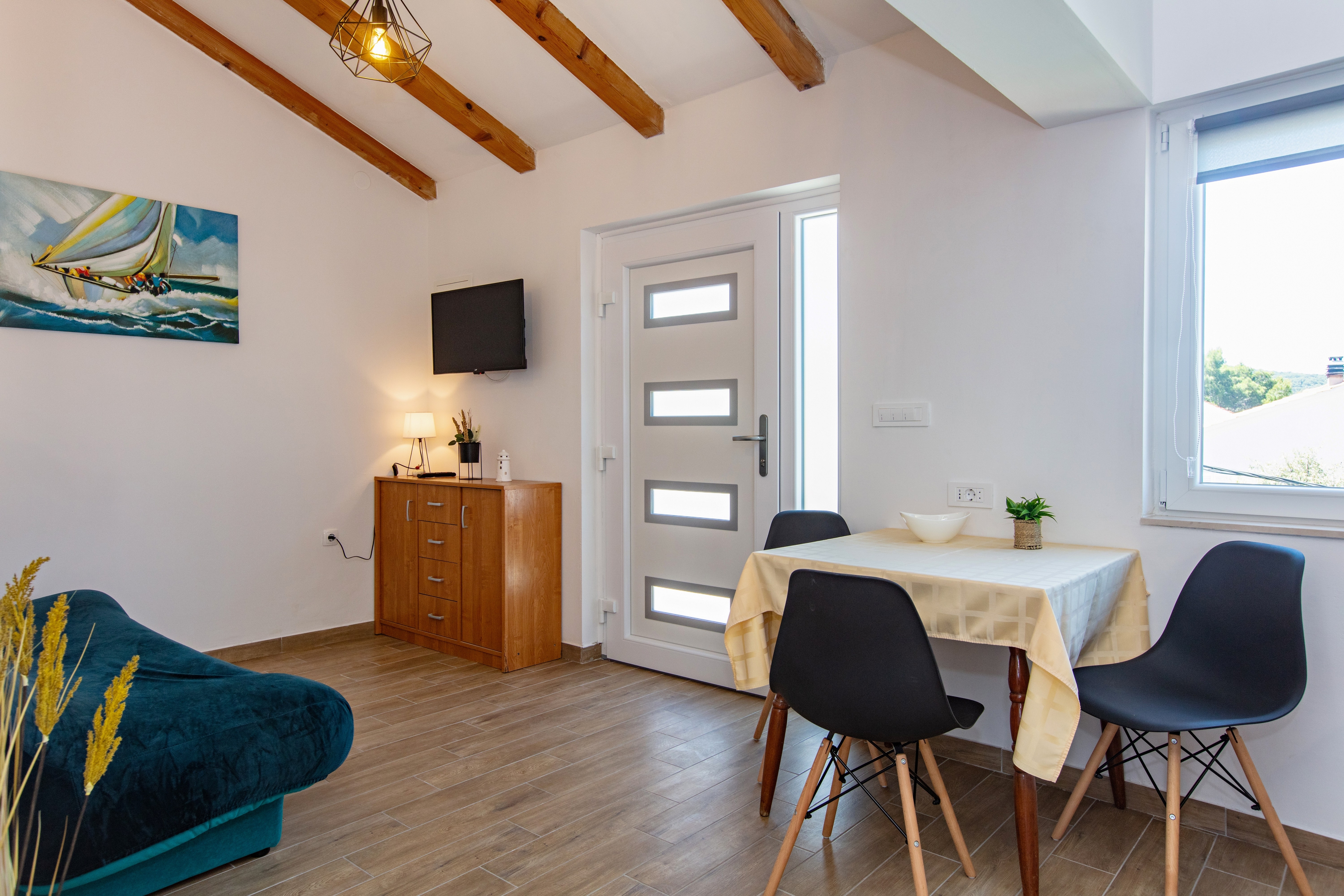 Apartment can accommodate 3 guests. Beds are situated in 1 sleeping rooms, but also in the living room, within 29m2. Guests can use a private balcony to enjoy the warm summer evenings. The apartment offers the sea view. Food can be prepared using barbecue which is shared with other guests too. This accommodation unit welcomes pets at an additional charge. INCLUDED IN THE PRICE: tourist tax, final cleaning, air-conditioning, internet, baby cot, hairdryer. OBLIGATORY ADDITIONAL COSTS: short stay fee (surcharge depending on a number of booked nights: 30% - 1, 20% - 2, 10% - 3). OPTIONAL ADDITIONAL COSTS: pets (€5.00 per night). The availability of additional services for your chosen dates of stay, as well as their prices (if none are listed) must be checked ahead of time. Any additional services not shown in the price calculation are payable directly to the property owner and only if used by the visitor.
