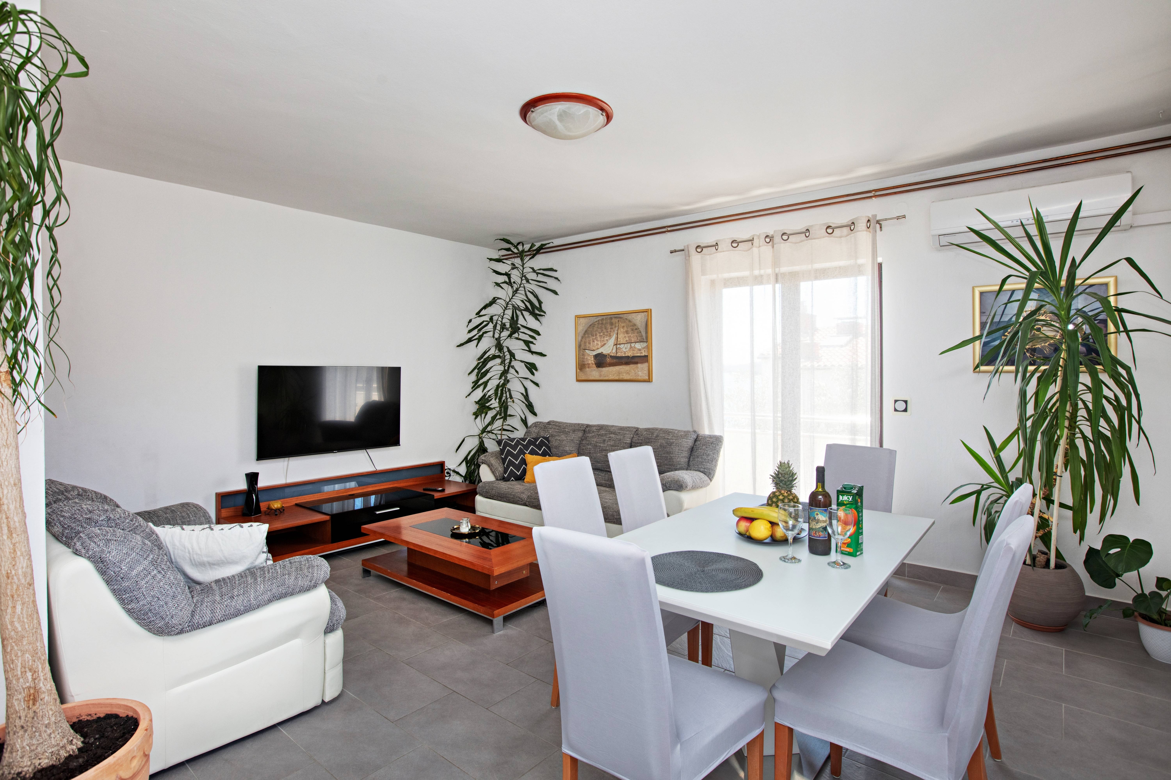 Apartment can accommodate 6 guests. Beds are situated in 3 sleeping rooms, within 84m2. Guests can use a private terrace to enjoy the warm summer evenings. The apartment offers the sea view. Food can be prepared using barbecue which is shared with other guests too. This accommodation unit welcomes pets at an additional charge. INCLUDED IN THE PRICE: tourist tax, final cleaning, air-conditioning, central heating, parking, internet, laundry, boat mooring, iron, ironing board, hairdryer. OBLIGATORY ADDITIONAL COSTS: short stay fee (surcharge depending on a number of booked nights: 30% - 1, 20% - 2, 10% - 3). OPTIONAL ADDITIONAL COSTS: pets (€5.00 per night). The availability of additional services for your chosen dates of stay, as well as their prices (if none are listed) must be checked ahead of time. Any additional services not shown in the price calculation are payable directly to the property owner and only if used by the visitor. Discounts to the base price: free day 14=13 (for reservations of 14 or more days you get one free day for the stay until 31122026).