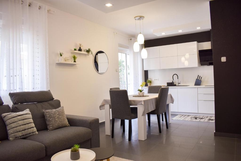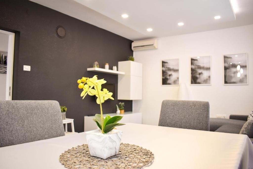 Apartment can accommodate 2 guests. Beds are situated in 1 sleeping rooms, within 55m2. Guests can use a private terrace to enjoy the warm summer evenings. Food can be prepared using barbecue which is shared with other guests too. INCLUDED IN THE PRICE: tourist tax, final cleaning, parking, internet, laundry, baby cot, iron, ironing board, hairdryer. OBLIGATORY ADDITIONAL COSTS: short stay fee (surcharge depending on a number of booked nights: 30% - 1, 20% - 2, 10% - 3). OPTIONAL ADDITIONAL COSTS: air-conditioning (€15.00 per night). The availability of additional services for your chosen dates of stay, as well as their prices (if none are listed) must be checked ahead of time. Any additional services not shown in the price calculation are payable directly to the property owner and only if used by the visitor.