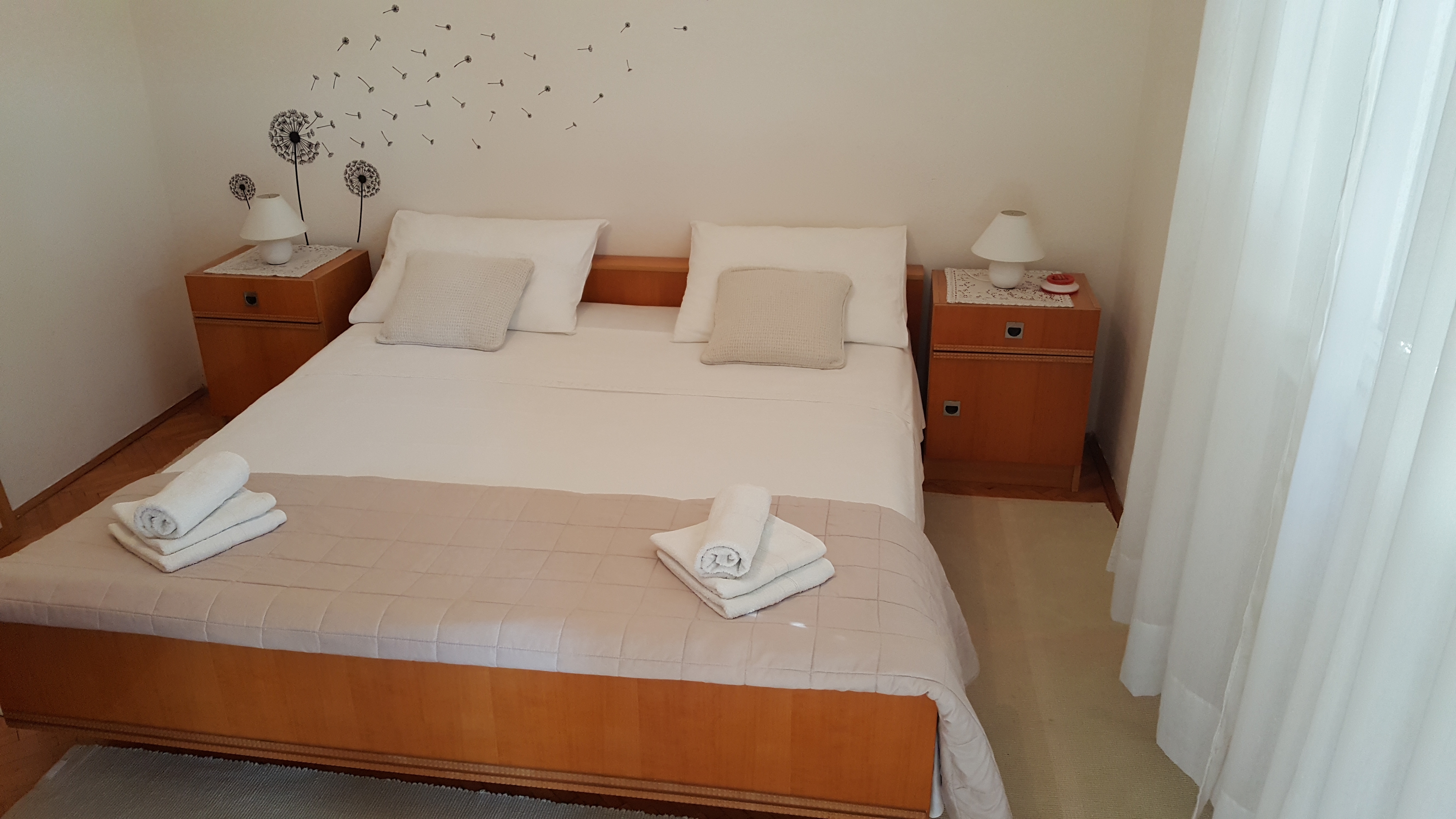 Apartment can accommodate 6 guests. Beds are situated in 2 sleeping rooms, but also in the living room, within 54m2. Guests can use a private terrace to enjoy the warm summer evenings. The apartment offers the sea view. Food can be prepared using barbecue which is shared with other guests too. Some of the rooms of the accommodation unit are not connected with the rest of the unit. INCLUDED IN THE PRICE: tourist tax, final cleaning, air-conditioning, internet, baby cot, additional bed, iron, ironing board, hairdryer, portable barbecue. The availability of additional services for your chosen dates of stay, as well as their prices (if none are listed) must be checked ahead of time. Any additional services not shown in the price calculation are payable directly to the property owner and only if used by the visitor. Discounts to the base price: free day 14=13 (for reservations of 14 or more days you get one free day for the stay until 31122026).