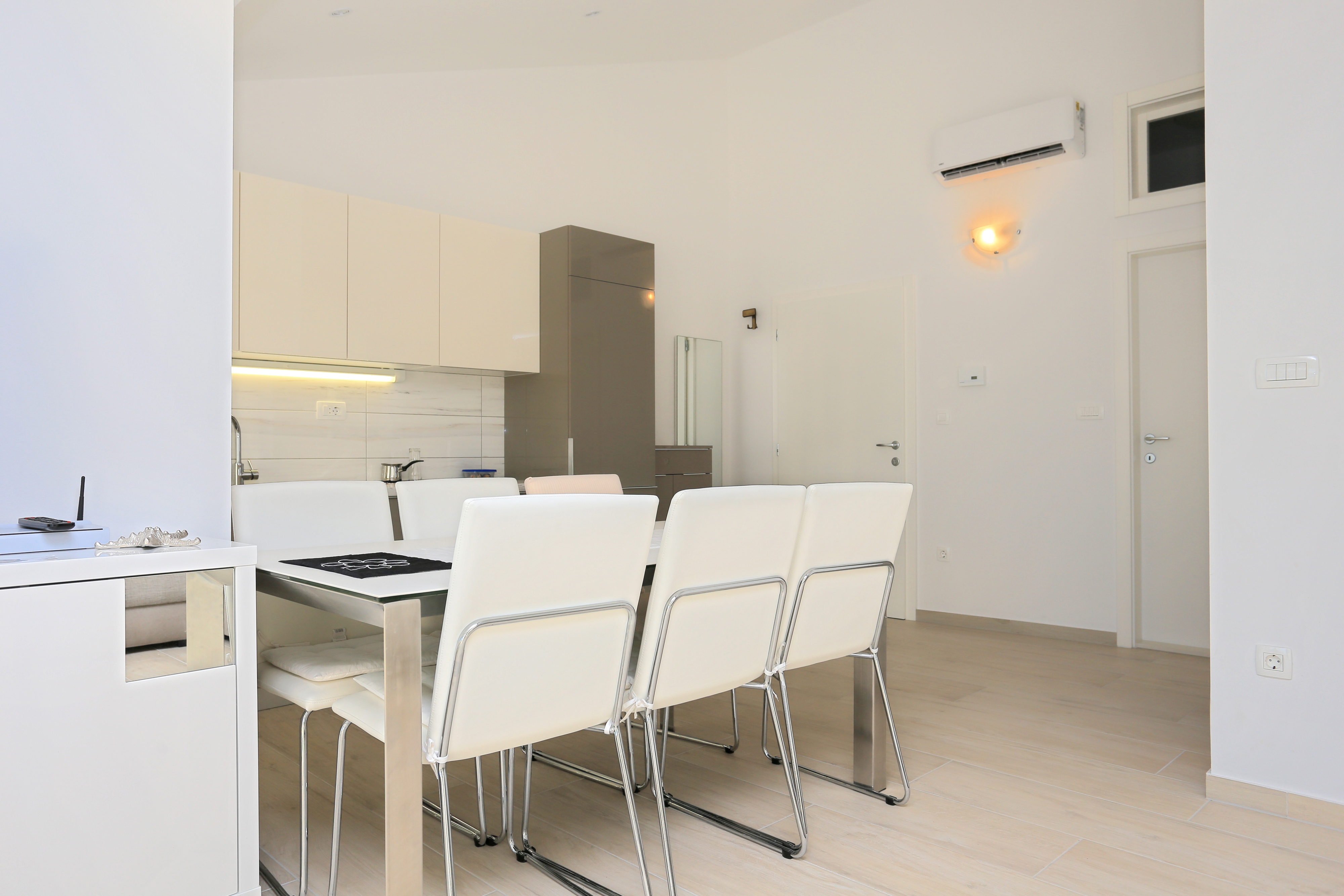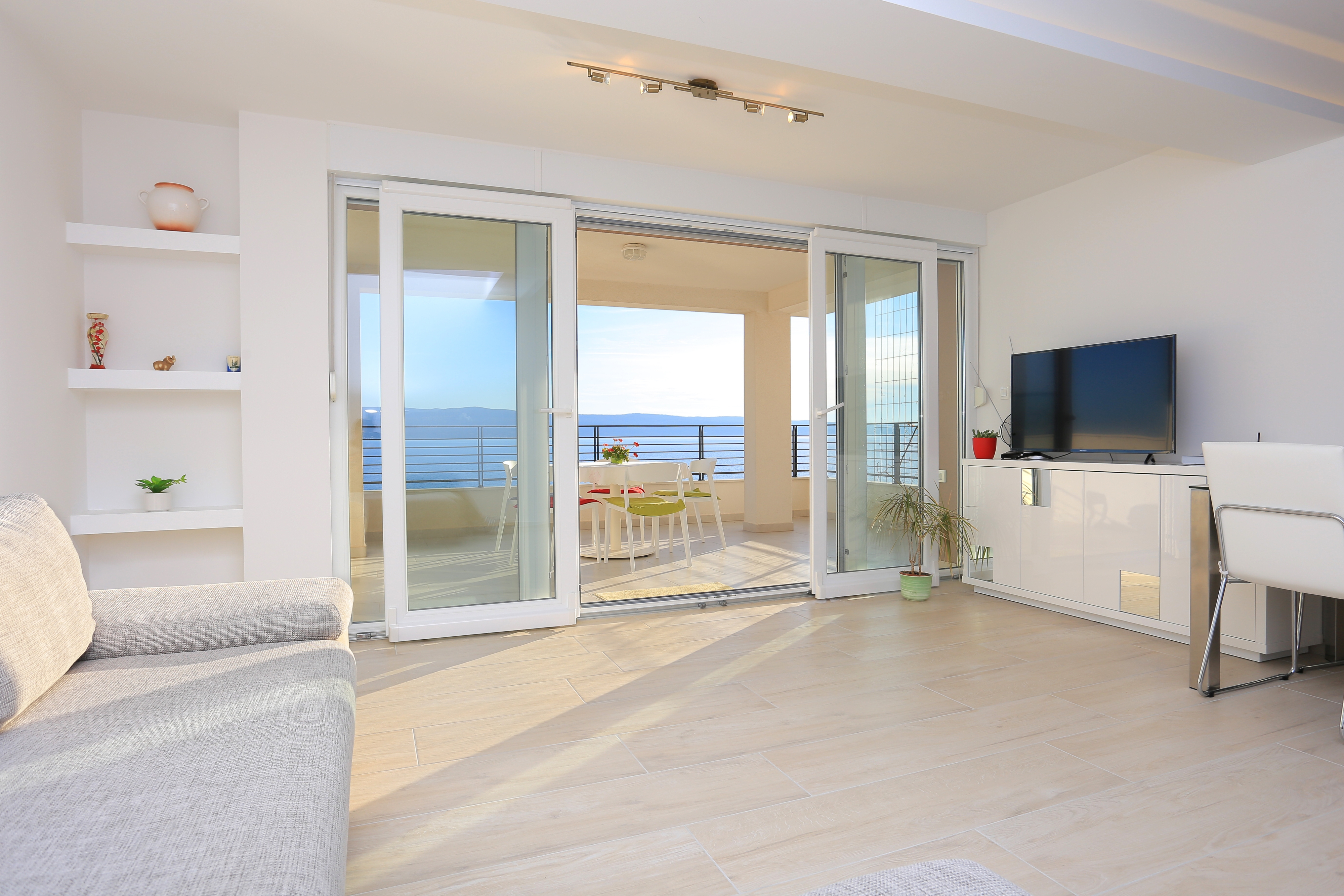 Apartment can accommodate 4 guests. Beds are situated in 1 sleeping rooms, but also in the living room, within 47m2. Guests can use a private terrace to enjoy the warm summer evenings. The apartment offers the sea view. Food can be prepared using barbecue which is shared with other guests too. INCLUDED IN THE PRICE: tourist tax, final cleaning, parking, internet. OBLIGATORY ADDITIONAL COSTS: short stay fee (surcharge depending on a number of booked nights: 30% - 1, 20% - 2, 10% - 3). OPTIONAL ADDITIONAL COSTS: air-conditioning (€0.80 per hour), laundry (€5.00 washing). The availability of additional services for your chosen dates of stay, as well as their prices (if none are listed) must be checked ahead of time. Any additional services not shown in the price calculation are payable directly to the property owner and only if used by the visitor.