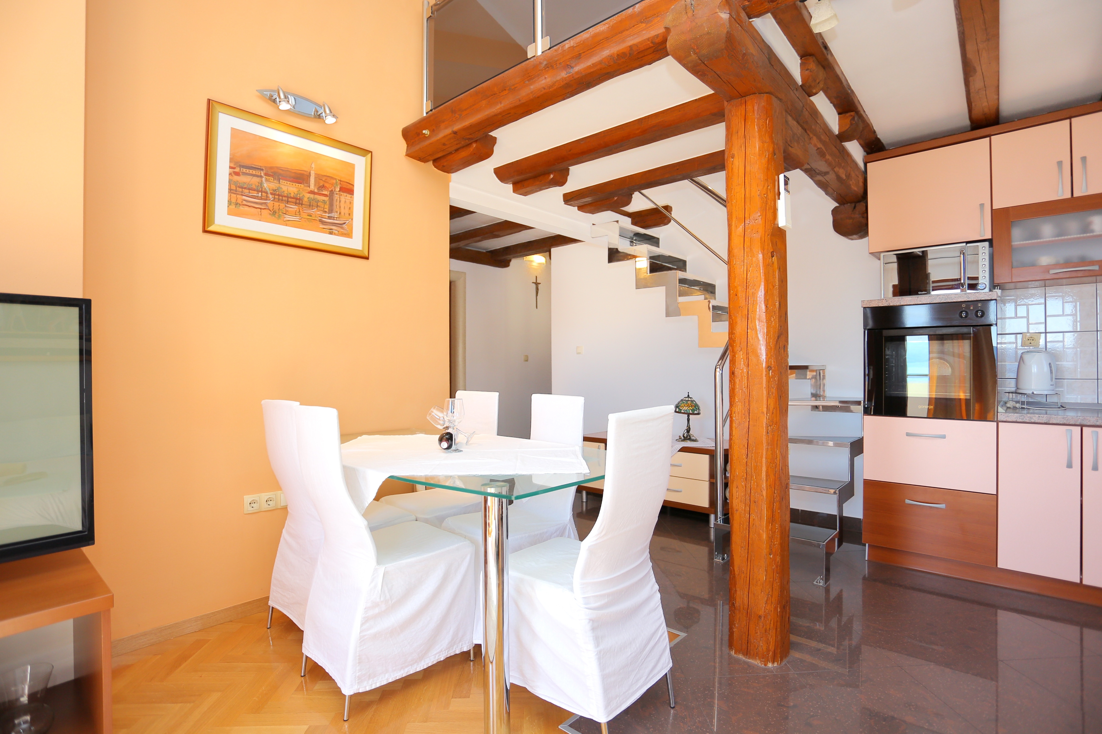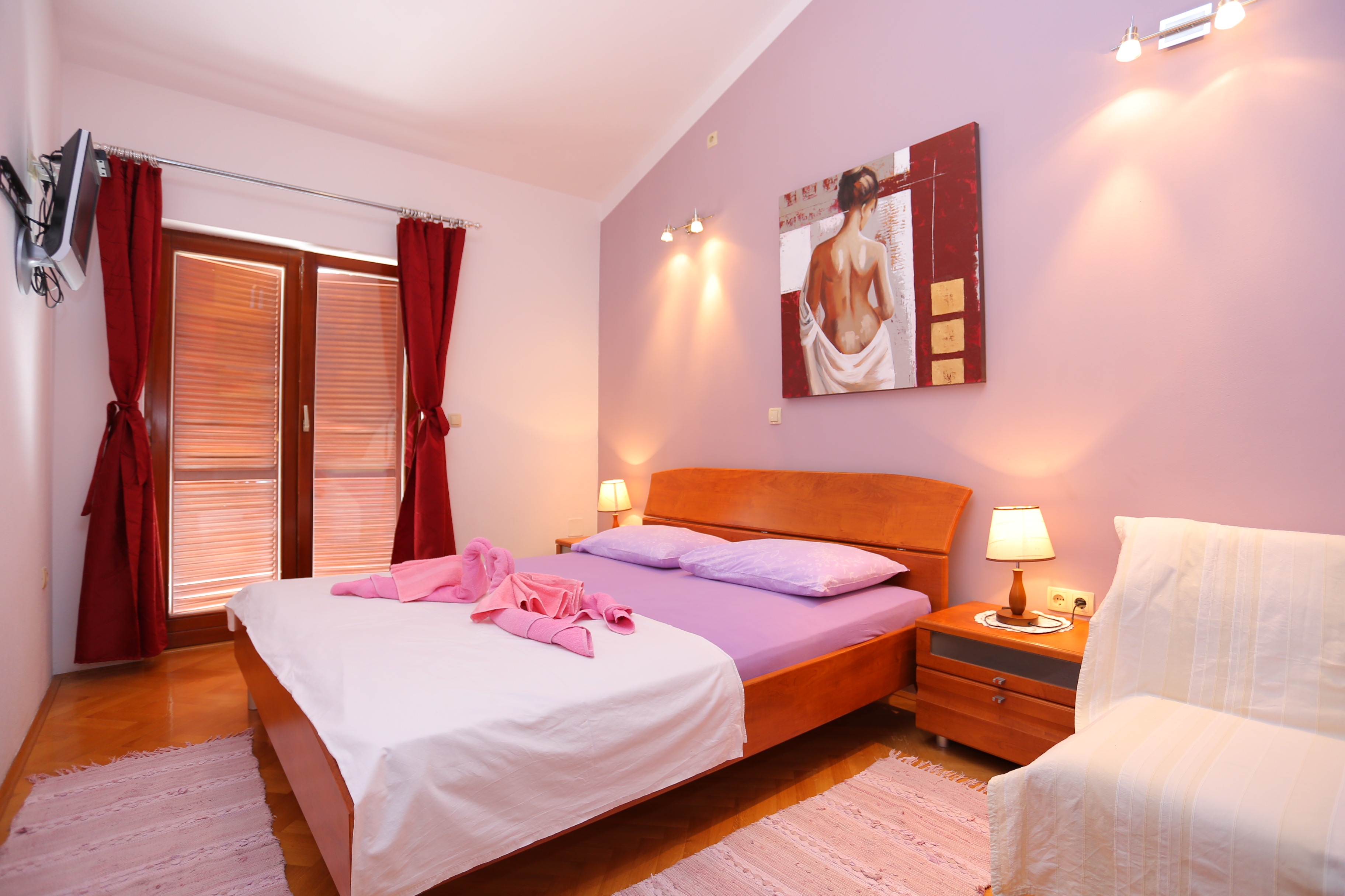 Apartment can accommodate 5 guests. Beds are situated in 1 sleeping rooms, but also in the living room, within 50m2. Guests can use a private balcony to enjoy the warm summer evenings. The apartment offers the sea view. Food can be prepared using barbecue which is shared with other guests too. INCLUDED IN THE PRICE: tourist tax, final cleaning, parking, internet, baby cot, iron, ironing board, hairdryer. OPTIONAL ADDITIONAL COSTS: air-conditioning (€5.00 per night), laundry (€5.00 washing), bicycle (€17.00 daily (per piece)). The availability of additional services for your chosen dates of stay, as well as their prices (if none are listed) must be checked ahead of time. Any additional services not shown in the price calculation are payable directly to the property owner and only if used by the visitor. Discounts to the base price: free day 21=19 (for reservations of 21 or more days you get 2 free days for the stay until 31122026).