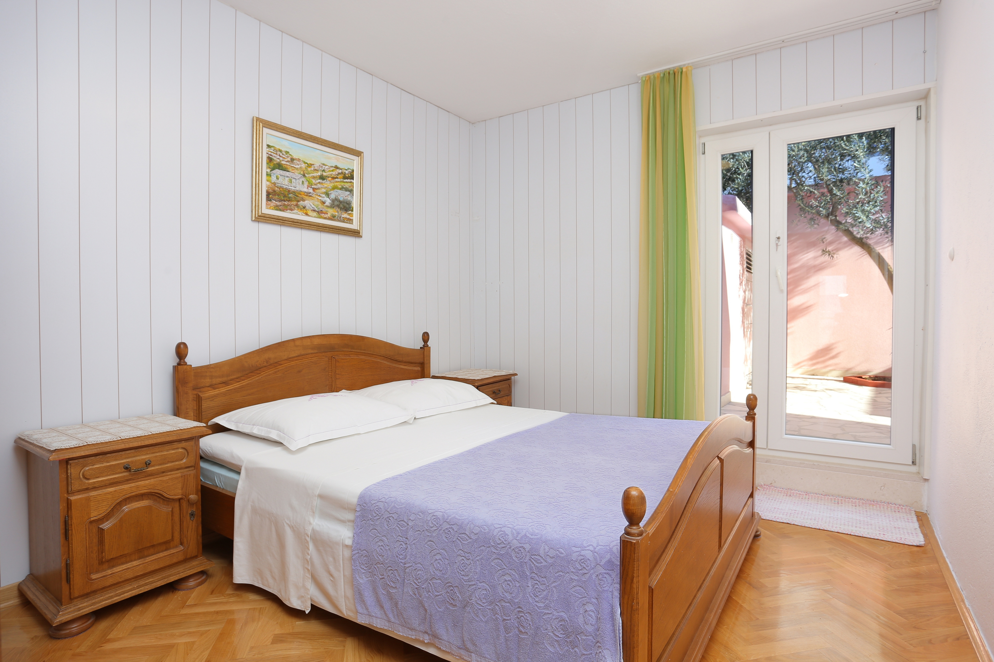 Apartment can accommodate 4 guests. Beds are situated in 2 sleeping rooms, within 56m2. Guests can use a private terrace to enjoy the warm summer evenings. The apartment offers the sea view. Food can be prepared using barbecue which is shared with other guests too. INCLUDED IN THE PRICE: tourist tax, final cleaning, air-conditioning, parking, garage, internet, iron, ironing board, hairdryer, portable barbecue. OBLIGATORY ADDITIONAL COSTS: short stay fee (surcharge depending on a number of booked nights: 30% - 1, 20% - 2, 10% - 3). OPTIONAL ADDITIONAL COSTS: laundry (€3.00 washing). The availability of additional services for your chosen dates of stay, as well as their prices (if none are listed) must be checked ahead of time. Any additional services not shown in the price calculation are payable directly to the property owner and only if used by the visitor.