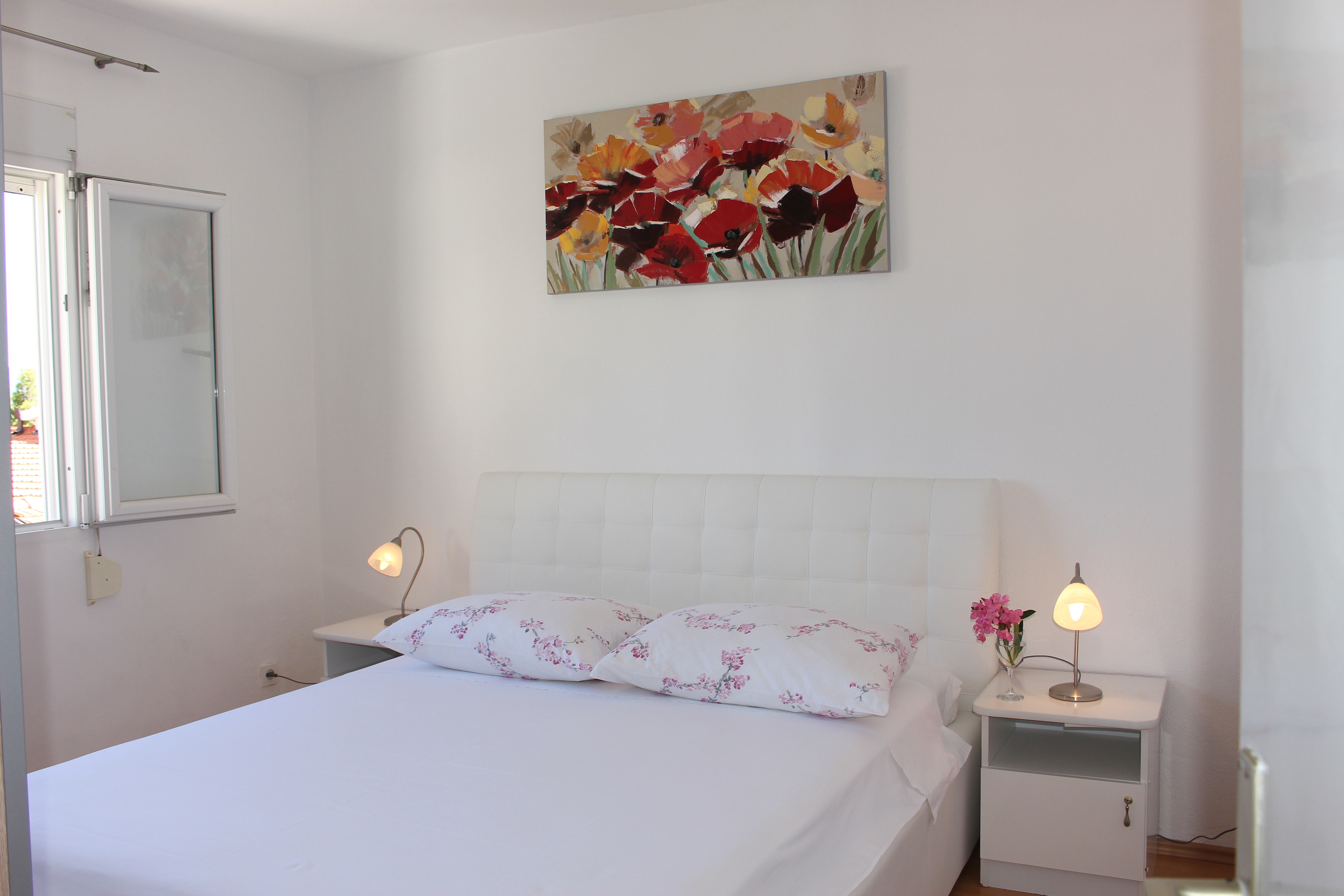 Apartment can accommodate 6 guests. Beds are situated in 3 sleeping rooms, within 60m2. Guests can use a private terrace to enjoy the warm summer evenings. The apartment offers the sea view. Food can be prepared using barbecue which is shared with other guests too. This accommodation unit welcomes pets at an additional charge. INCLUDED IN THE PRICE: tourist tax, final cleaning, parking, internet, baby cot, iron, ironing board, hairdryer, portable barbecue. OBLIGATORY ADDITIONAL COSTS: short stay fee (surcharge depending on a number of booked nights: 30% - 1, 20% - 2, 10% - 3). OPTIONAL ADDITIONAL COSTS: air-conditioning (€5.00 per night), laundry (€3.00 washing), boat (€70.00 per night), boat mooring (€10.00 per night), pets (€10.00 per night). The availability of additional services for your chosen dates of stay, as well as their prices (if none are listed) must be checked ahead of time. Any additional services not shown in the price calculation are payable directly to the property owner and only if used by the visitor.