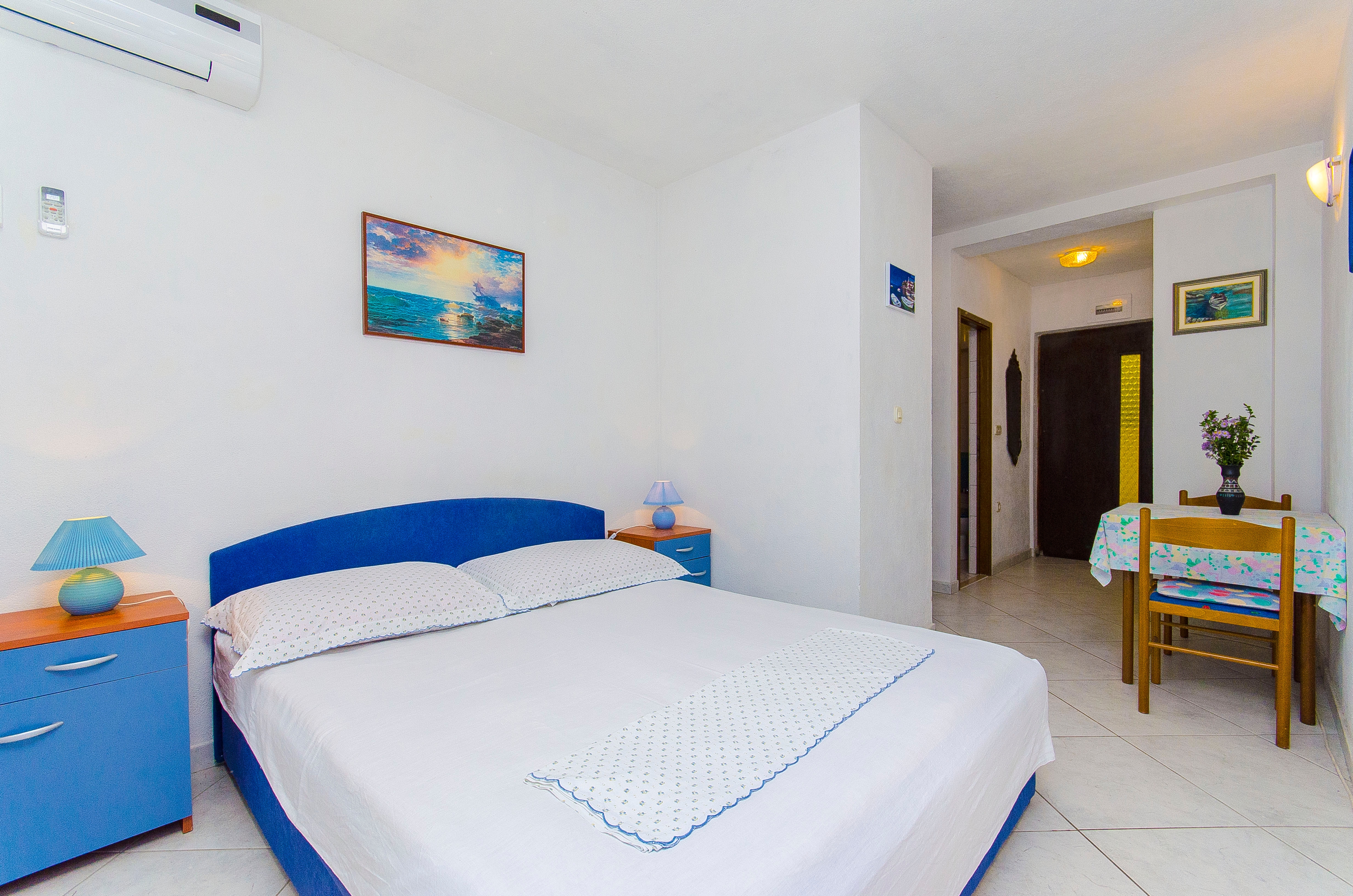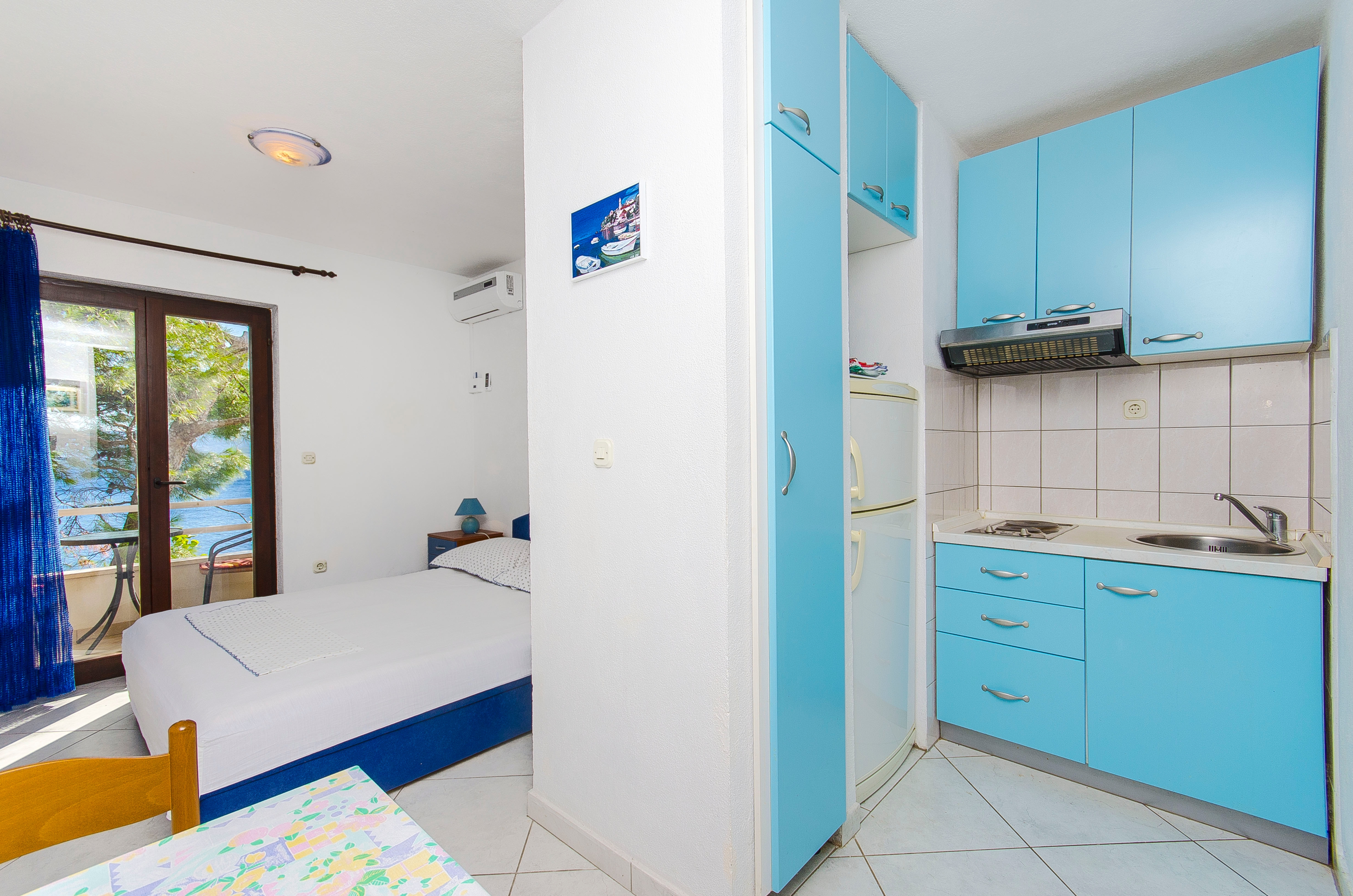 Studio flat can accommodate 2 guests. Beds are situated in 1 sleeping rooms, within 18m2. Guests can use a private balcony to enjoy the warm summer evenings. The studio offers the sea view. Food can be prepared using barbecue which is shared with other guests too. INCLUDED IN THE PRICE: tourist tax, final cleaning, parking, internet, laundry. OBLIGATORY ADDITIONAL COSTS: short stay fee (surcharge depending on a number of booked nights: 30% - 1, 20% - 2, 10% - 3). OPTIONAL ADDITIONAL COSTS: air-conditioning (€0.50 per hour). The availability of additional services for your chosen dates of stay, as well as their prices (if none are listed) must be checked ahead of time. Any additional services not shown in the price calculation are payable directly to the property owner and only if used by the visitor.